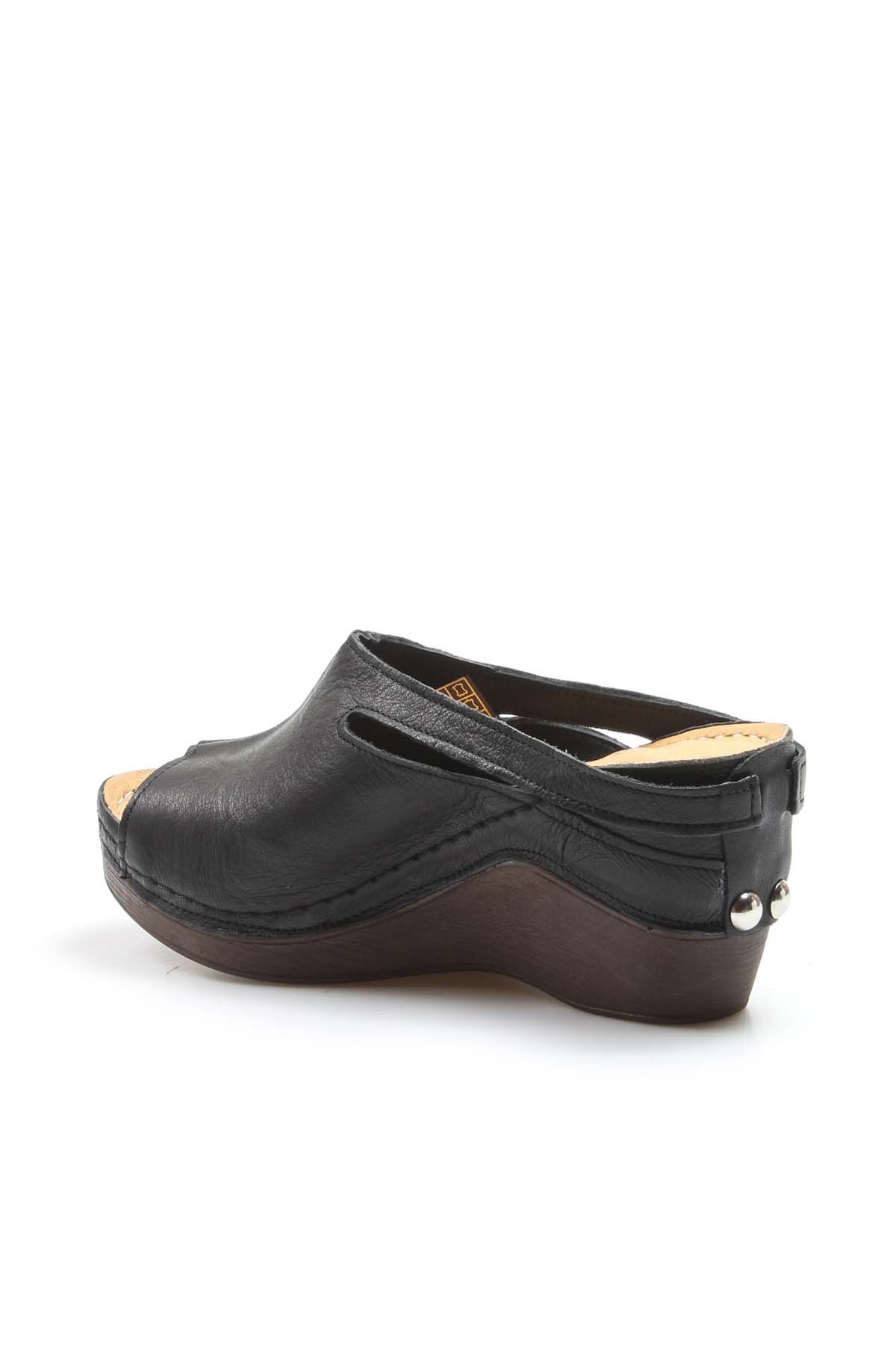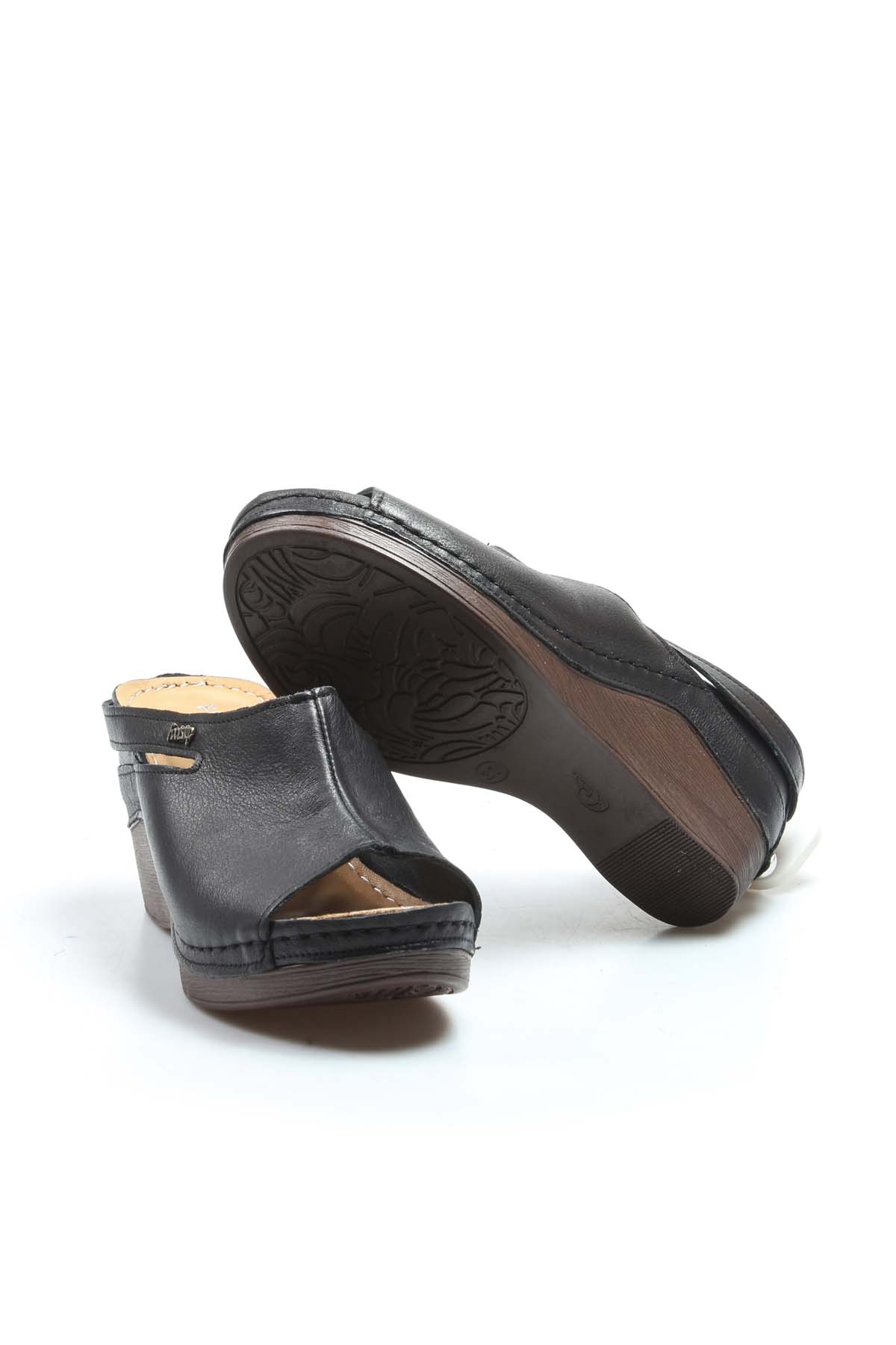 • MirgeShoes Kadın Dolgu Topuklu Terlik İçi Dışı Hakiki Deri Siyah  MRG0111022611113
