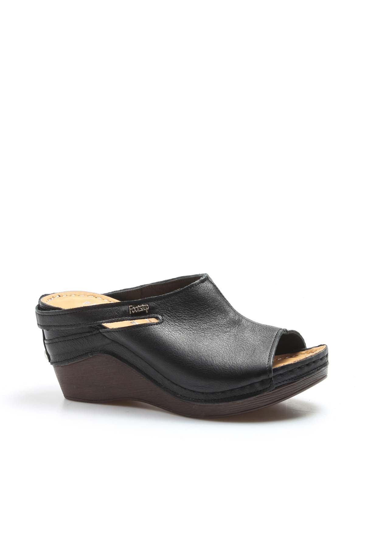 MirgeShoes Kadın Dolgu Topuklu Terlik İçi Dışı Hakiki Deri Siyah MRG0111022611113