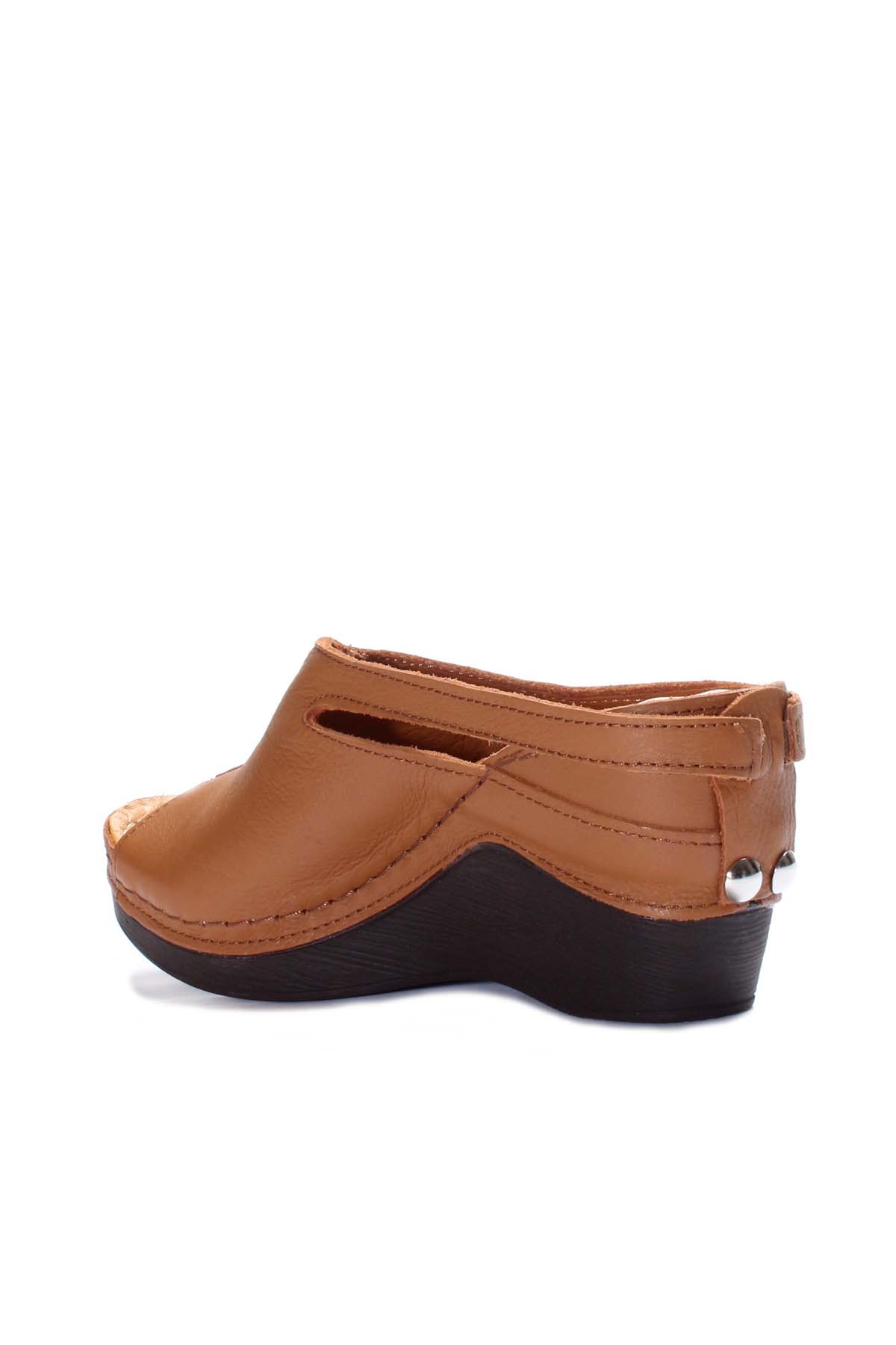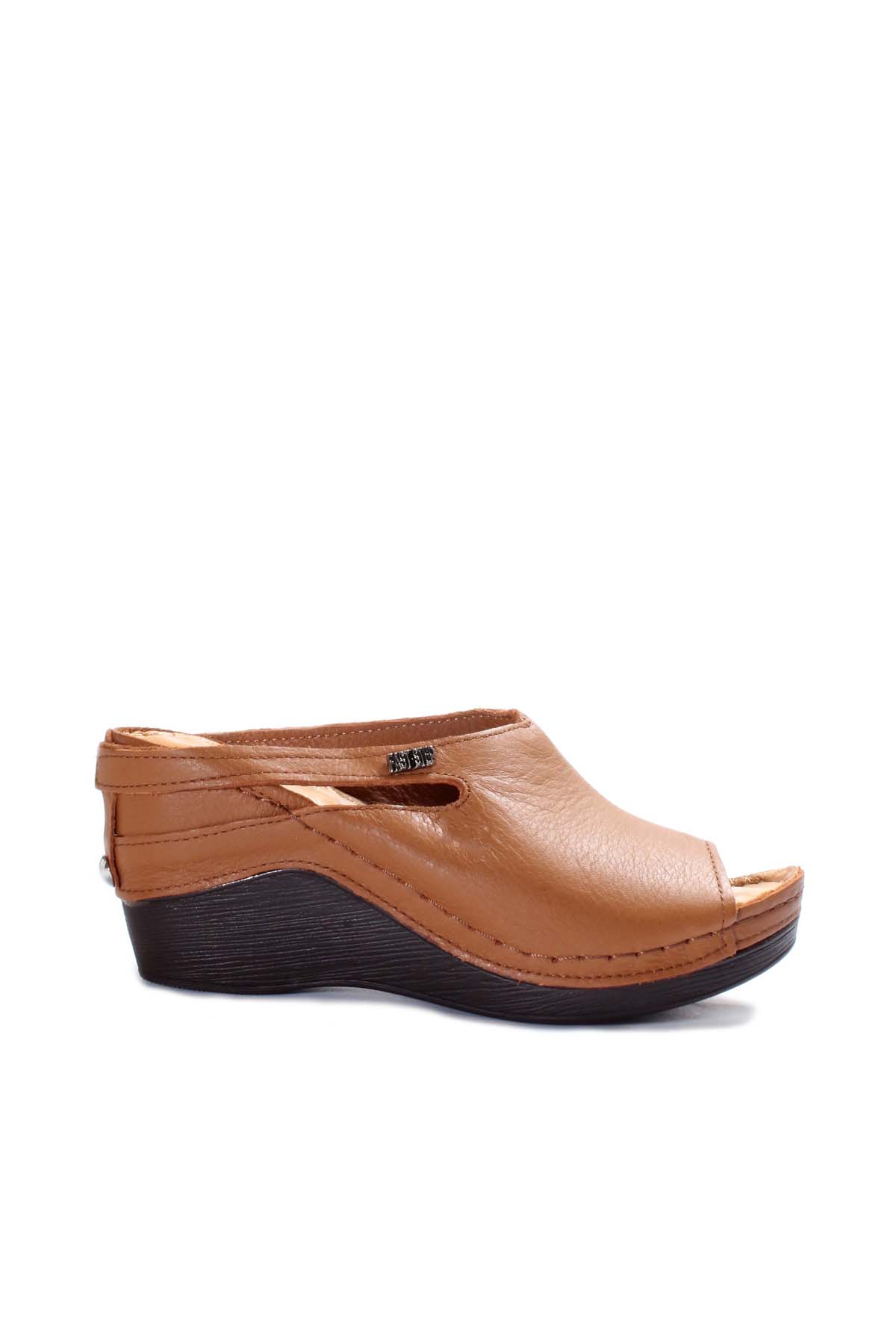 • MirgeShoes Kadın Dolgu Topuk Terlik İçi Dışı Hakiki Deri Taba  MRG0111022611113
