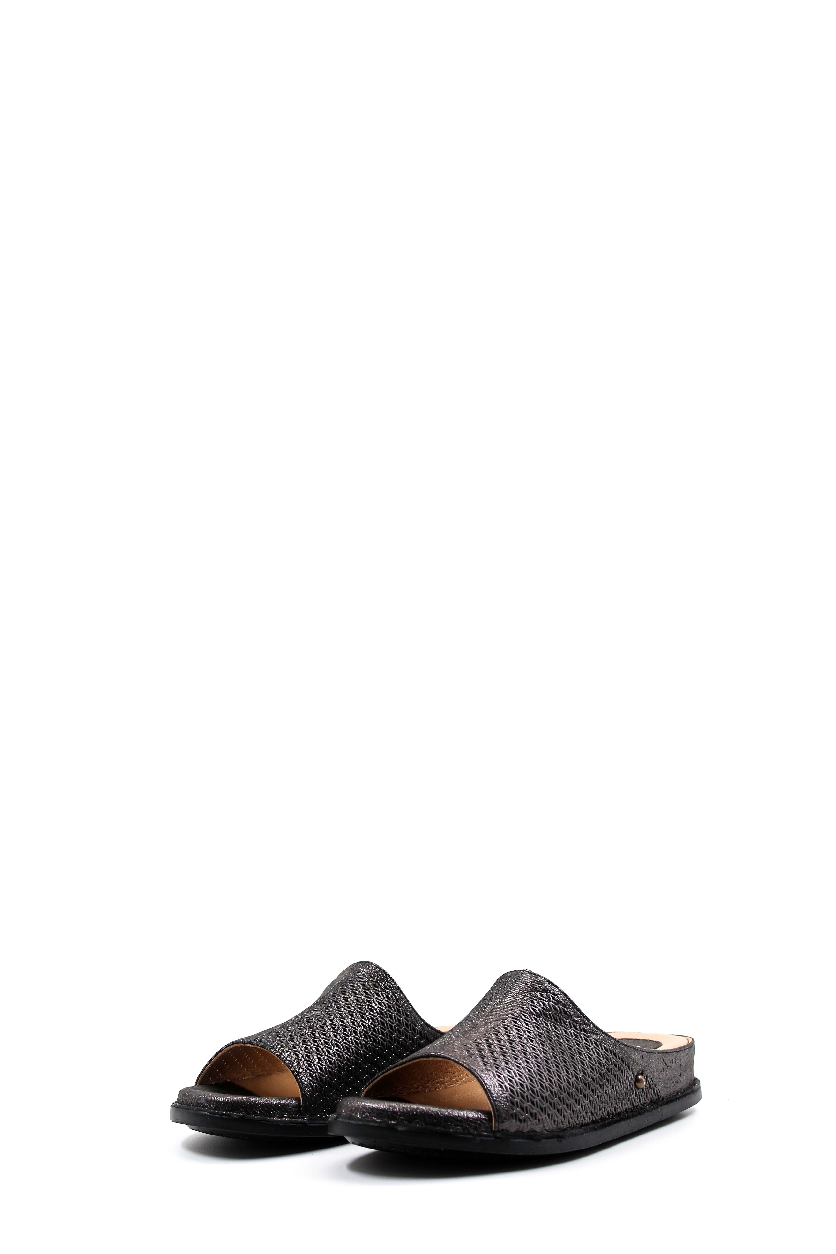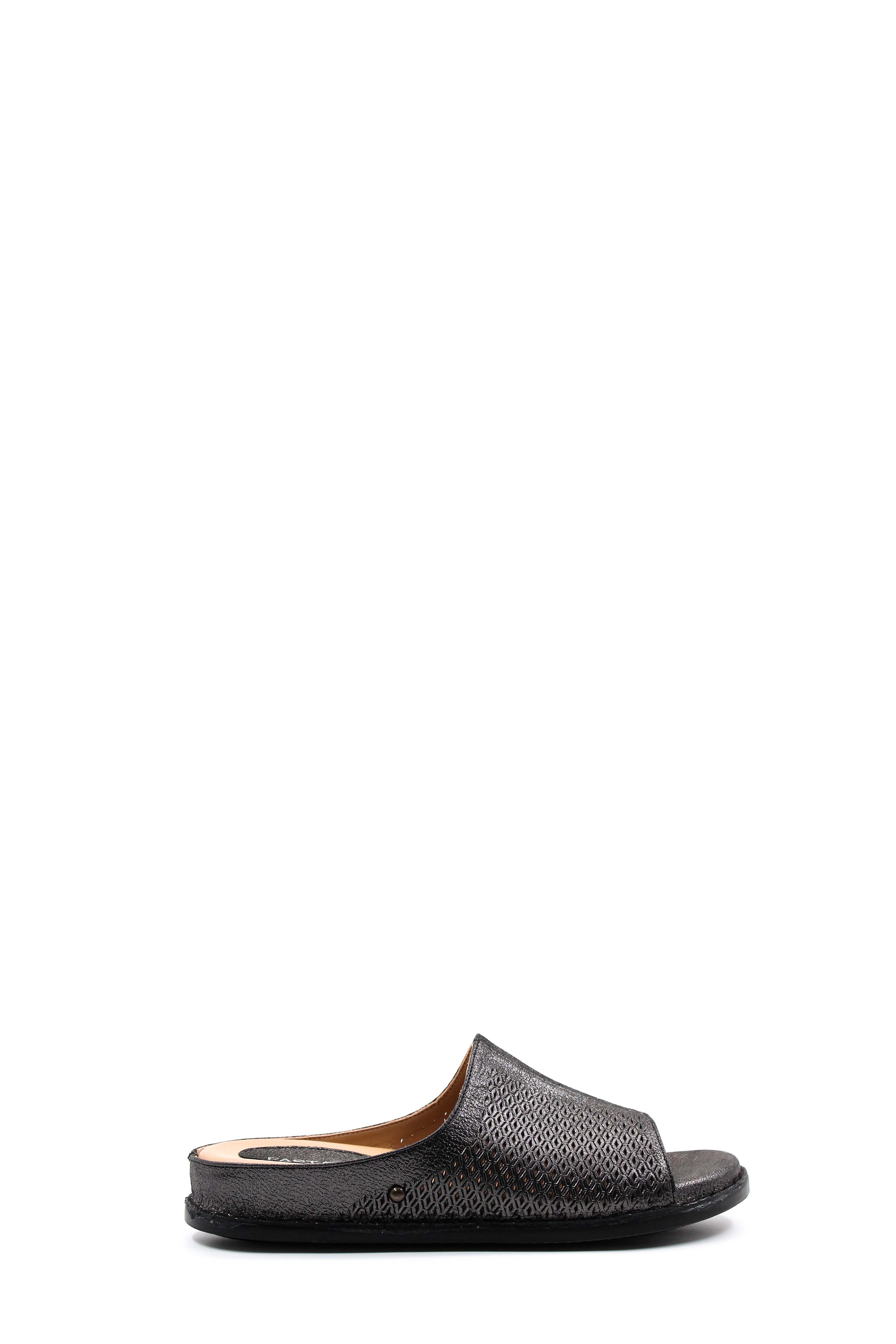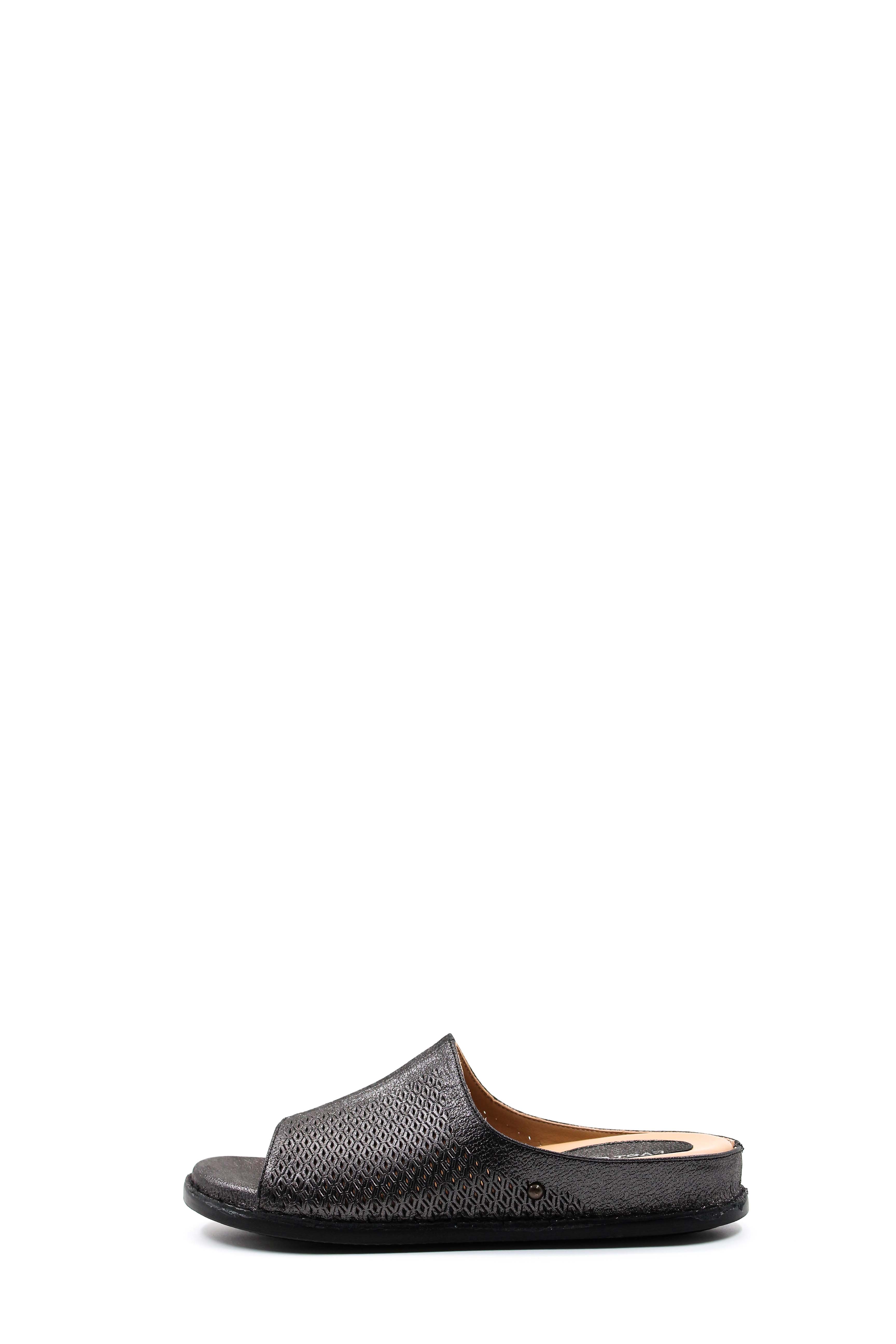 MirgeShoes Kadın Düz Terlik İçi Dışı Hakiki Deri Siyah Çelik MRG018632611129