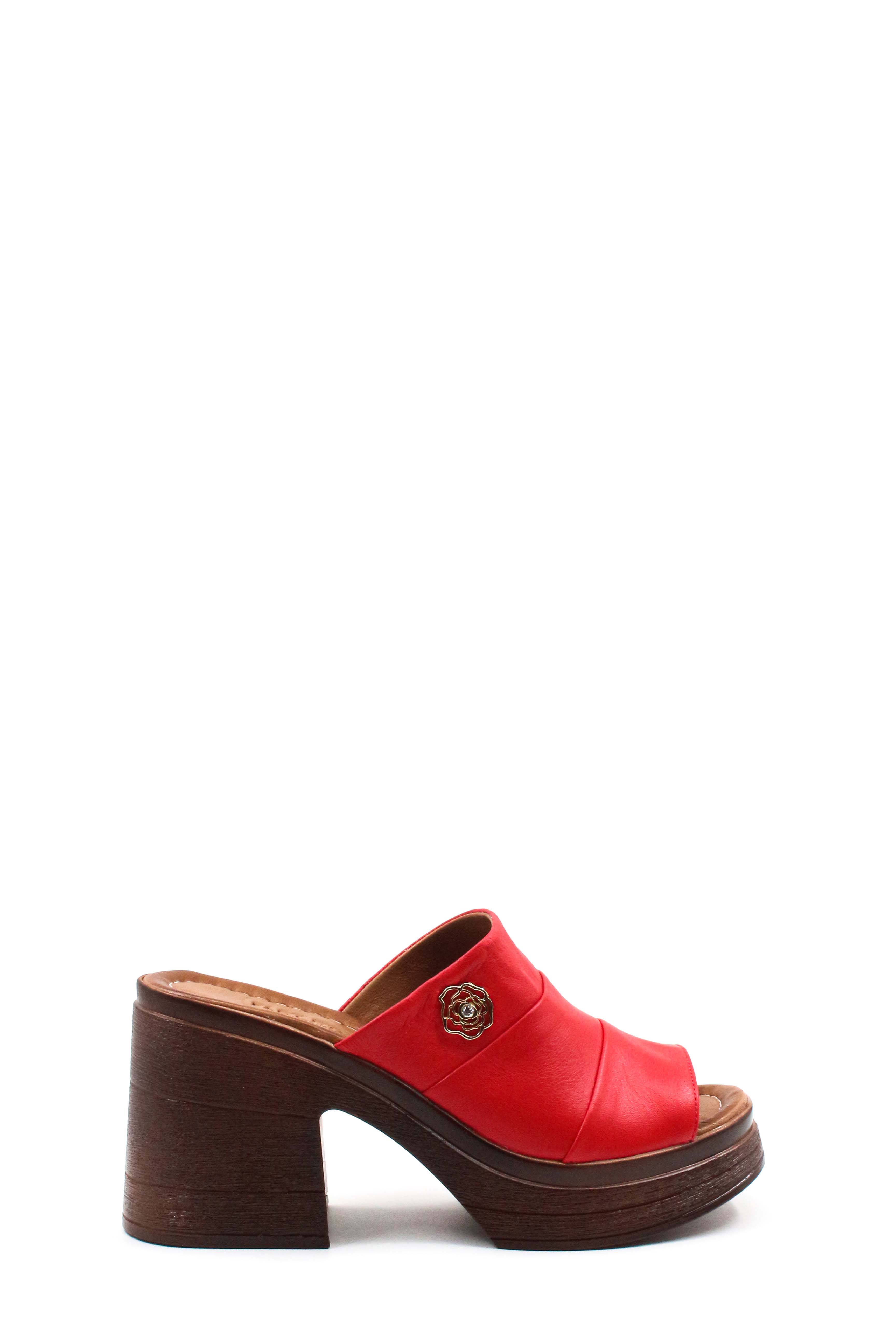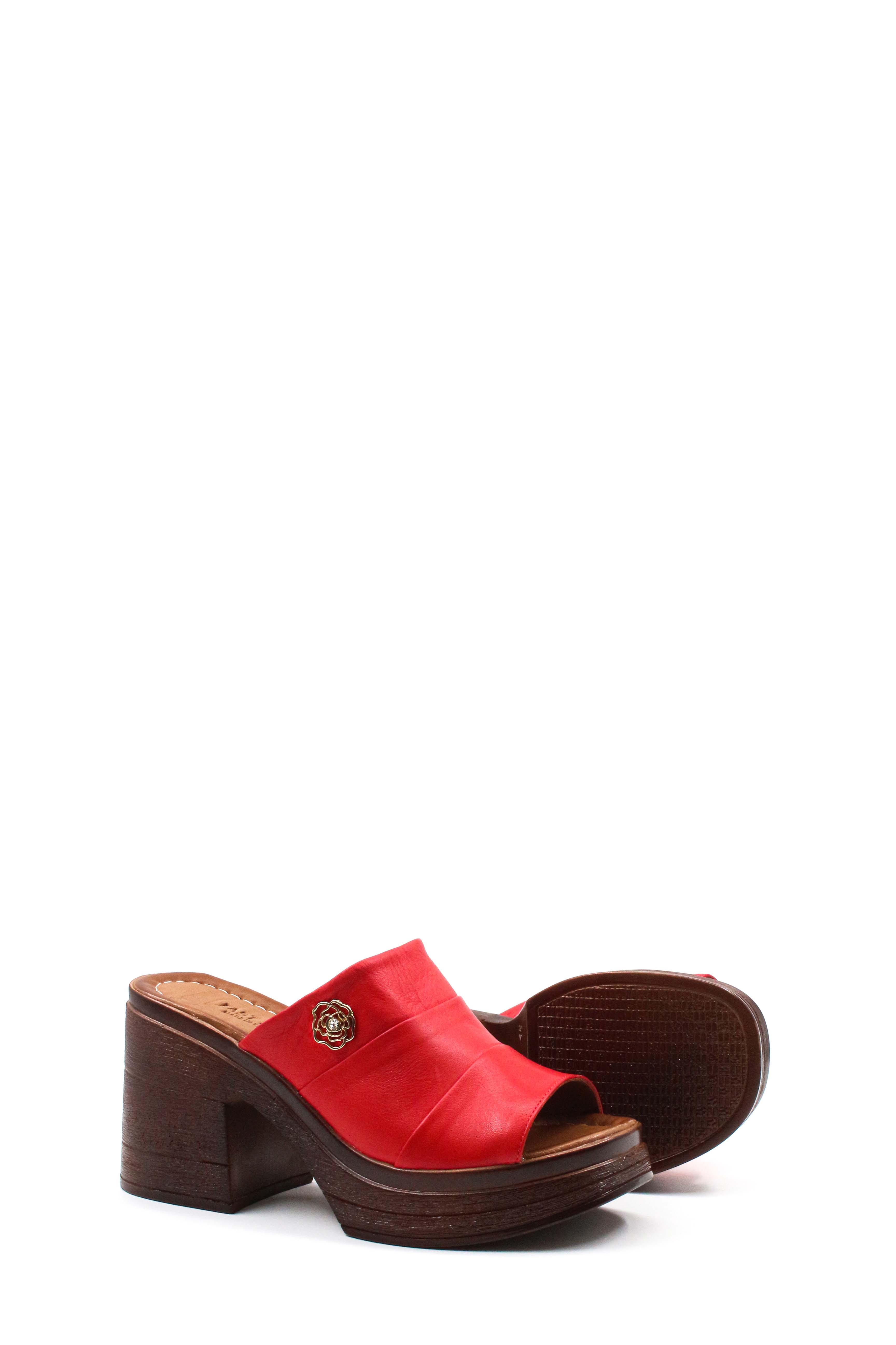 • MirgeShoes Kadın Kalın Topuklu Terlik İçi Dışı Hakiki Deri Kırmızı  MRG012542615388