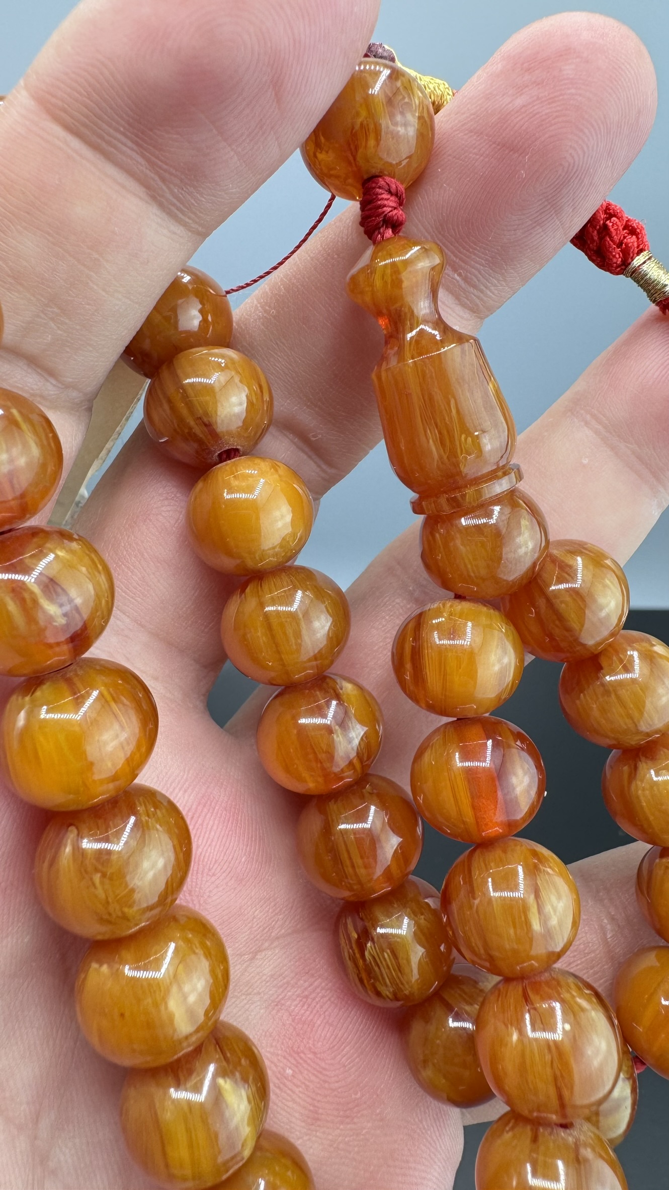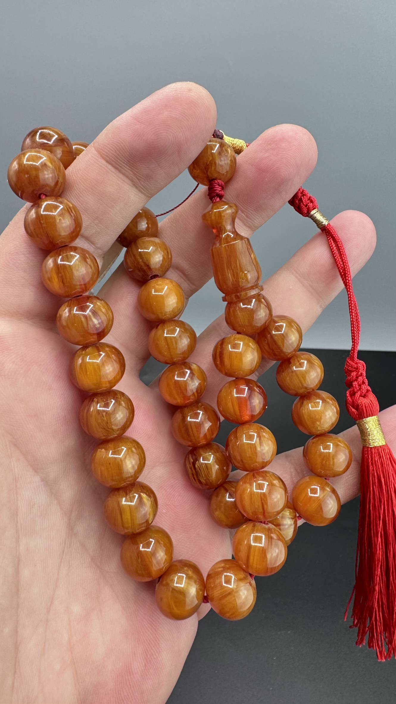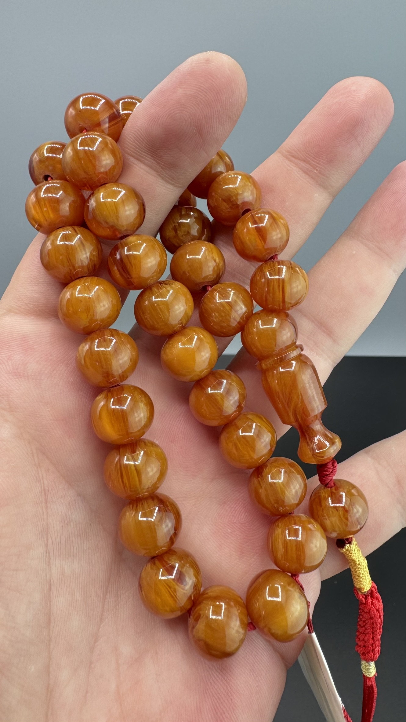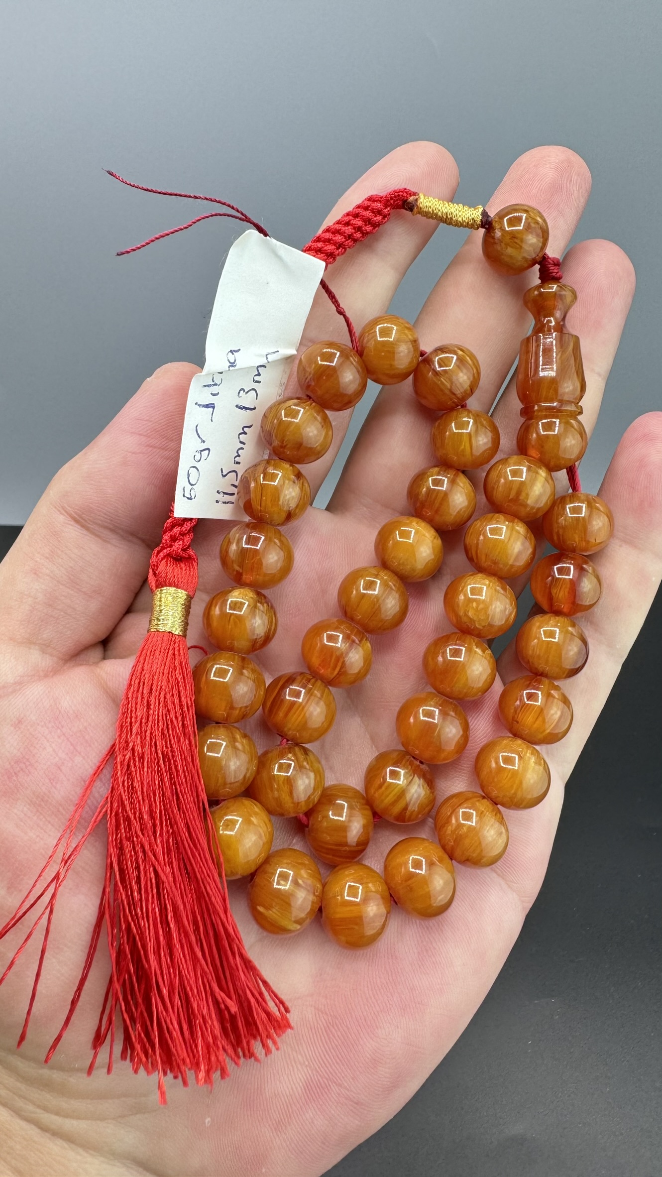 • Kesimi : Basık küre Kesim Sıkma Kehribarı Tesbih
