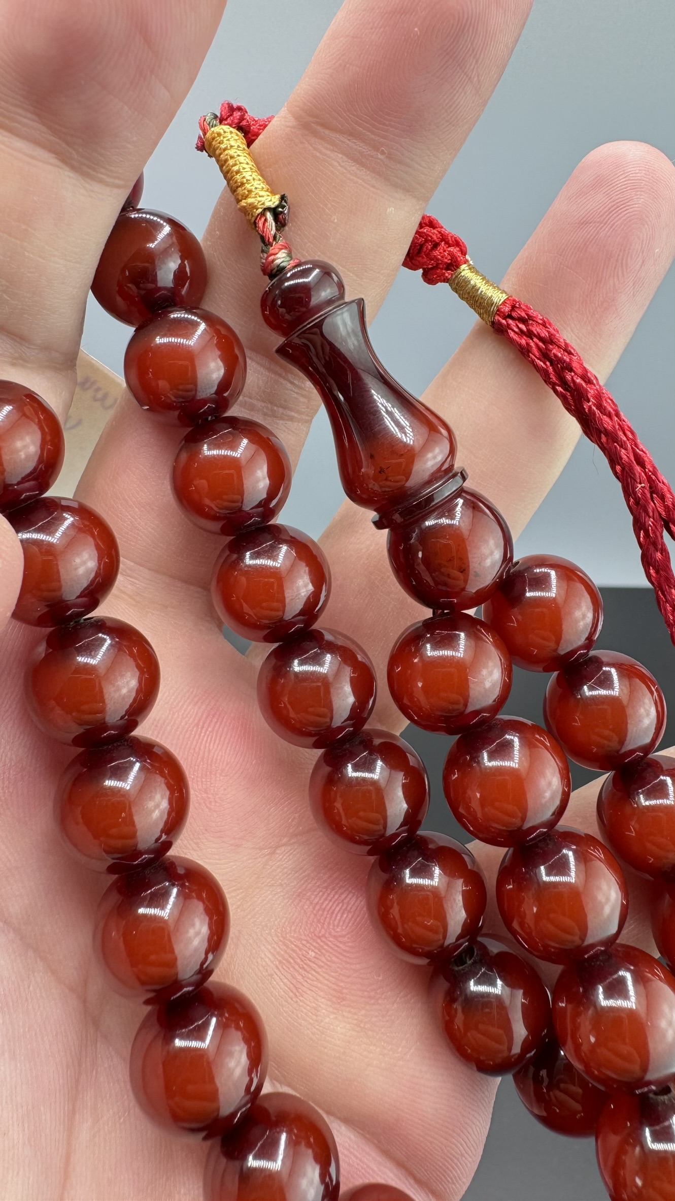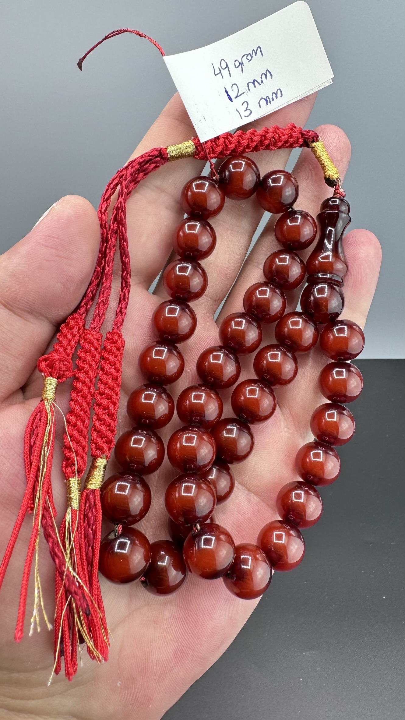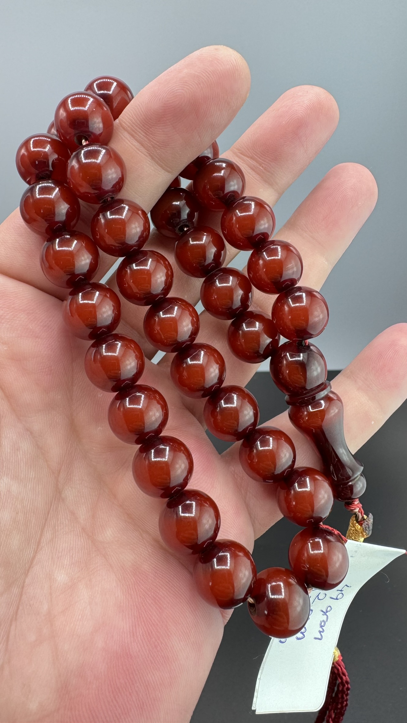 Tesbih MirgeShoes Eski Döküm Sürmeli Hareli Vişne 49 Gr Sıkma Kehribar Tesbih AHTES2103