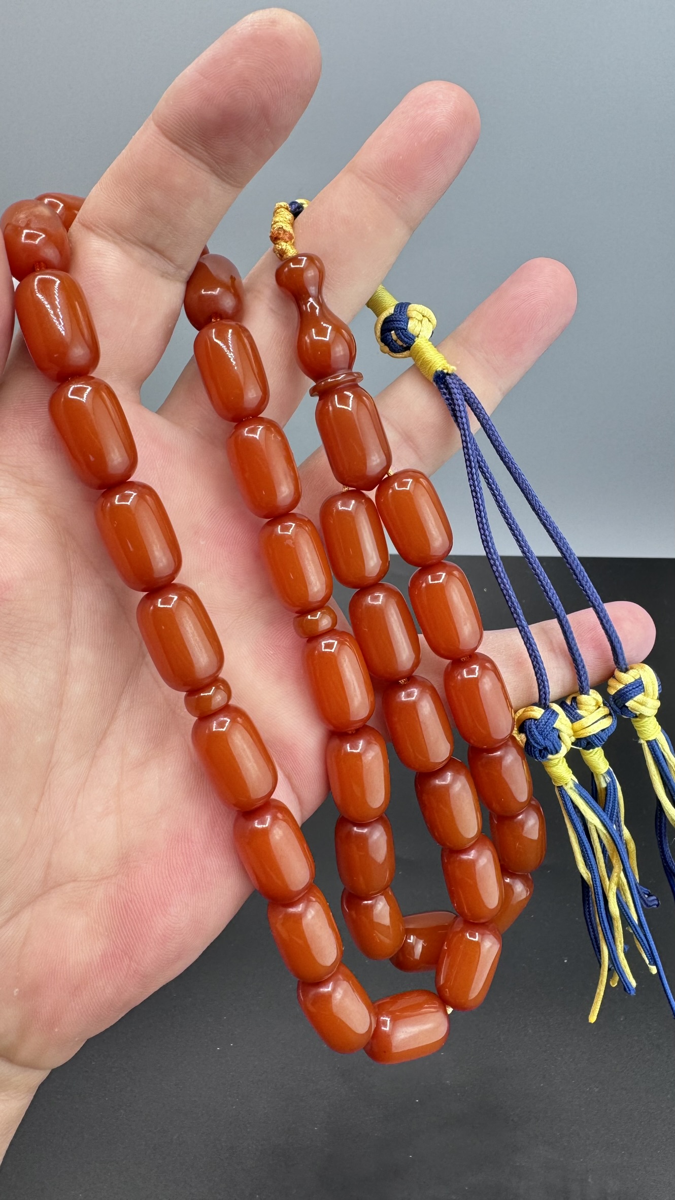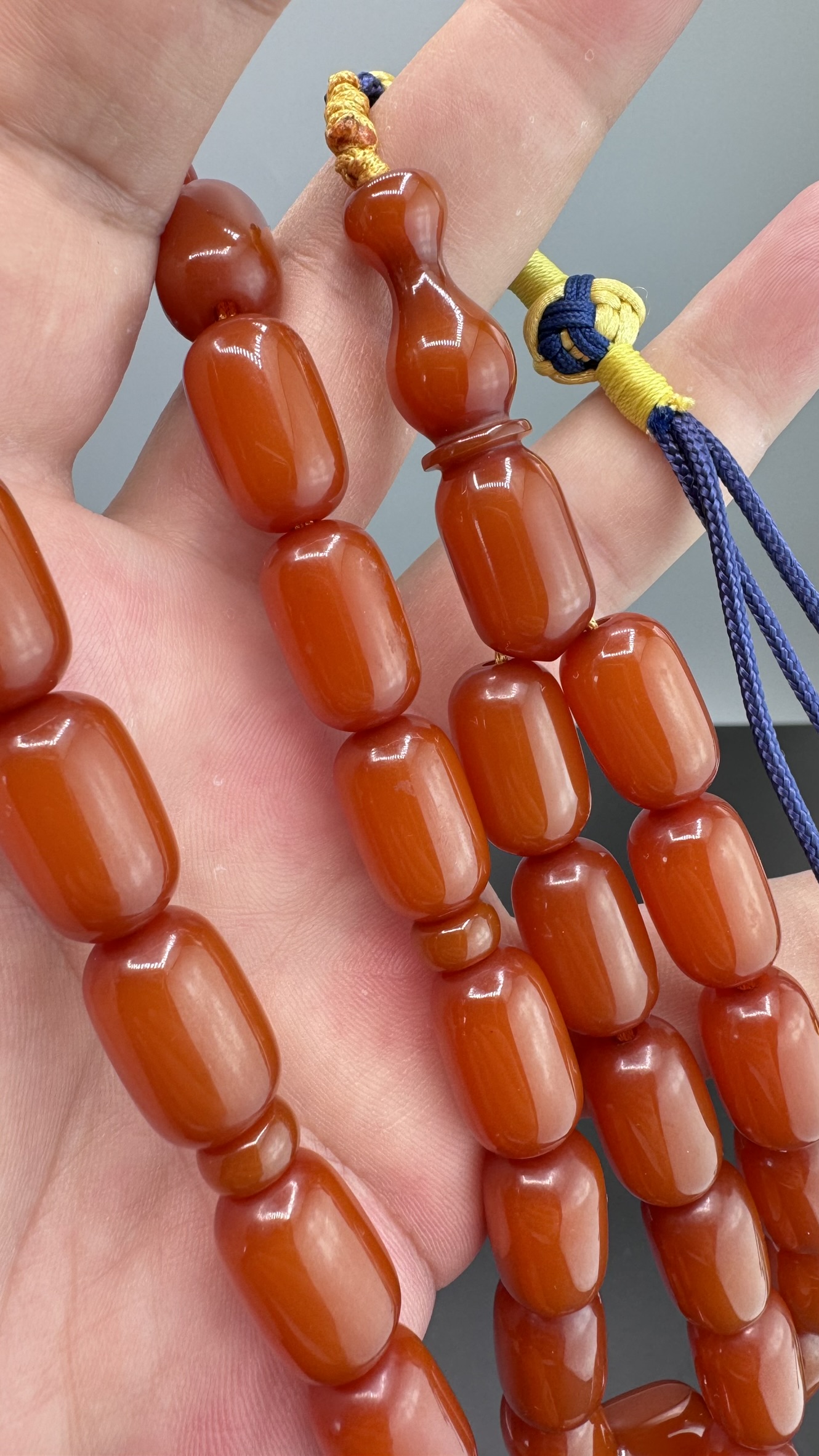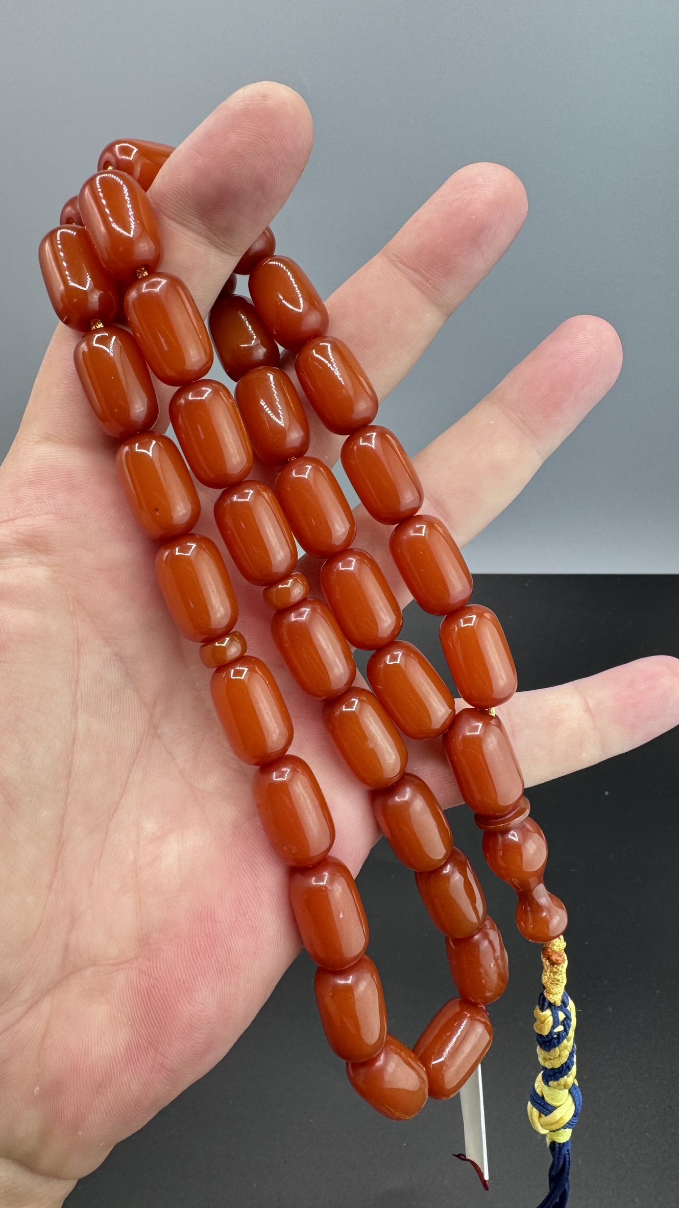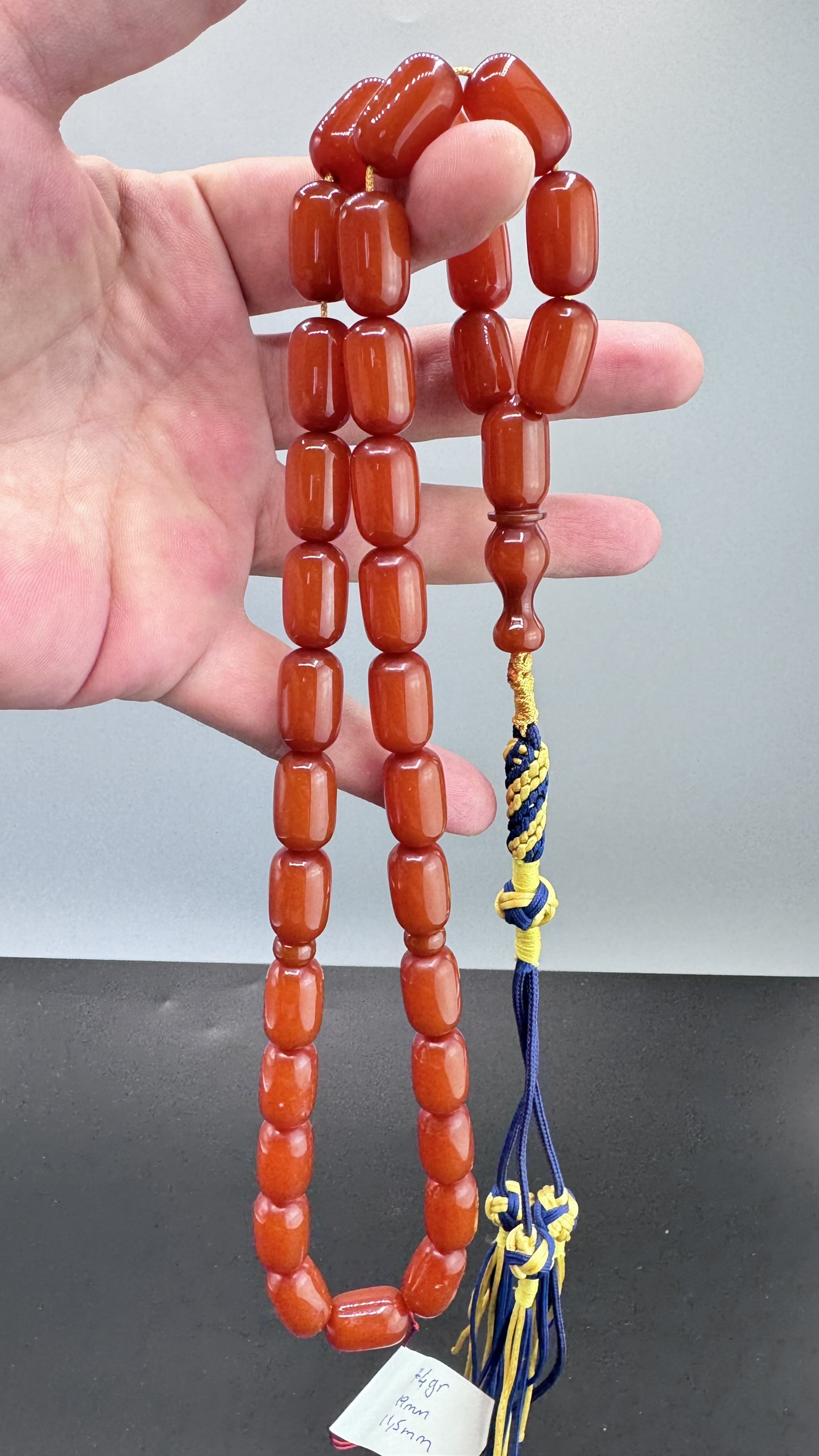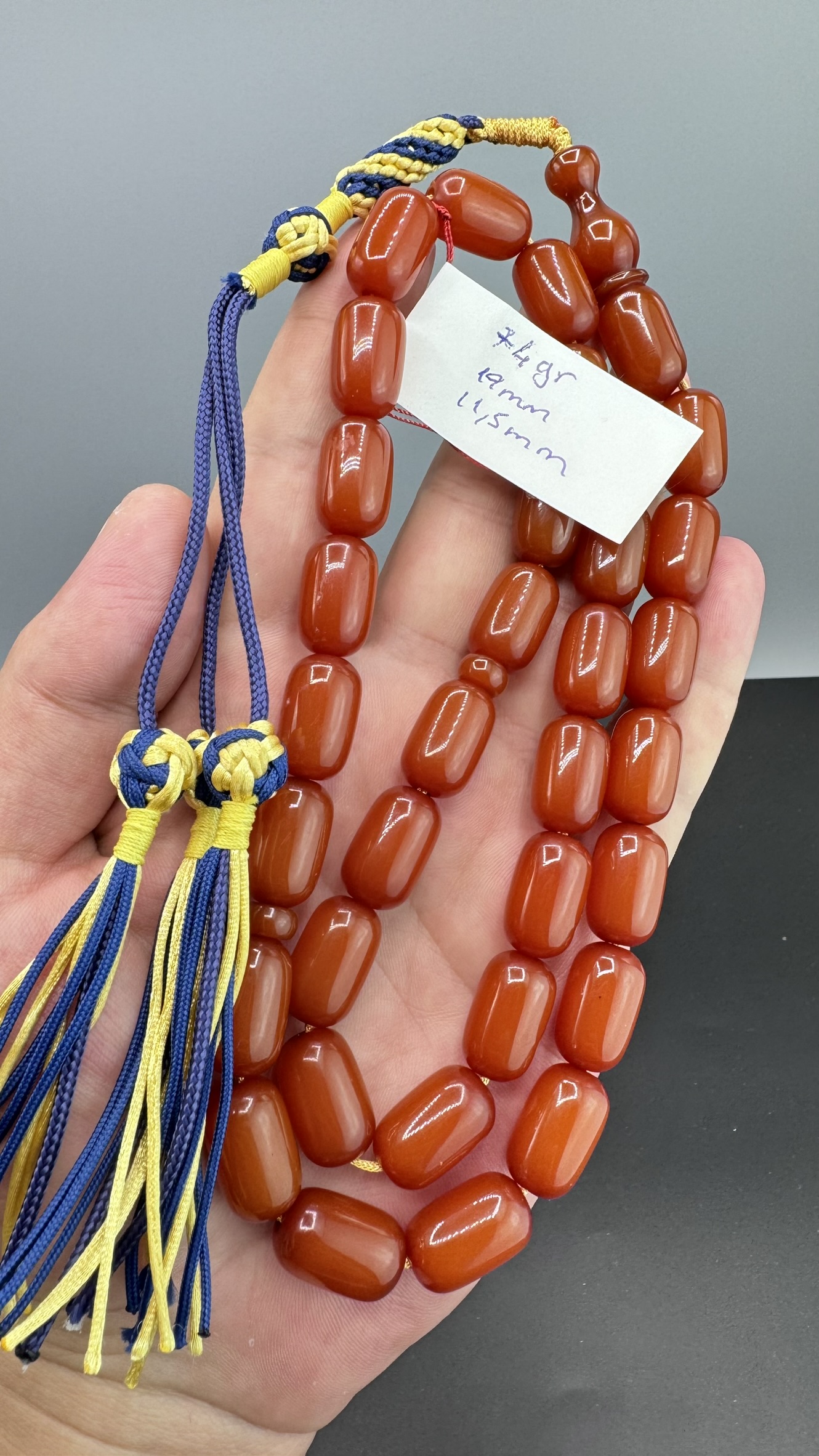 • Kesimi : Uzun Kapsül Kesim Sıkma Kehribarı Tesbih