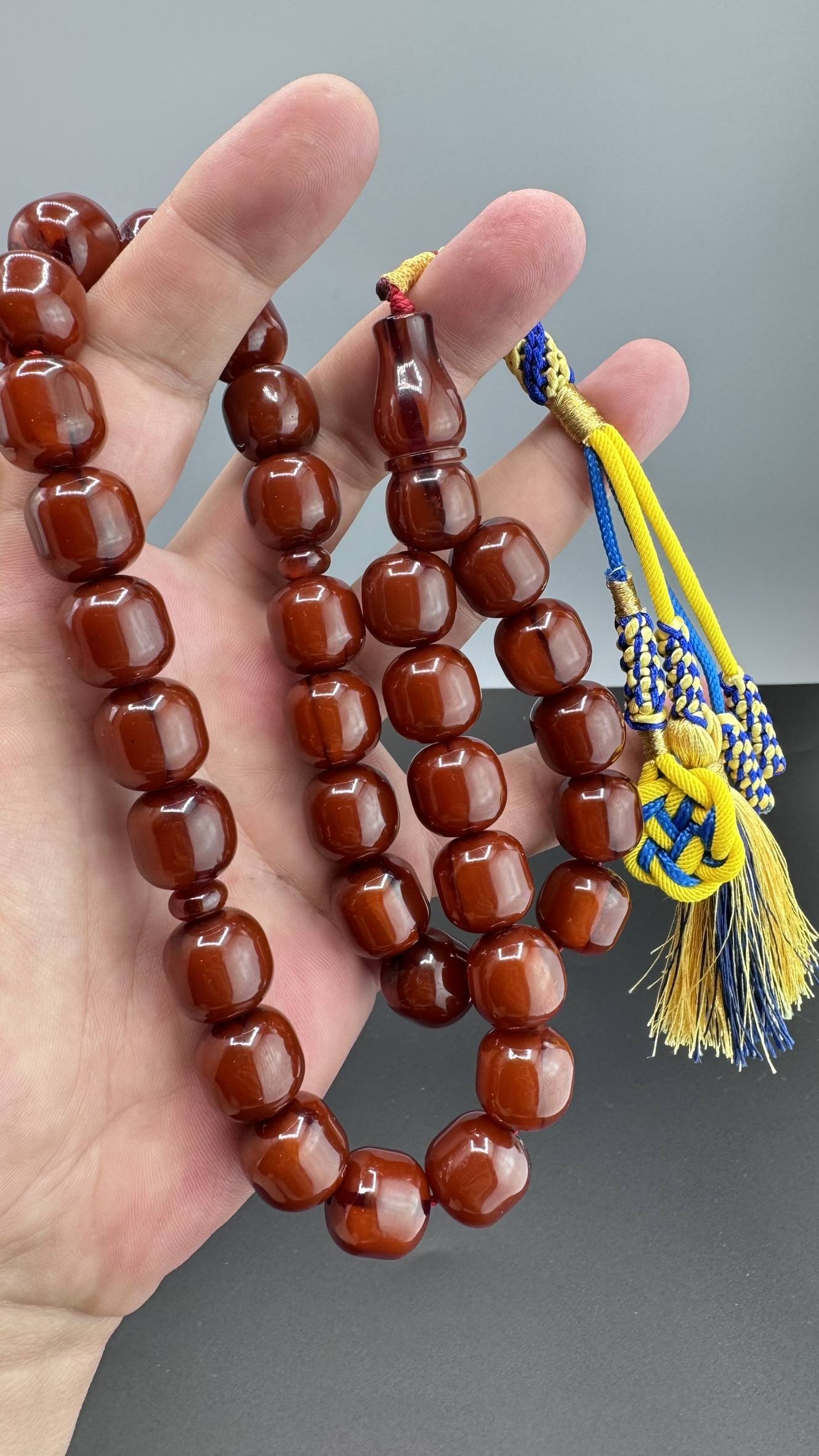 • Kesimi : Basık Kapsül Sıkma Kehribarı Tesbih