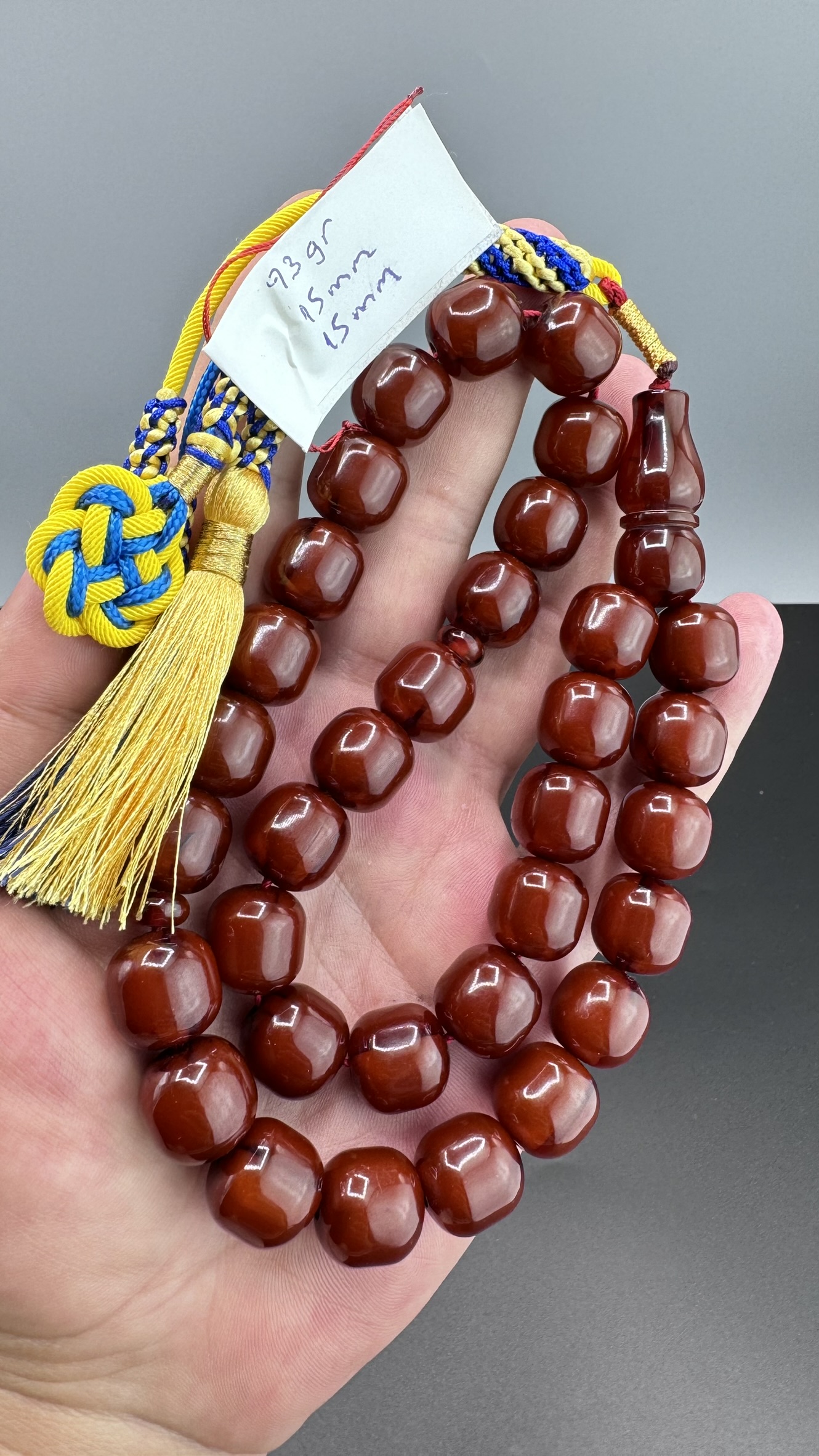 Tesbih MirgeShoes Eski Döküm Rüzgar Gülü Hareli Vişne 93 Gr Sıkma Kehribar Tesbih AHTES2127