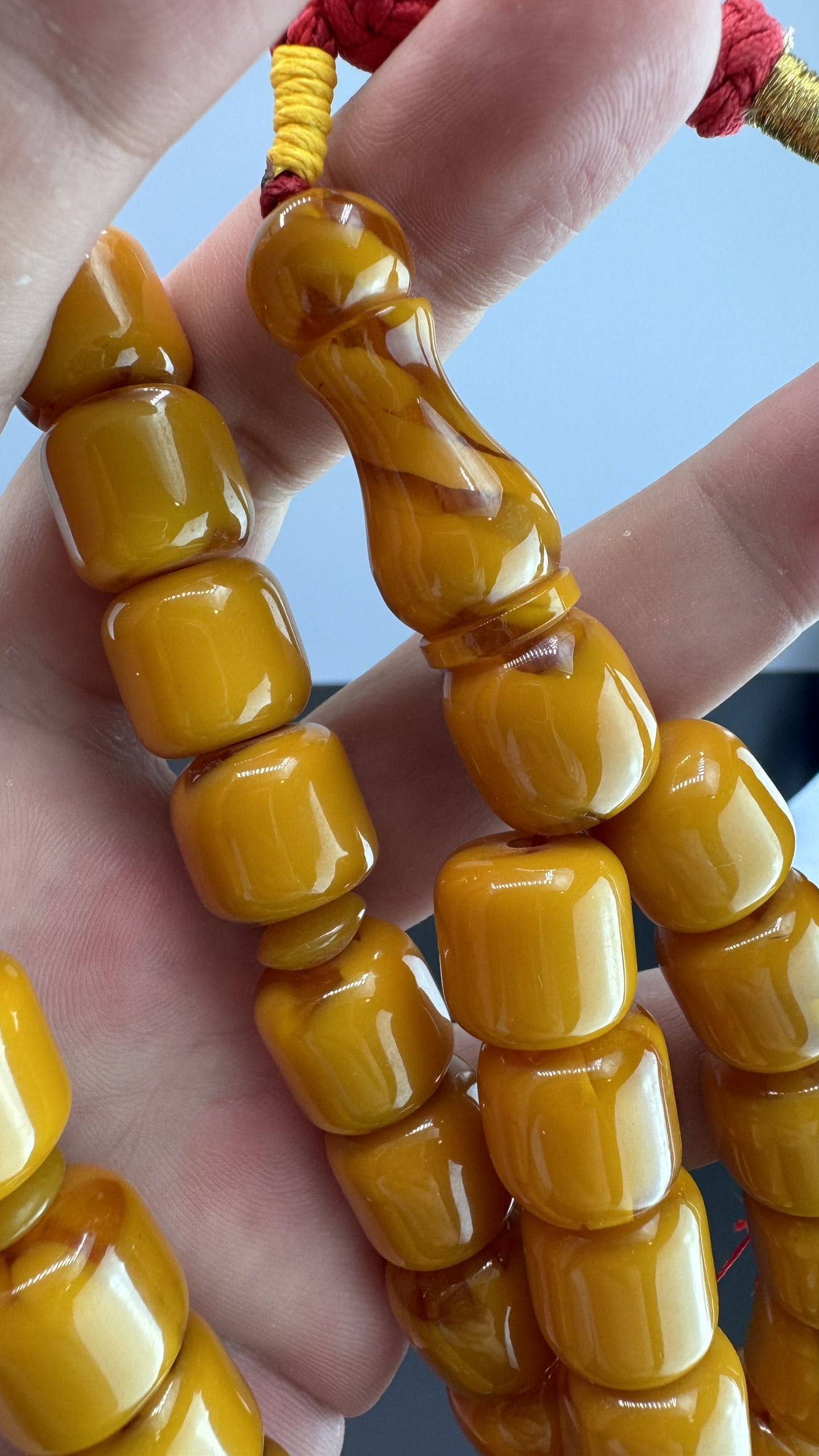 Tesbih MirgeShoes Eski Döküm Rüzgar Gülü Hareli Sarı 95 Gr Sıkma Kehribar Tesbih AHTES2140