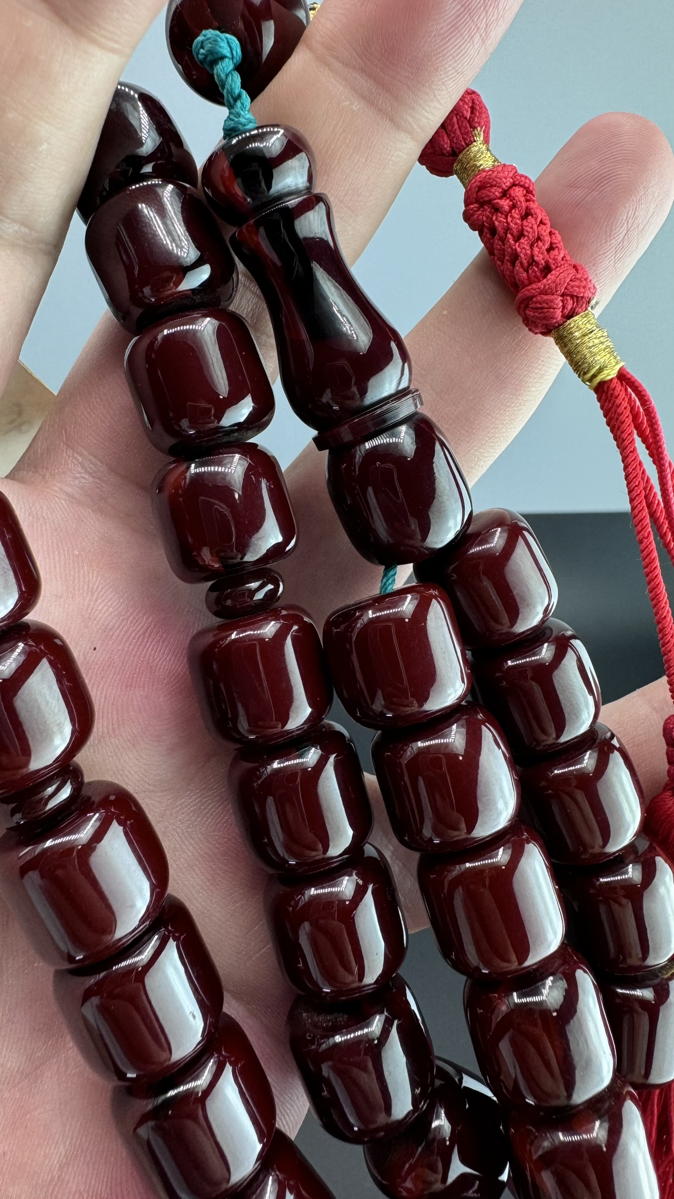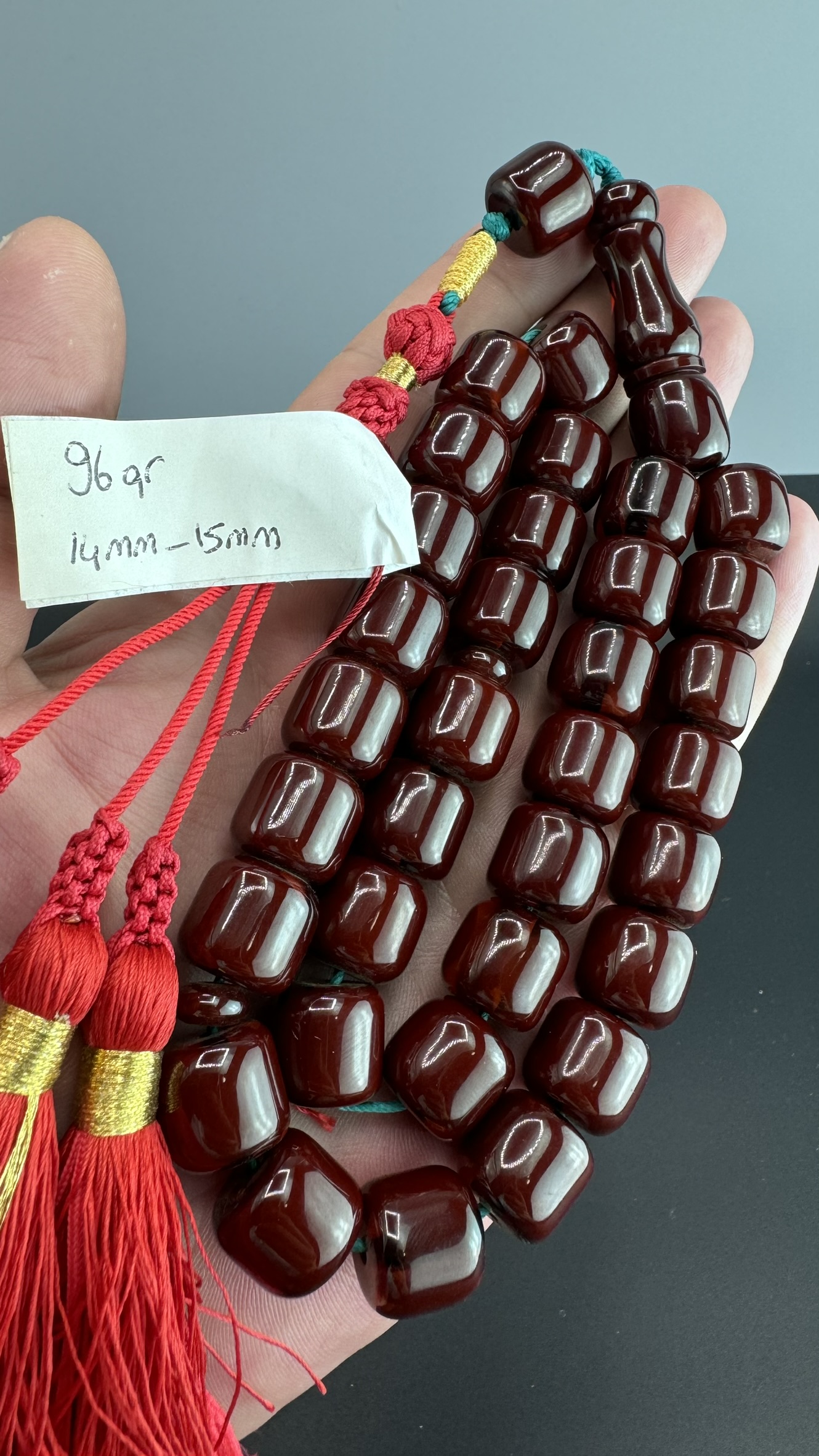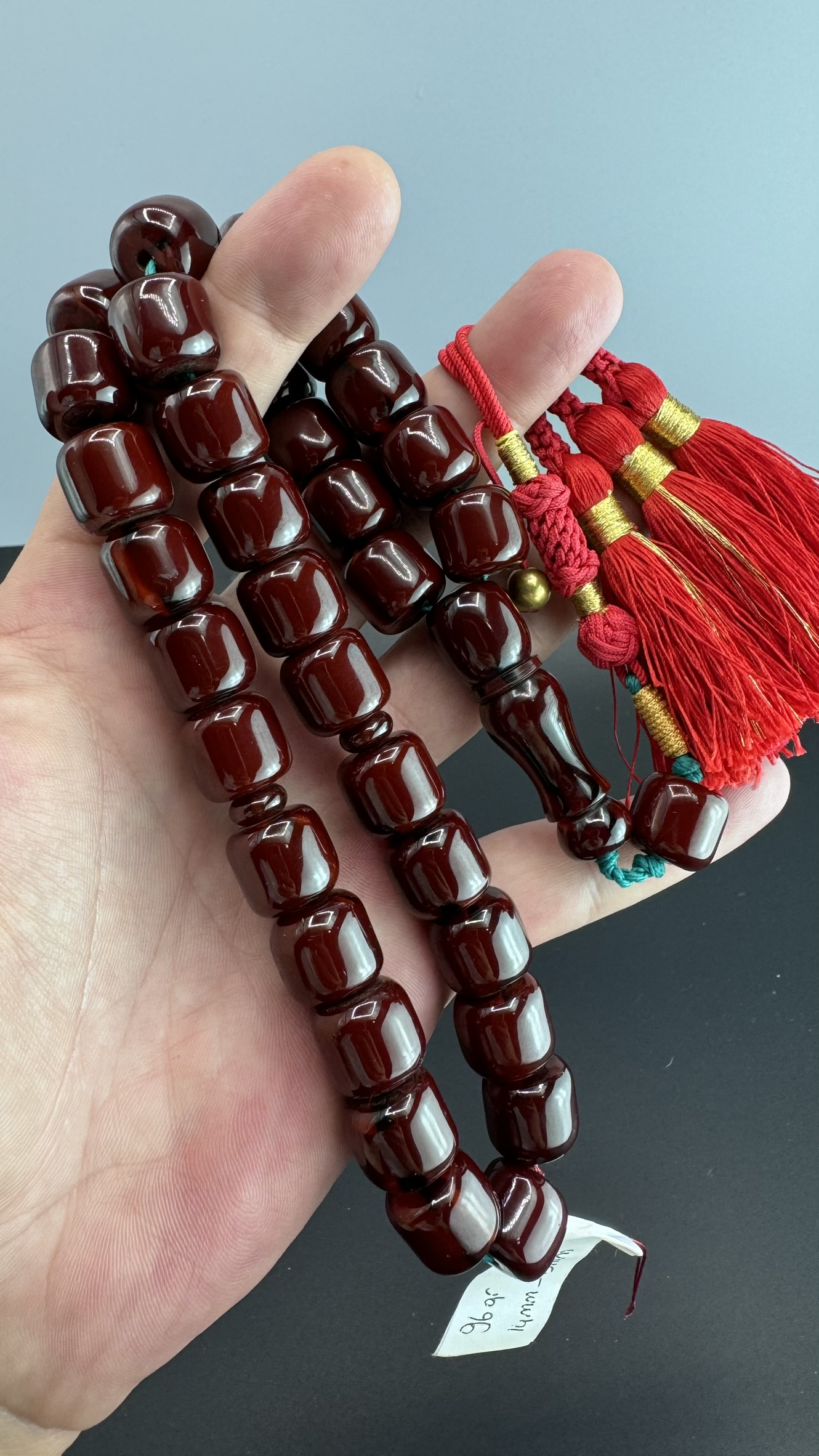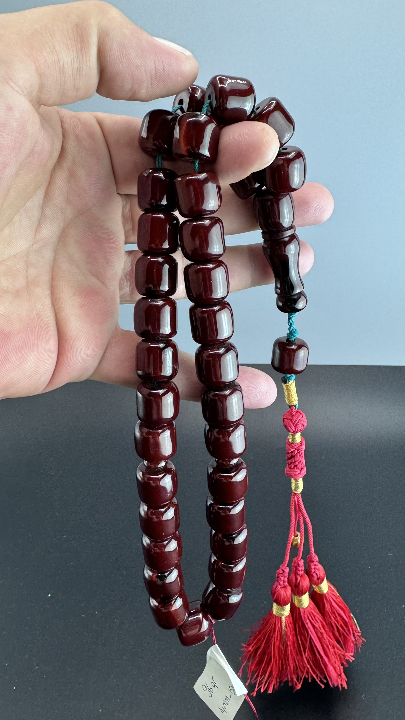 Tesbih MirgeShoes Eski Döküm Rüzgar Gülü Hareli Vişne 96 Gr Sıkma Kehribar Tesbih AHTES2141