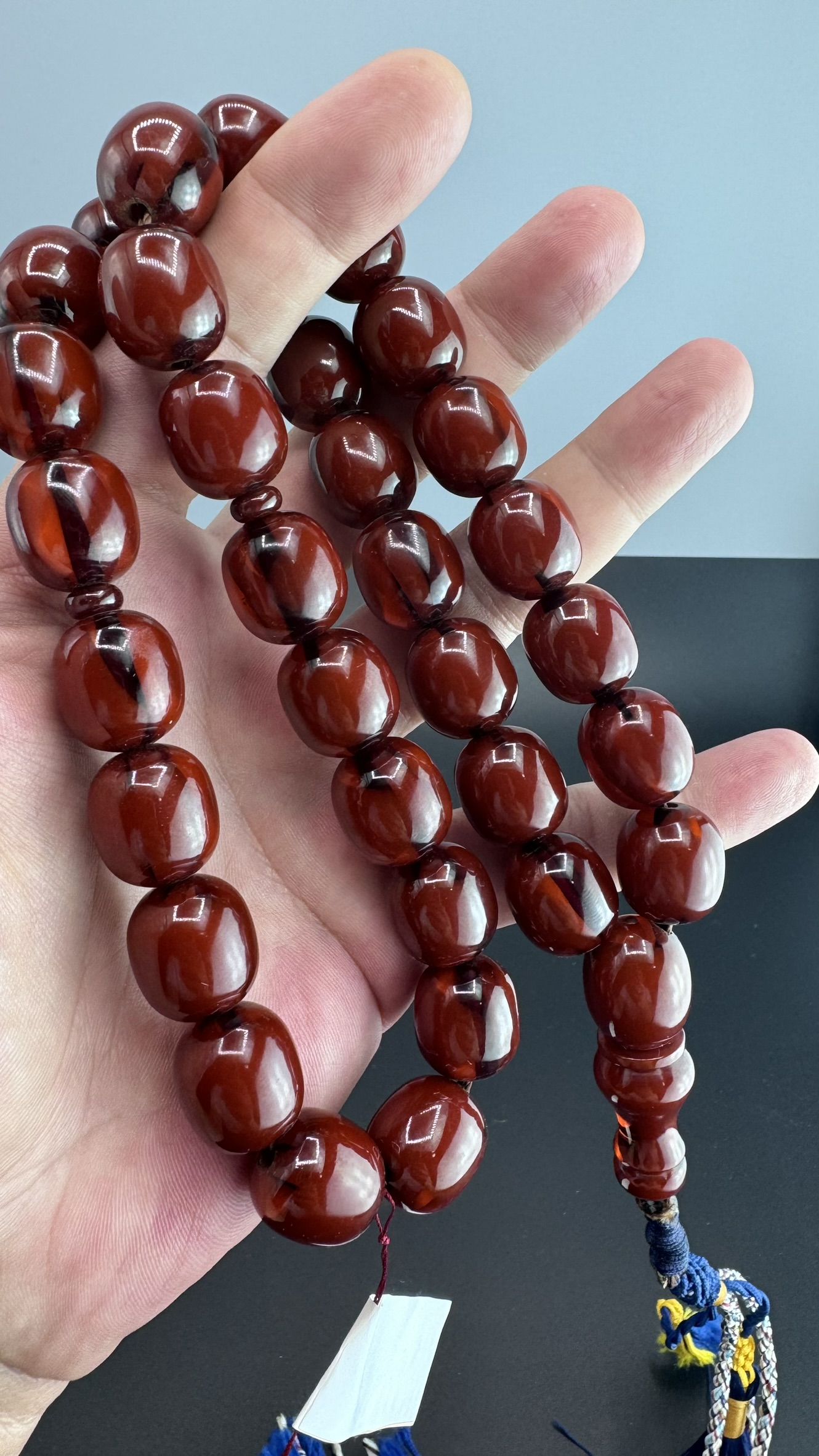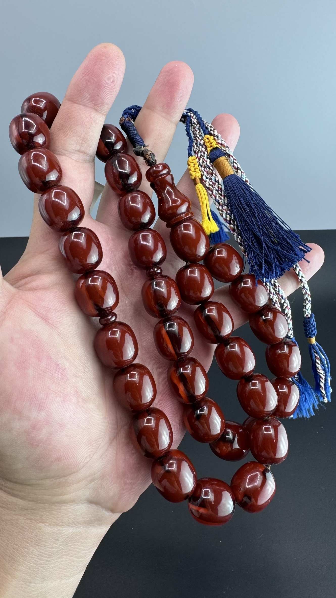 Tesbih MirgeShoes Eski Döküm Rüzgar Gülü Hareli Mişmiş 120 Gr Sıkma Kehribar Tesbih AHTES2143