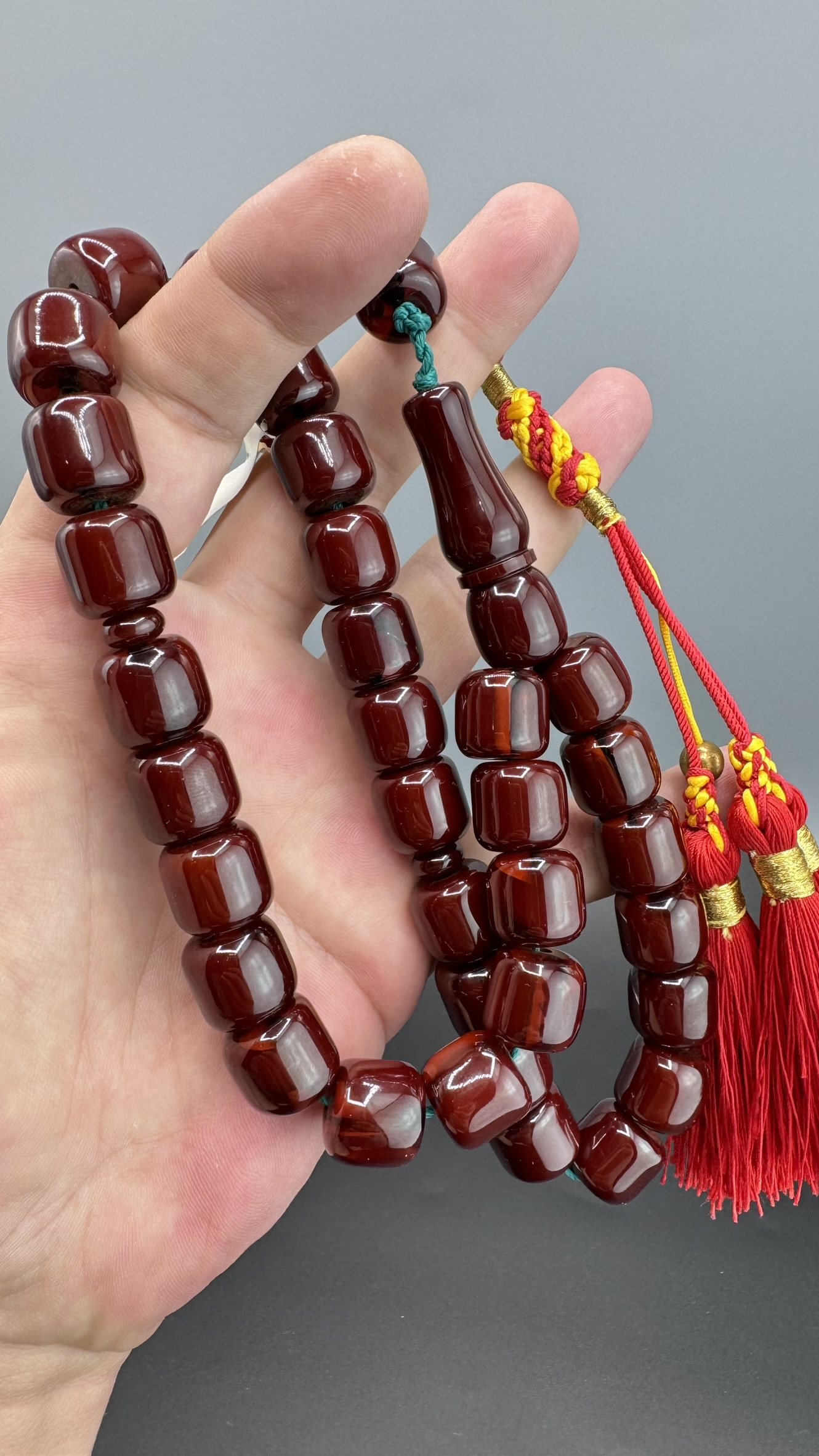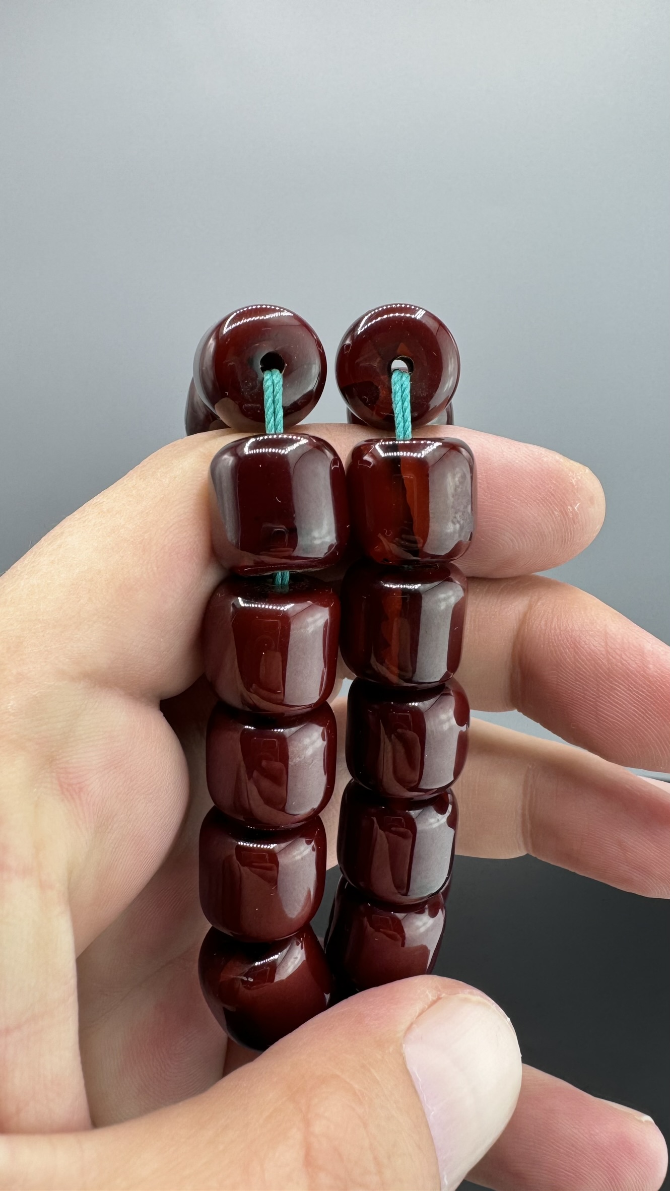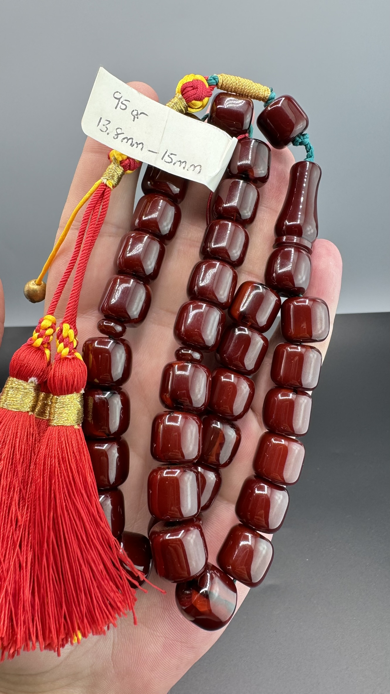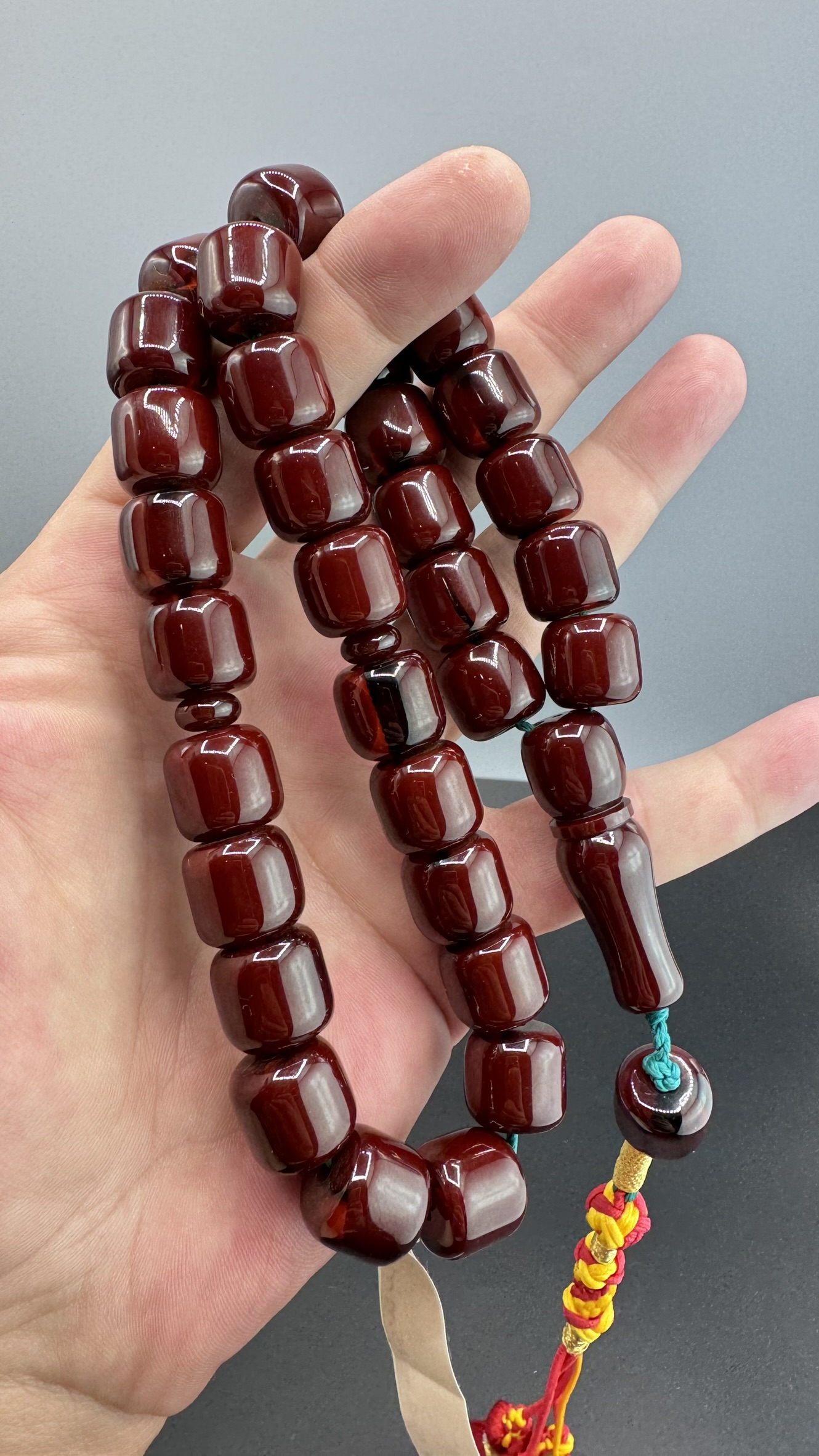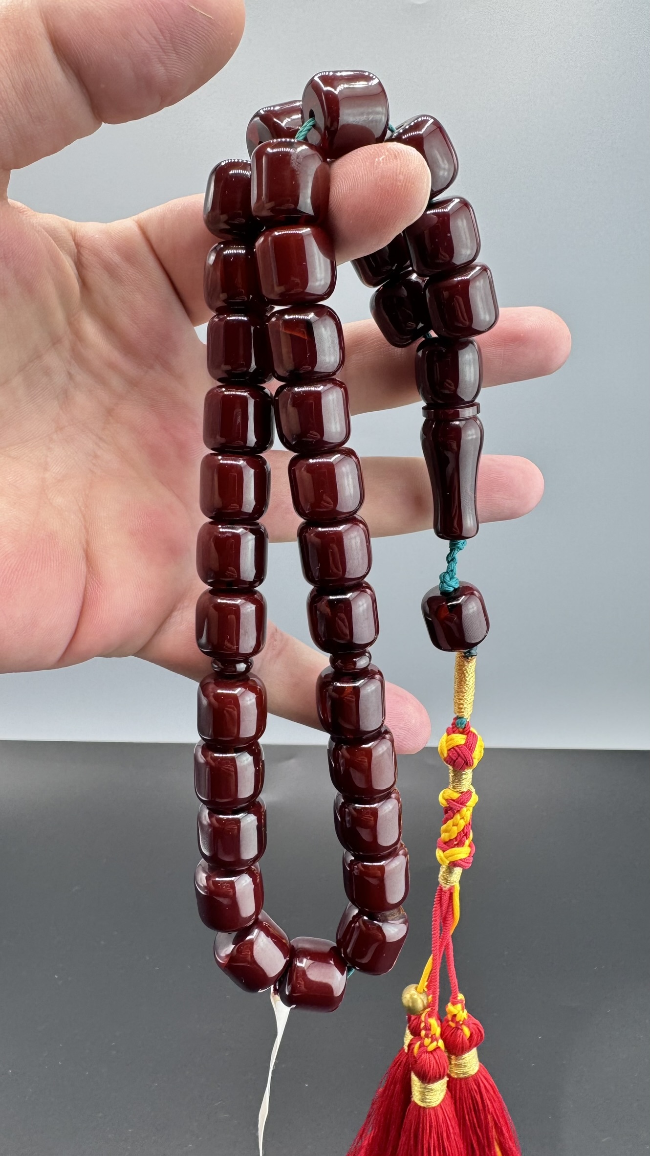 Tesbih MirgeShoes Üst Düzey Eski Döküm Rüzgar Gülü Hareli Vişne 95 Gr Sıkma Kehribar Tesbih AHTES2160