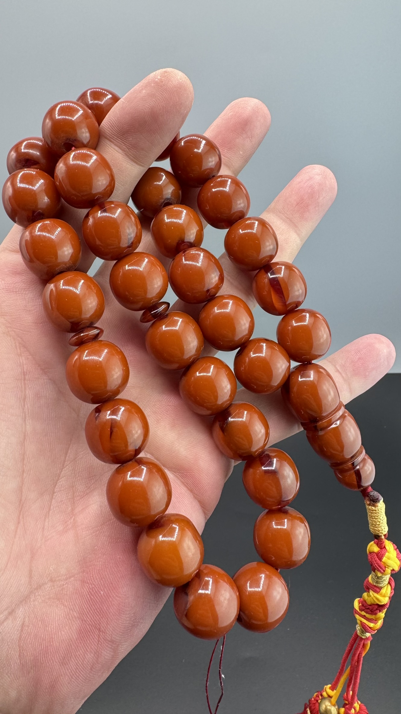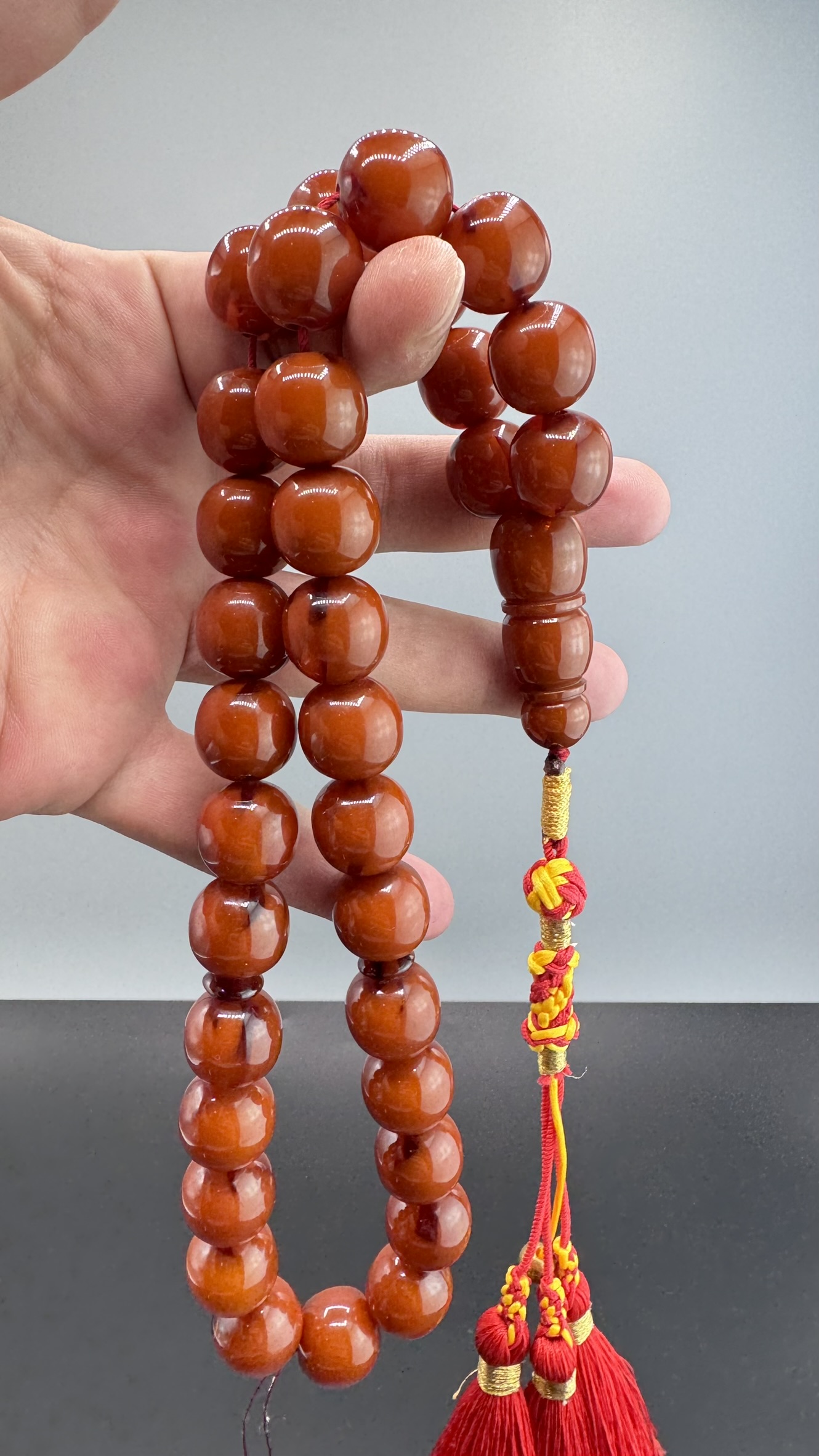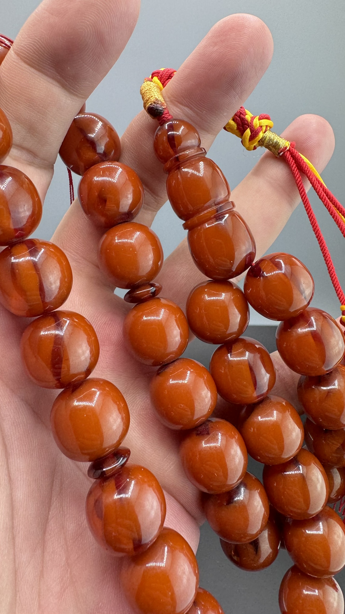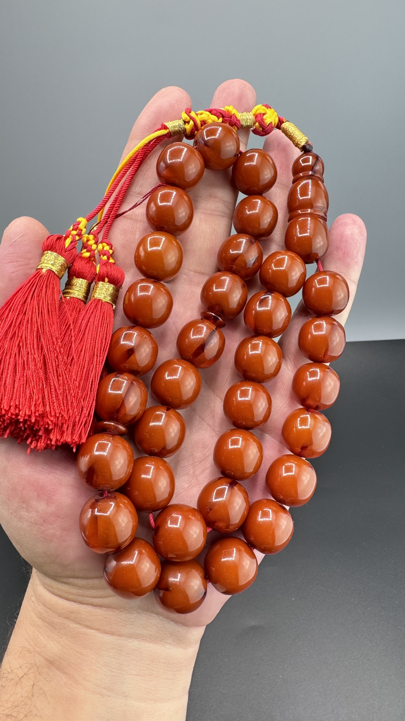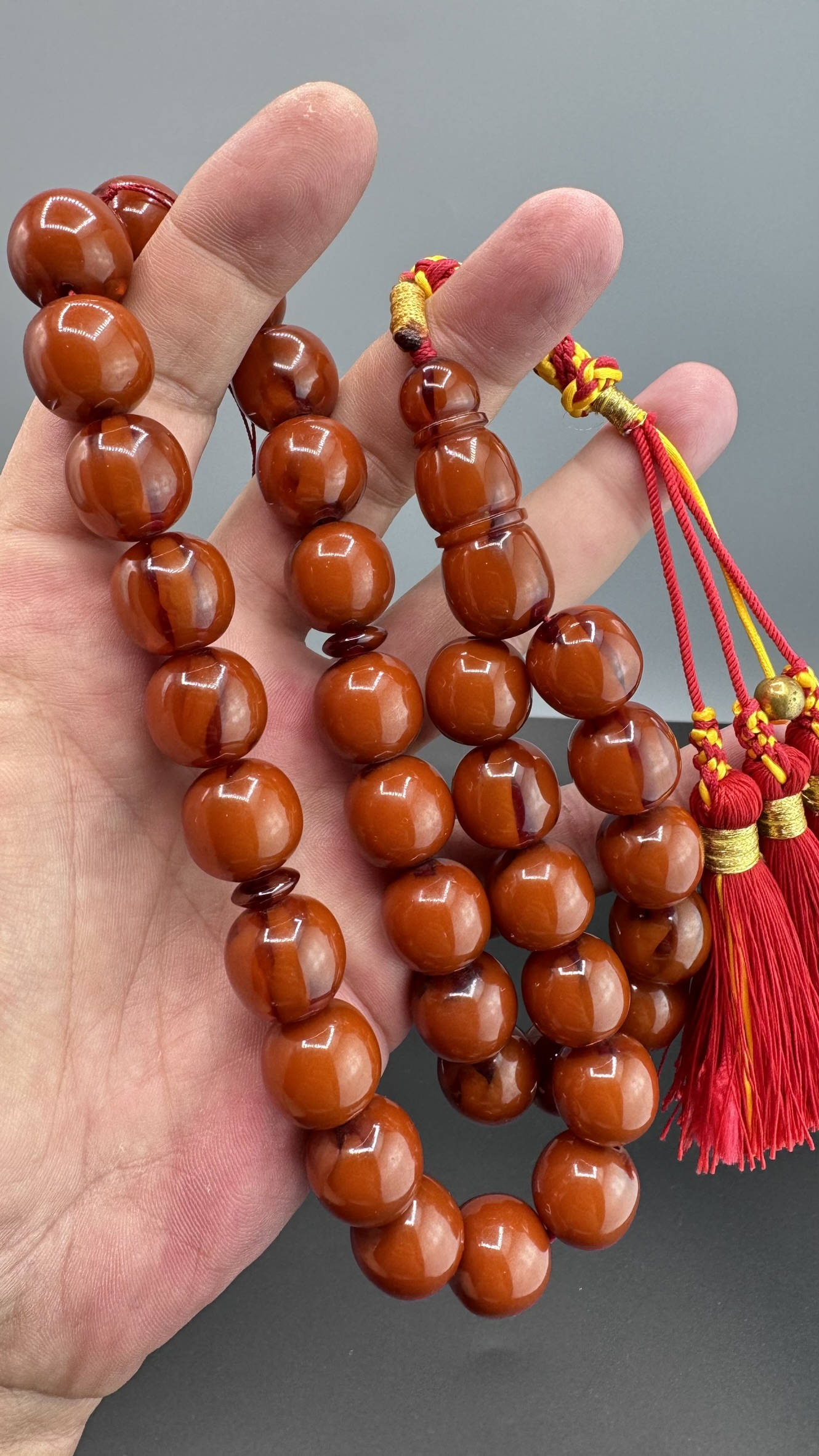 Tesbih MirgeShoes Eski Döküm Rüzgar Gülü Hareli Mişmiş 110 Gr Sıkma Kehribar Tesbih AHTES2161