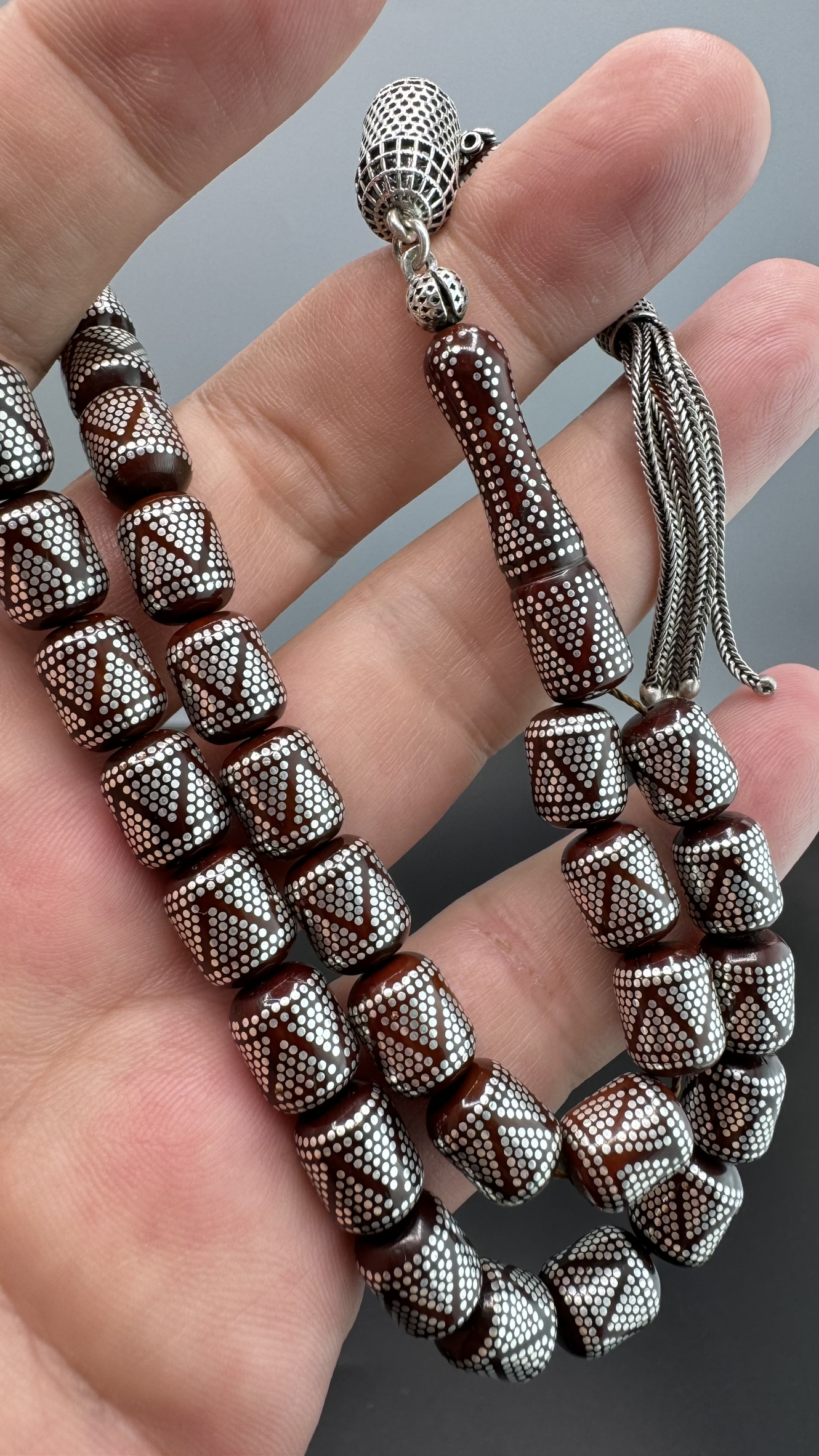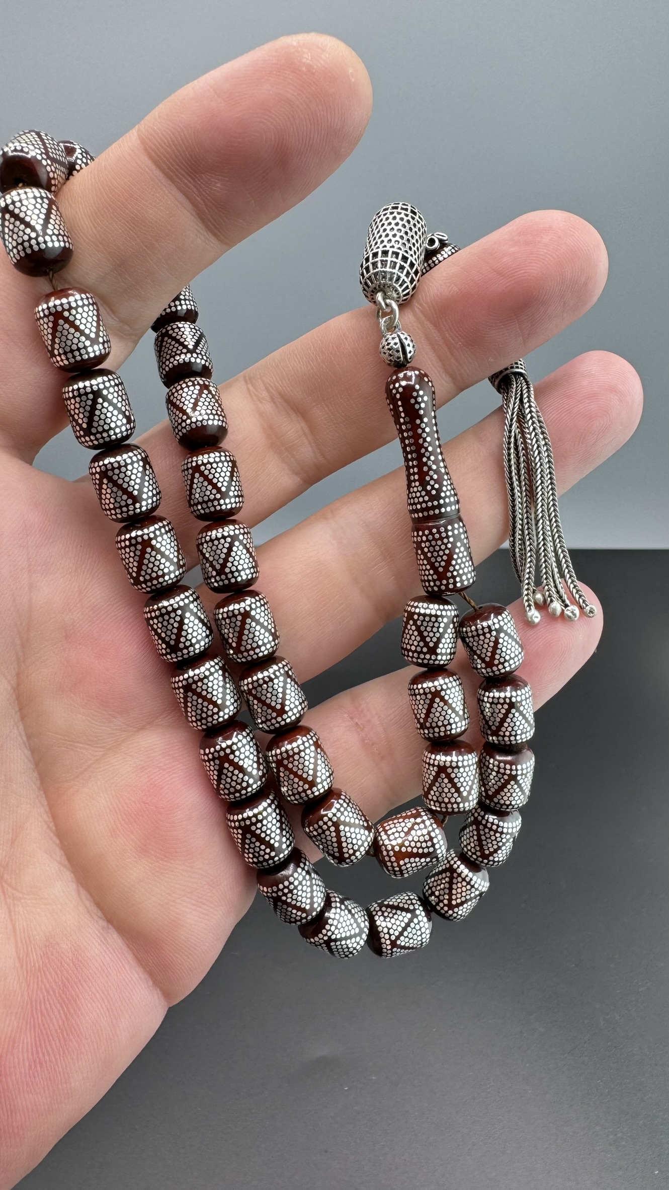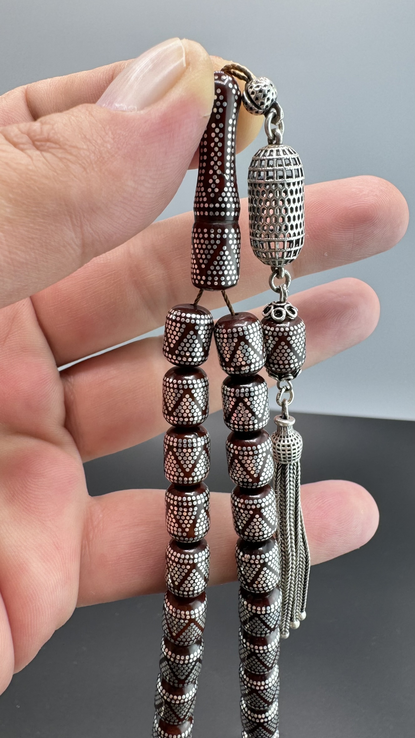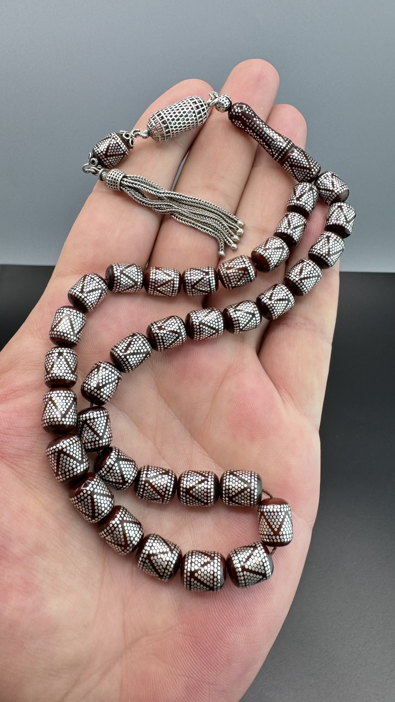 Tesbih MirgeShoes Muhammed Serkan Coşkun Usta İşi Yoğun Gümüş Çakımlı Kuka Tesbih AHTES2179