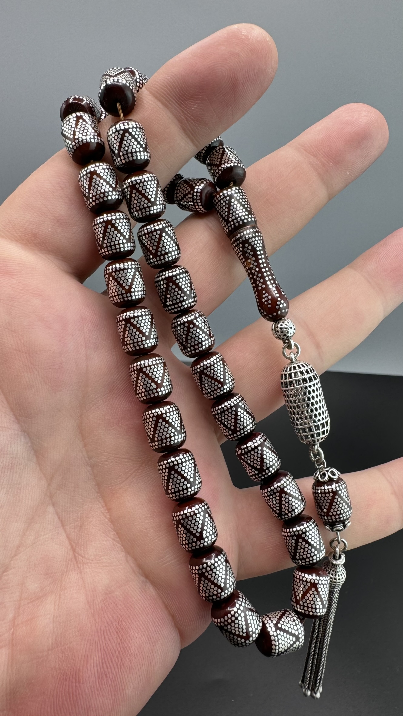 • MirgeShoes Muhammed Serkan Coşkun Usta İşi Yoğun Gümüş Çakımlı Kuka Tesbih AHTES2179