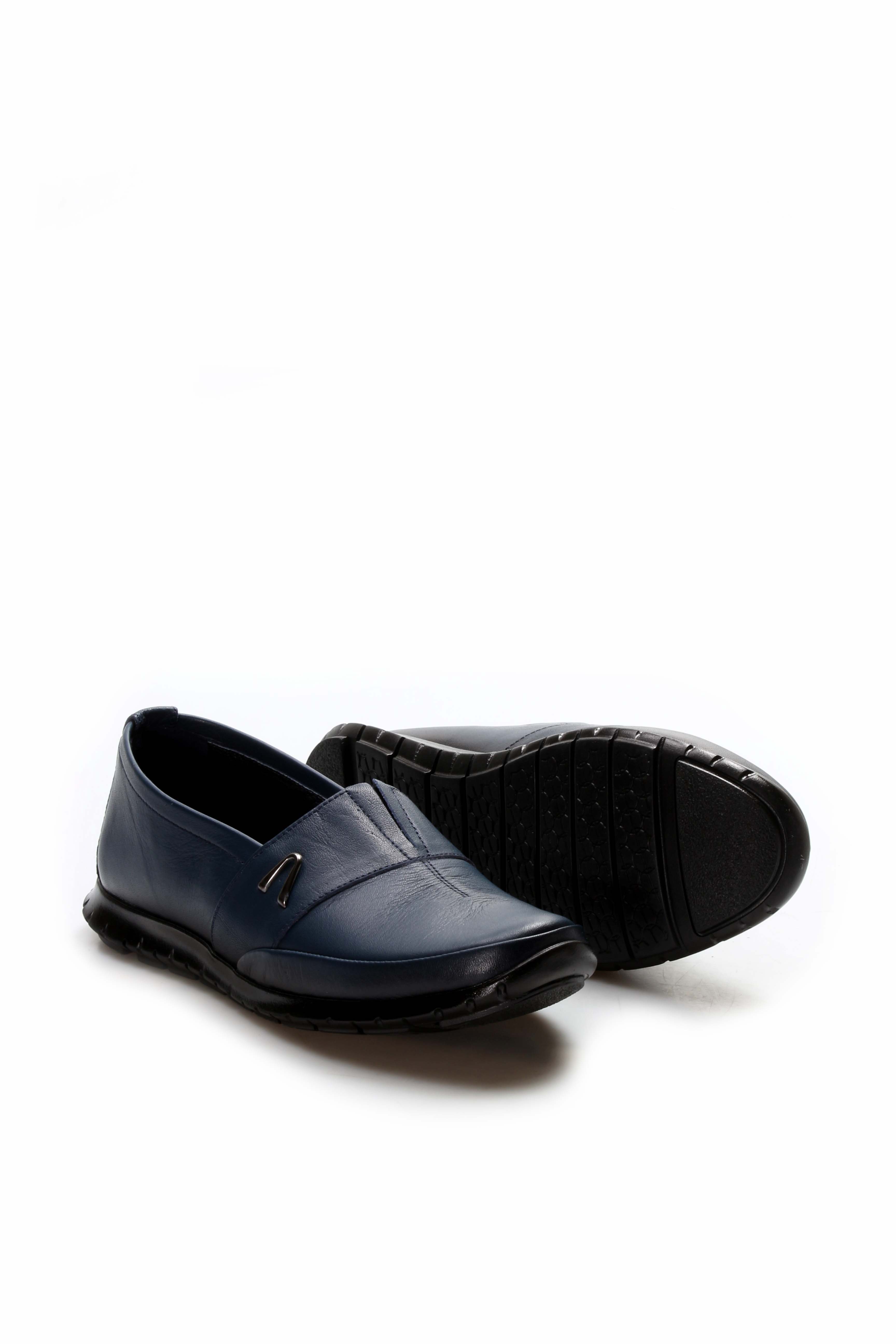 • MirgeShoes Lacivert Bağcıksız Kadın Casual Ayakkabı İçi Dışı Hakiki Deri MRG01994261213