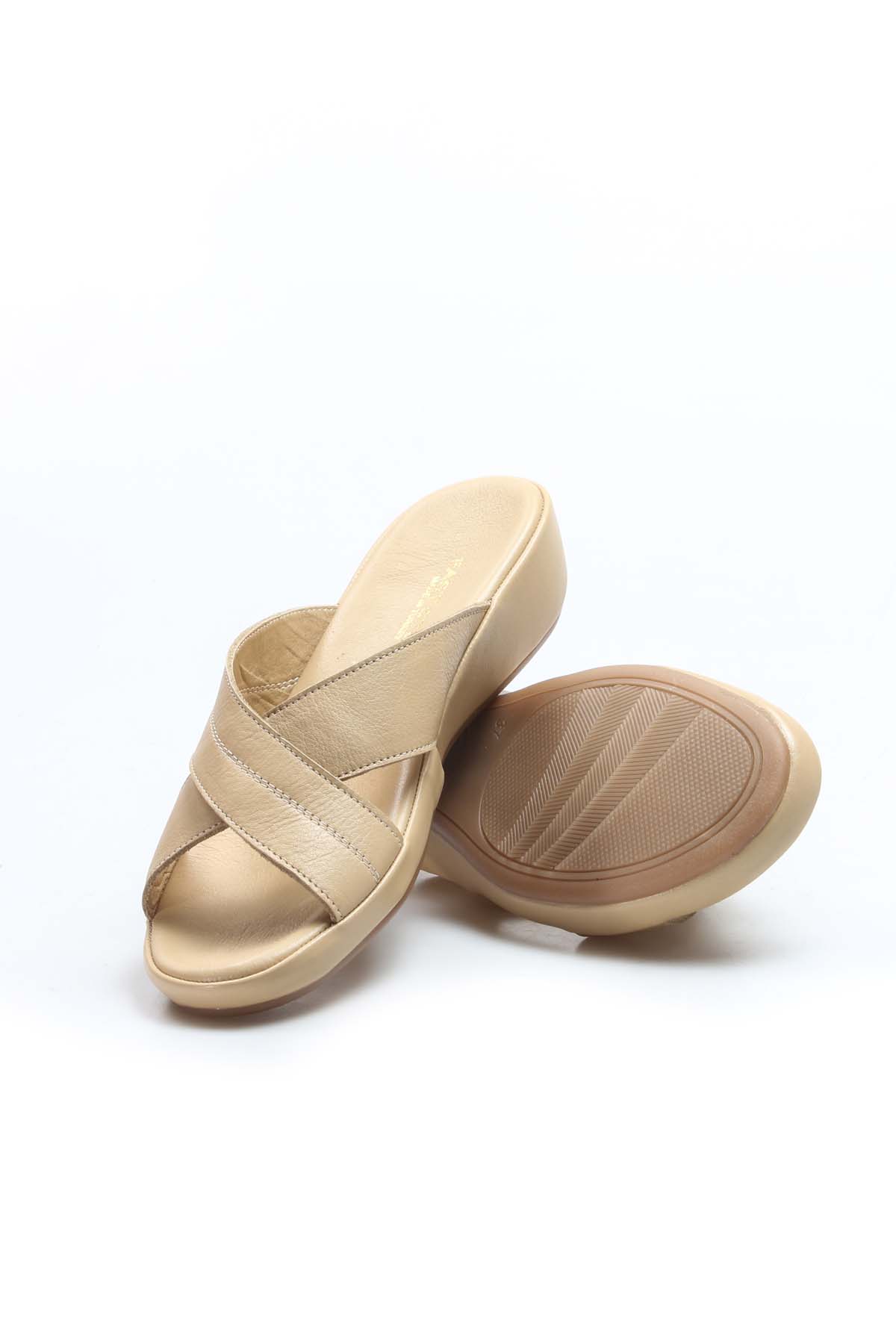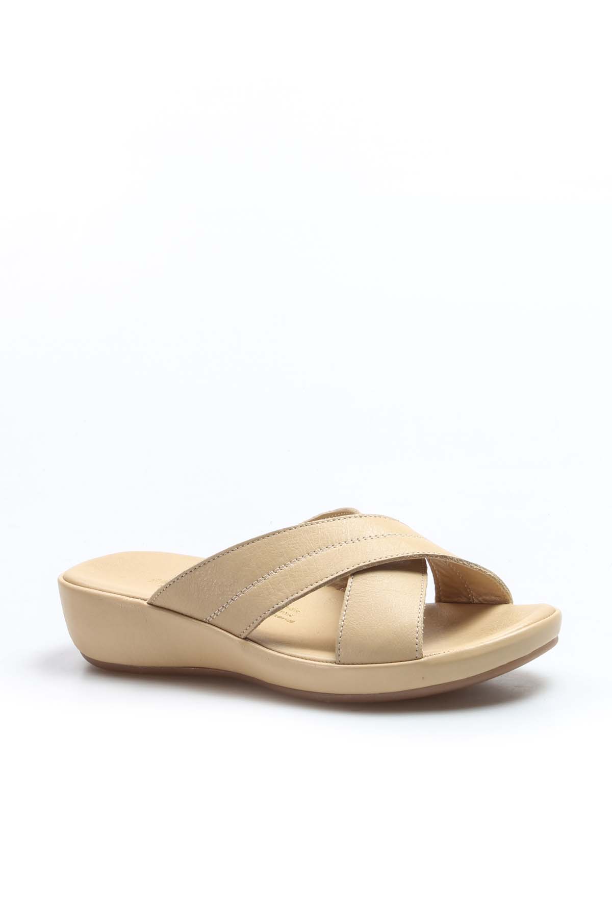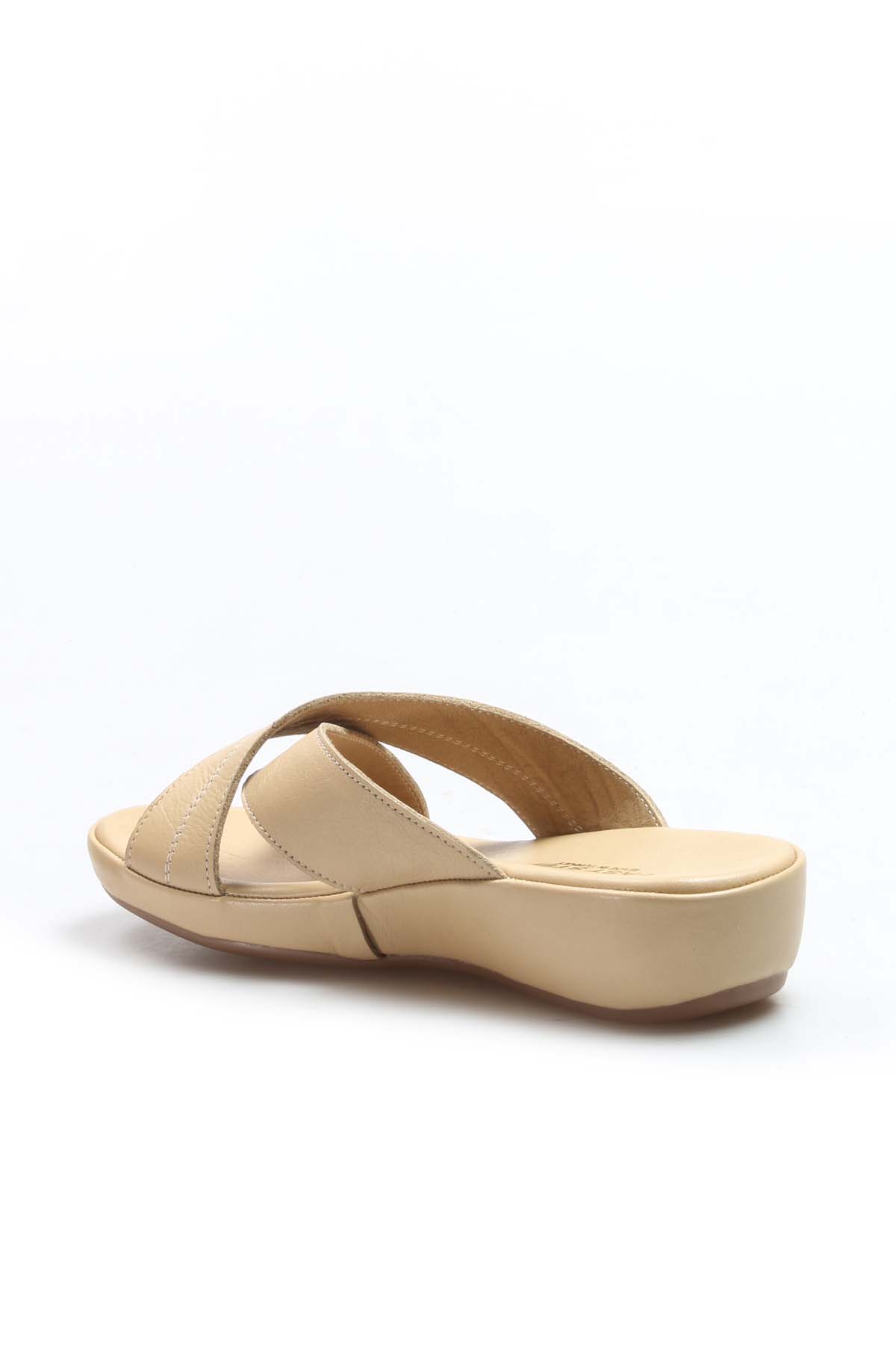 • MirgeShoes Kadın Terlik İçi Dışı Hakiki Deri Bej   MRG019942611915