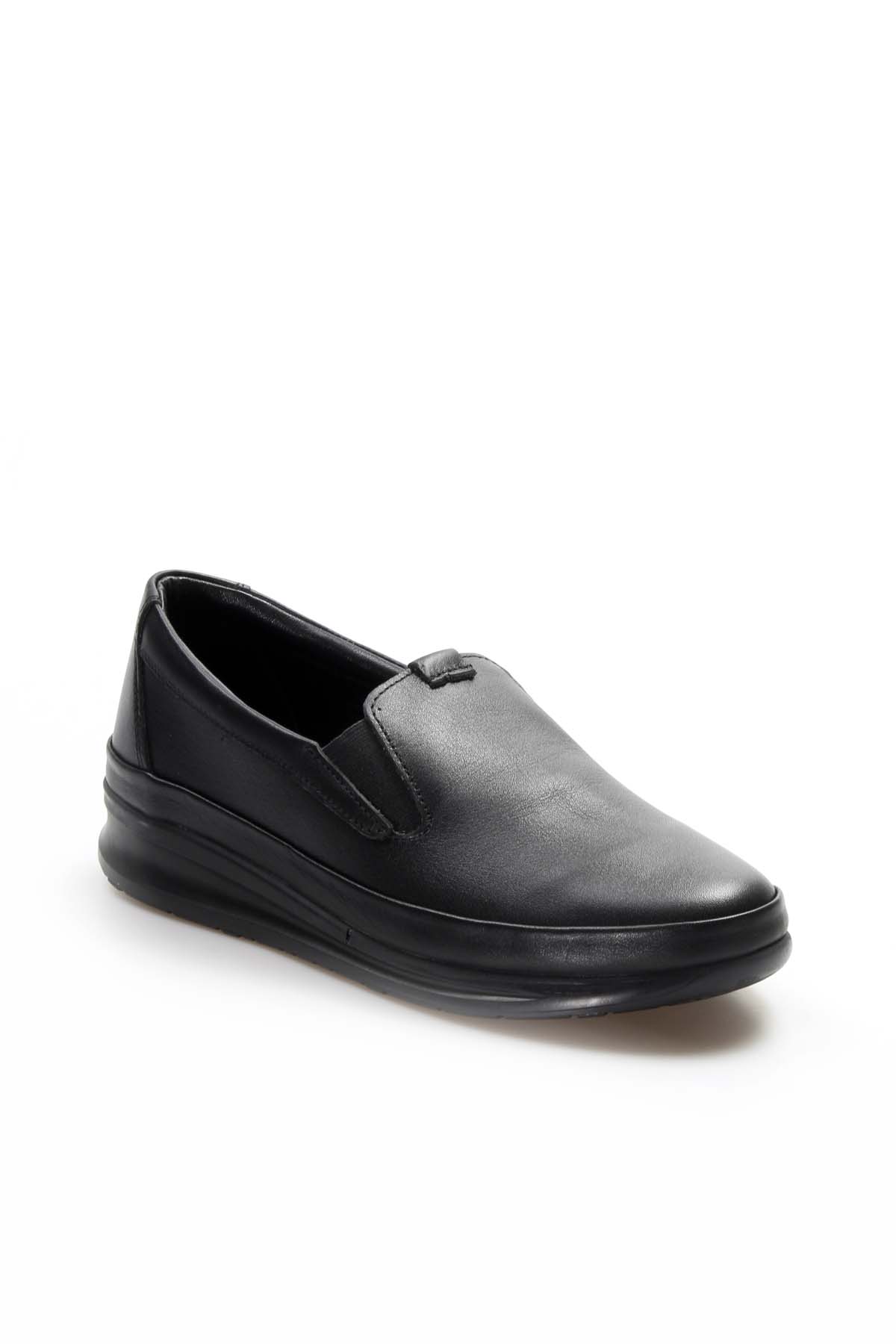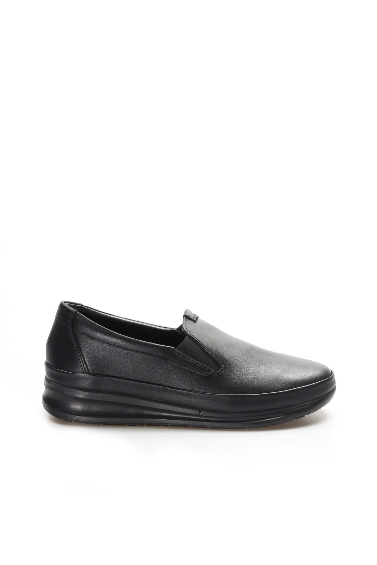 MirgeShoes Siyah Bağcıksız Kadın Casual Ayakkabı İçi Dışı Hakiki Deri MRG019942611313