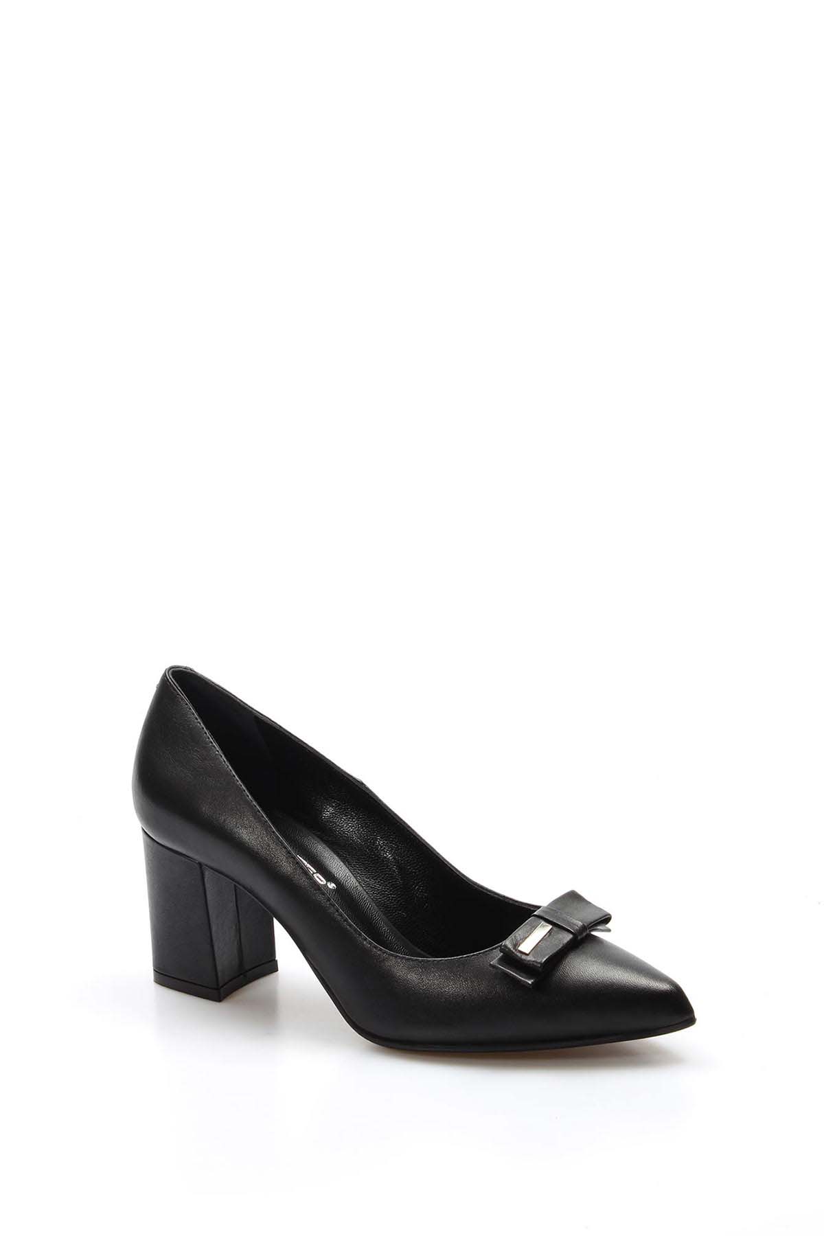 • MirgeShoes Siyah Kadın Klasik Kalın Topuklu Ayakkabı İçi Dışı Hakiki Deri MRG011492618181