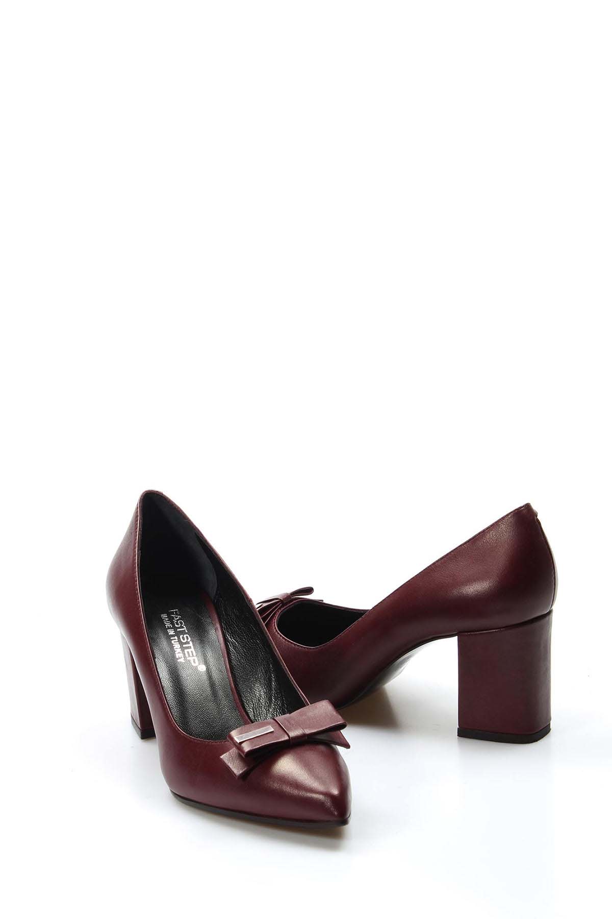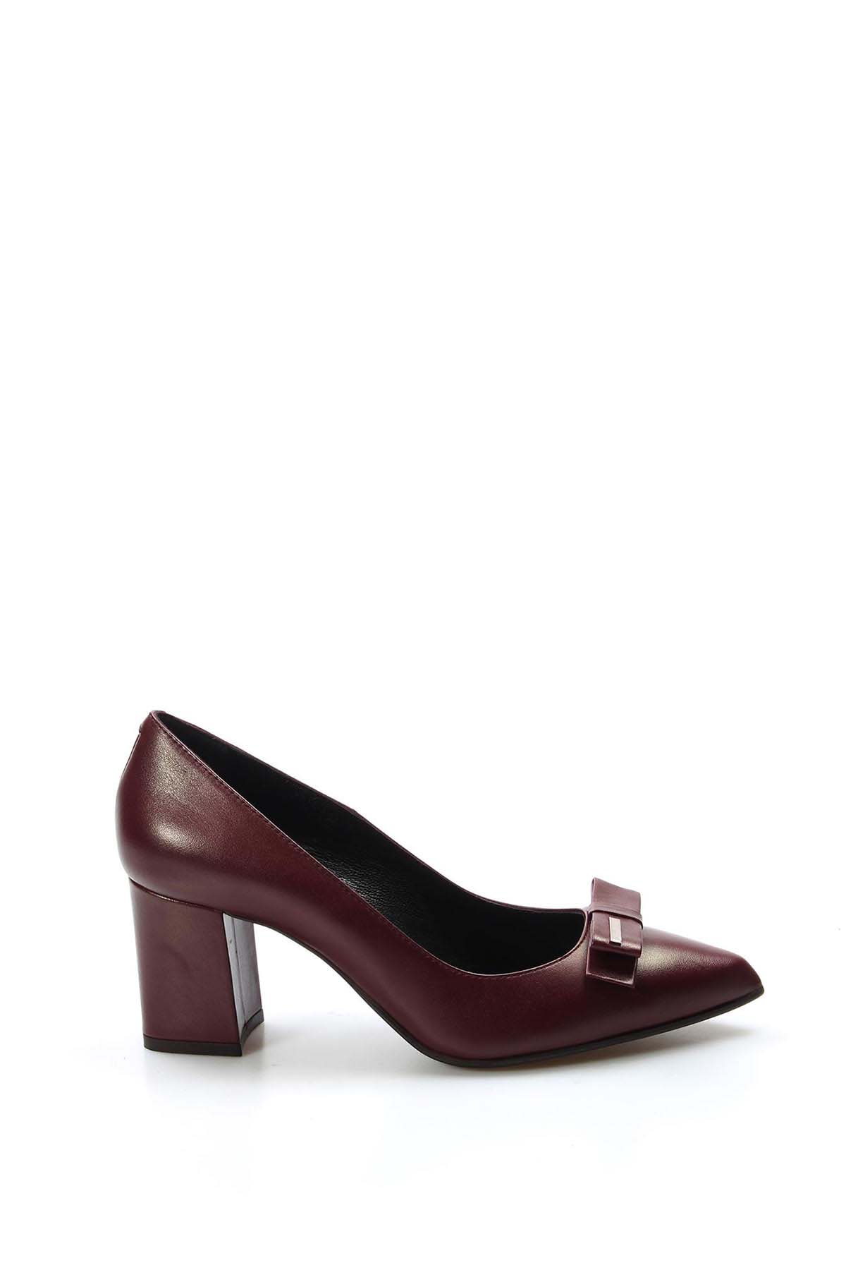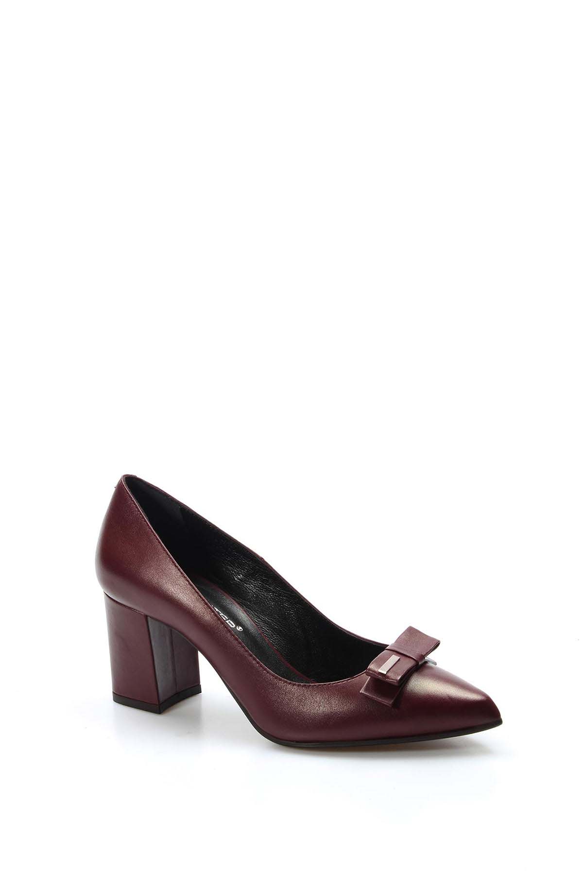 • MirgeShoes Bordo Kadın Klasik Kalın Topuklu Ayakkabı İçi Dışı Hakiki Deri MRG011492618181