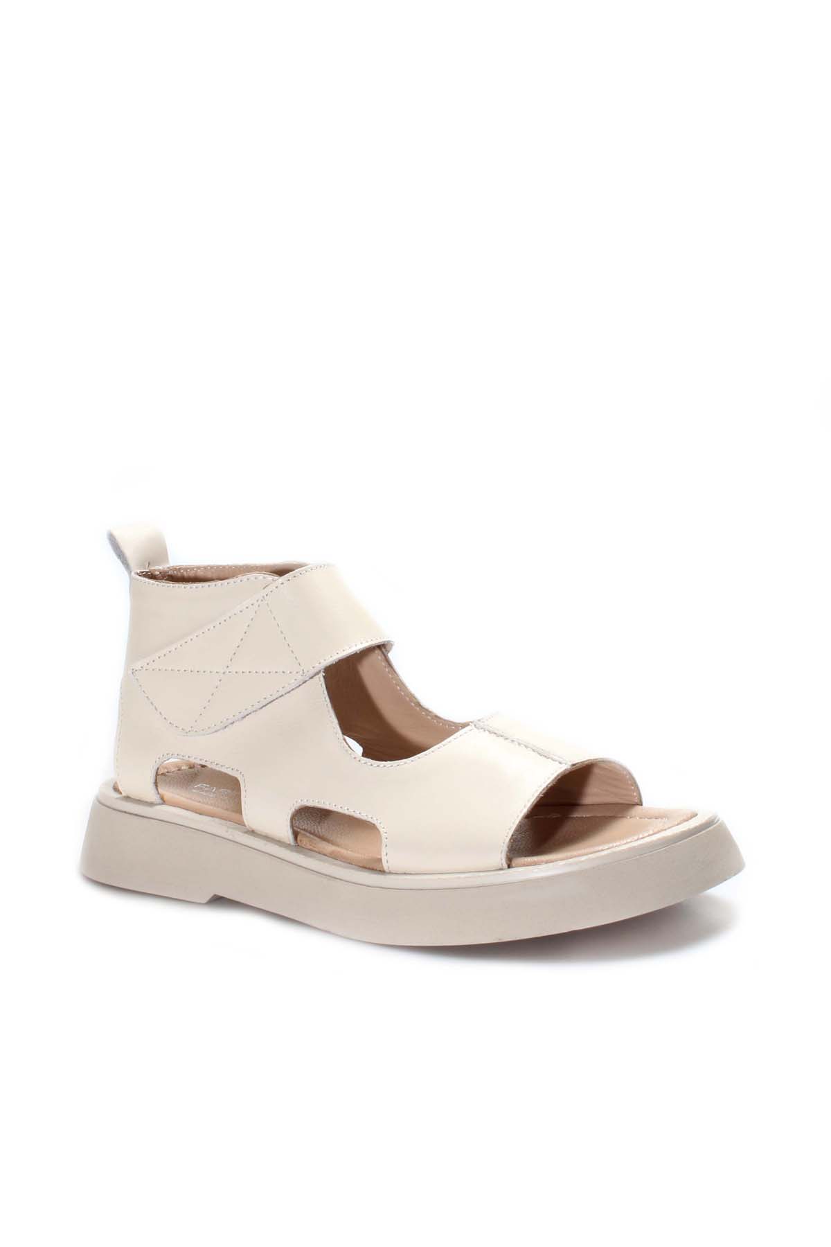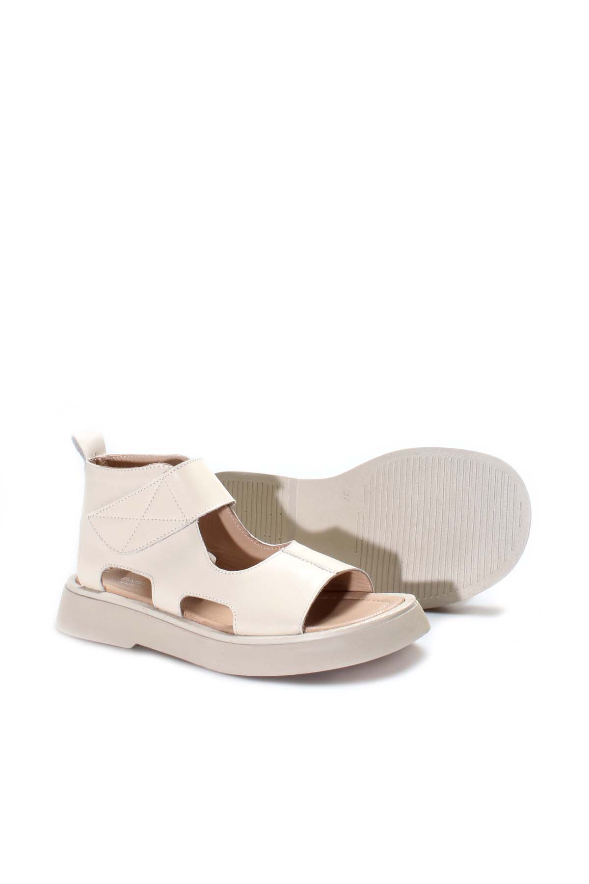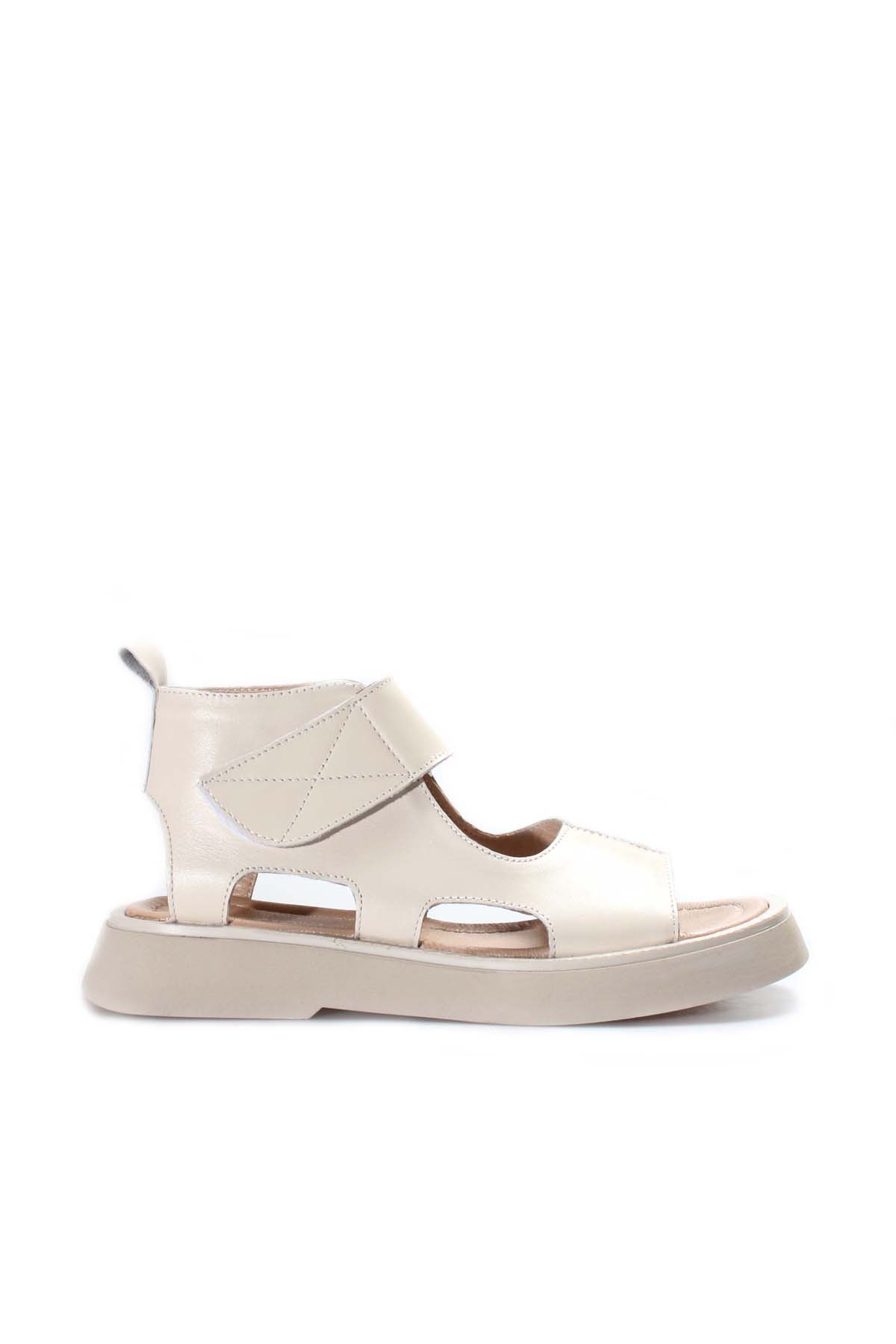 MirgeShoes Kadın Topuklu Sandalet İçi Dışı Hakiki Deri Bej MRG0141126120867