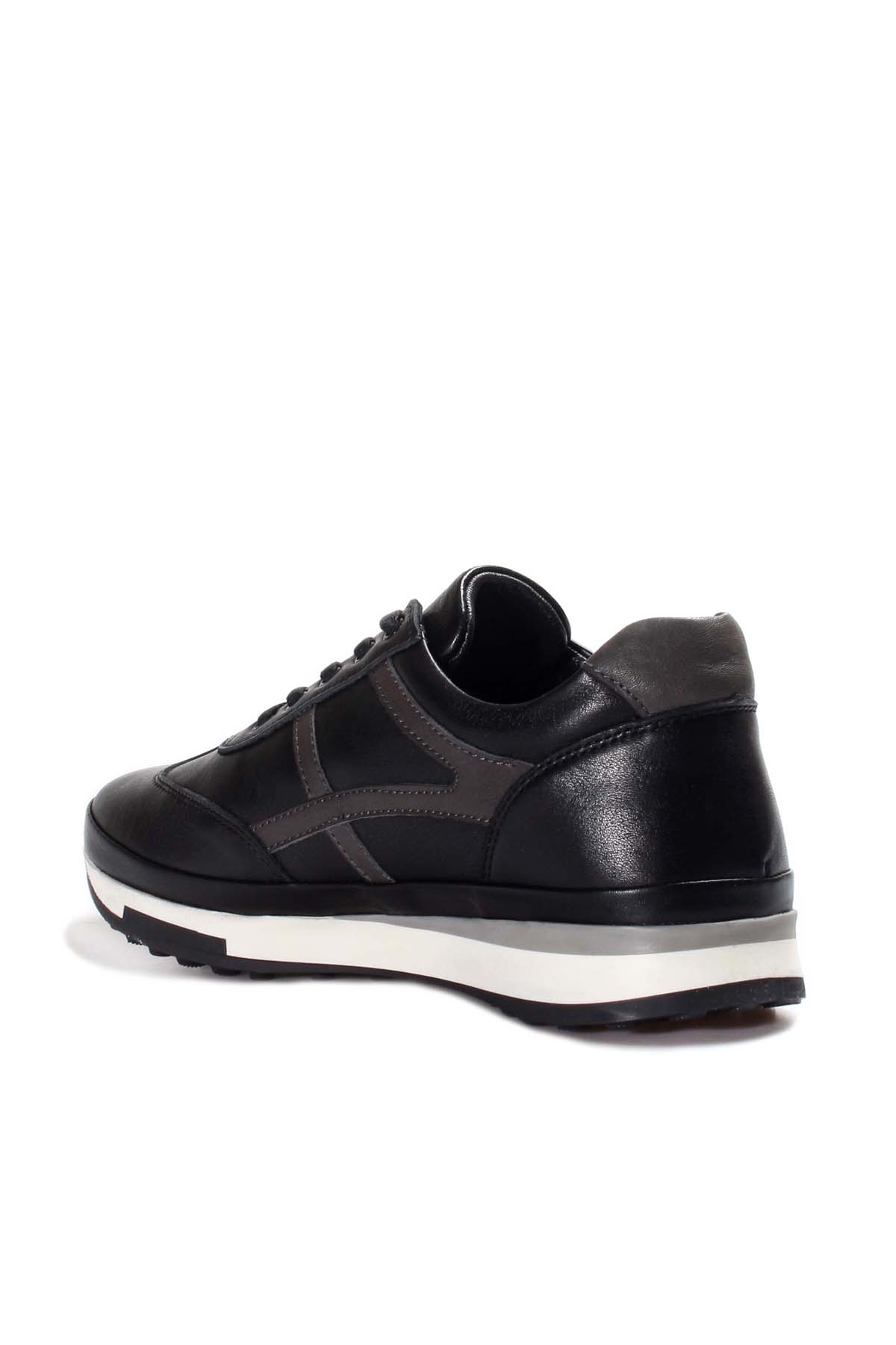 MirgeShoes Gri Bağcıklı Erkek Sneaker Spor Ayakkabı İçi Dışı Hakiki Deri Siyah MRG019851311431
