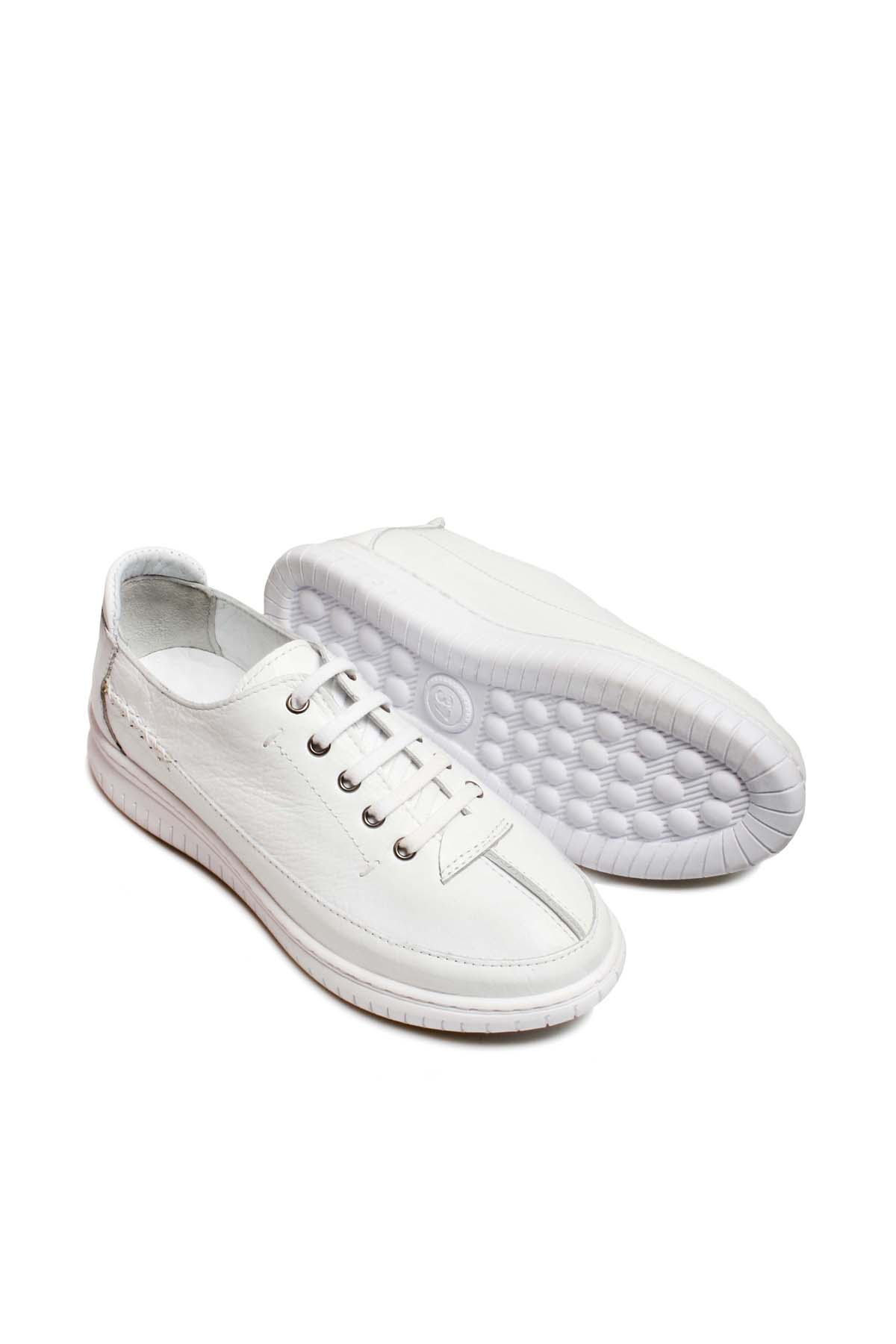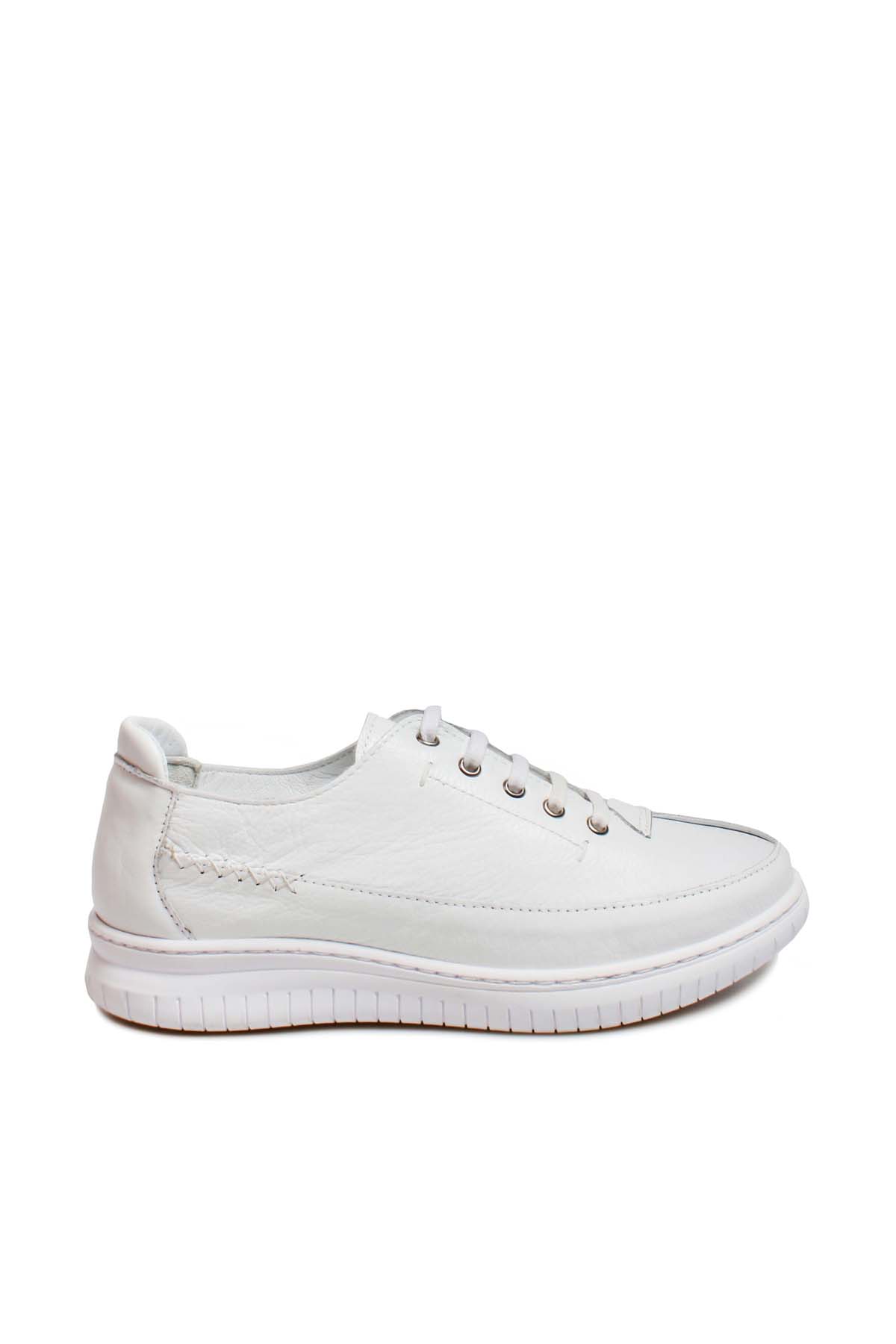 • MirgeShoes Beyaz Bağcıklı Kadın Casual Ayakkabı İçi Dışı Hakiki Deri MRG01713261514