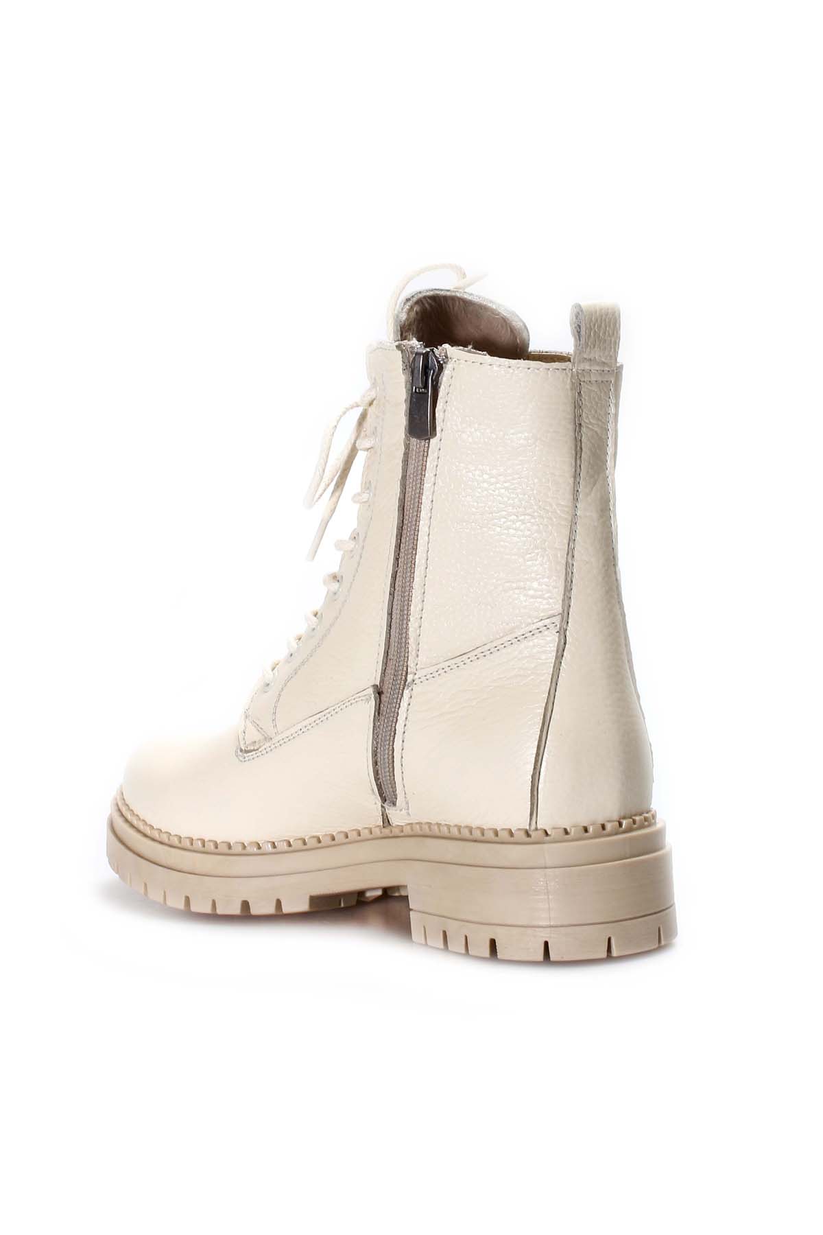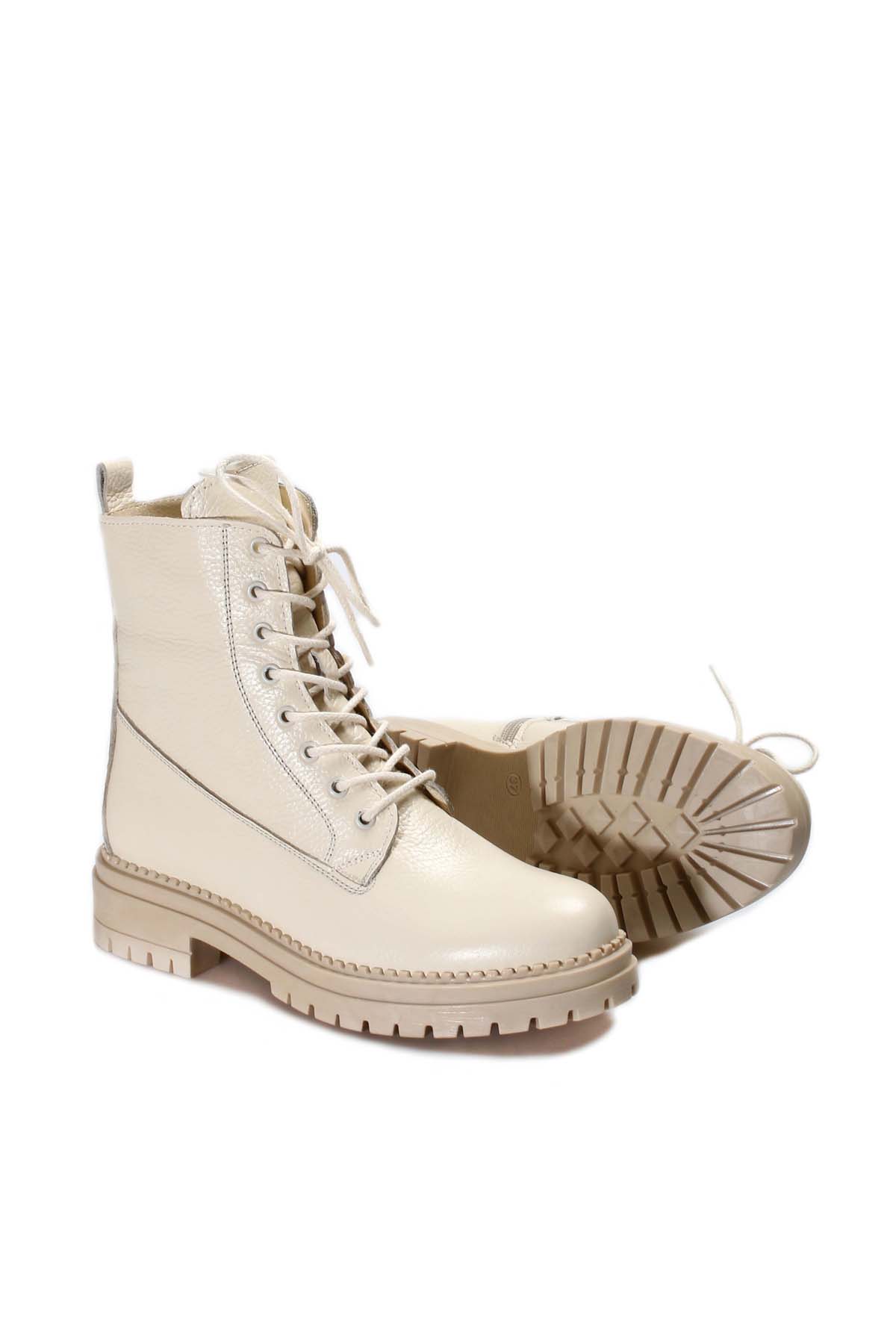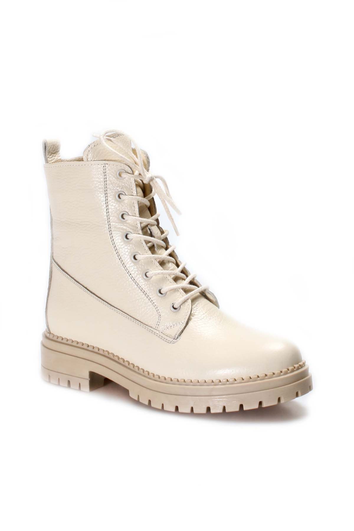 • MirgeShoes Krem Fermuarlı Kadın Klasik Postal Bot Hakiki Deri MRG0127619261548