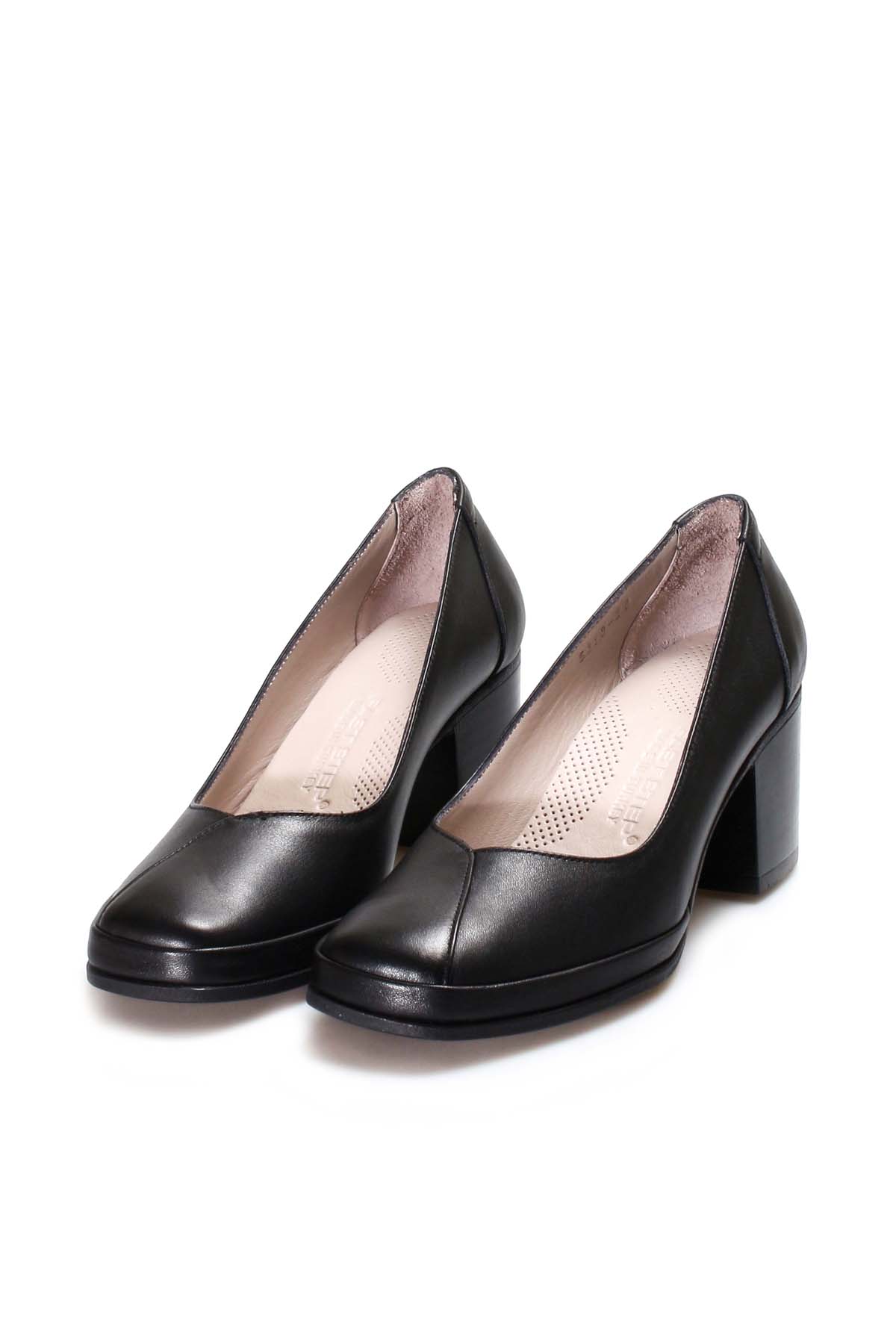 • MirgeShoes Siyah Kadın Kalın Topuklu Klasik Ayakkabı İçi Dışı Hakiki Deri MRG0110192615425