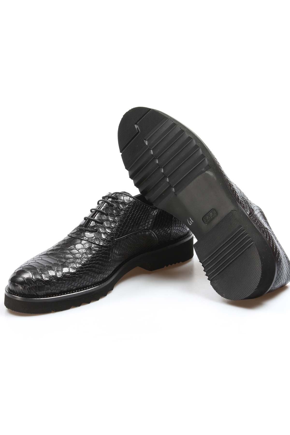 MirgeShoes Siyah Bağcıklı Erkek Klasik Ayakkabı Yılan Baskılı İçi Dışı Hakiki Deri MRG013821316553