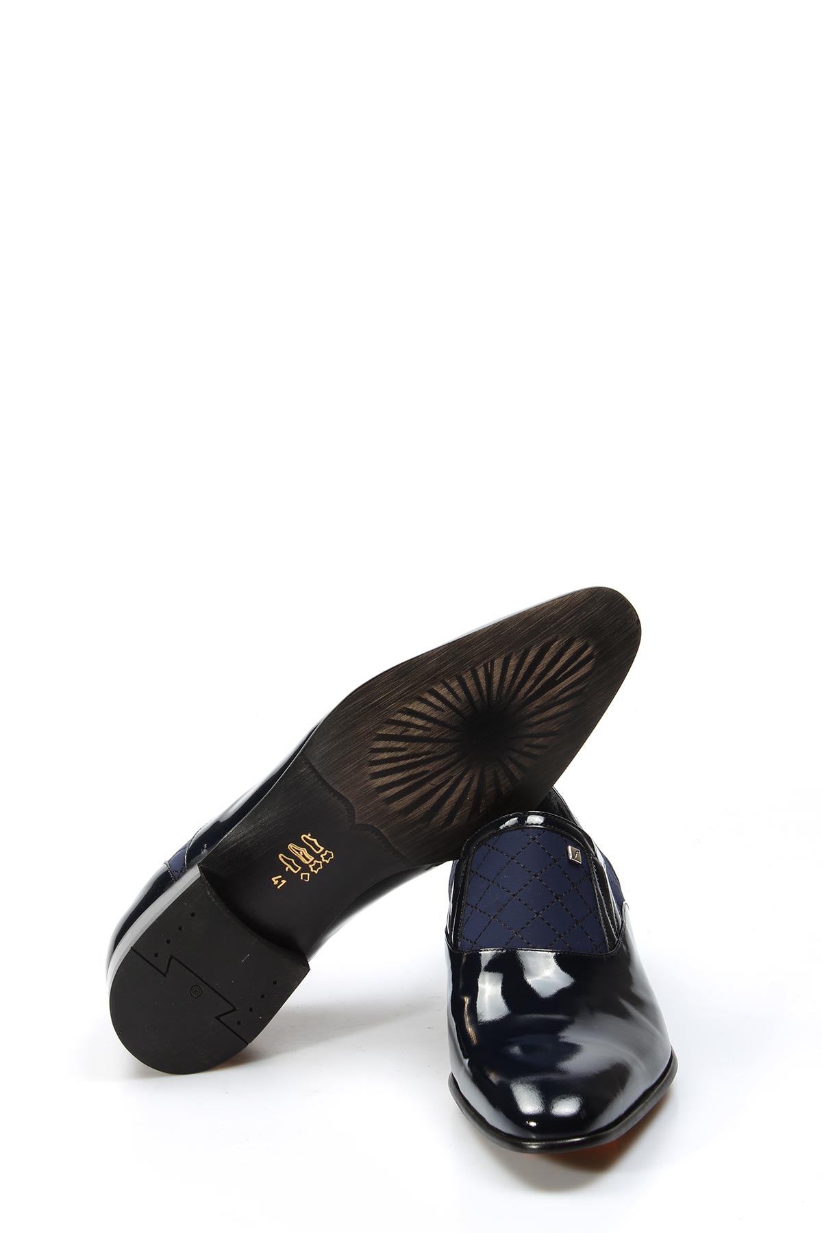 MirgeShoes Lacivert Bağcıksız Erkek Klasik Rugan Ayakkabı İçi Dışı Hakiki Deri MRG014081314722