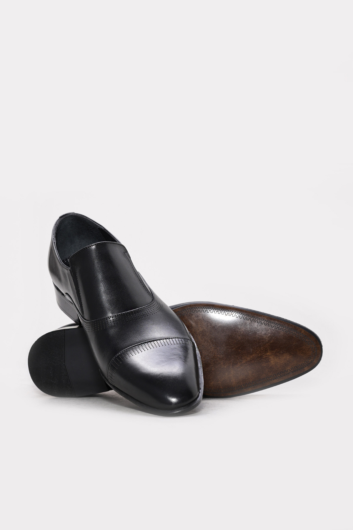 • MirgeShoes Siyah Bağcıksız Erkek Klasik Ayakkabı İçi Dışı Hakiki Deri MRG018711312229-a0