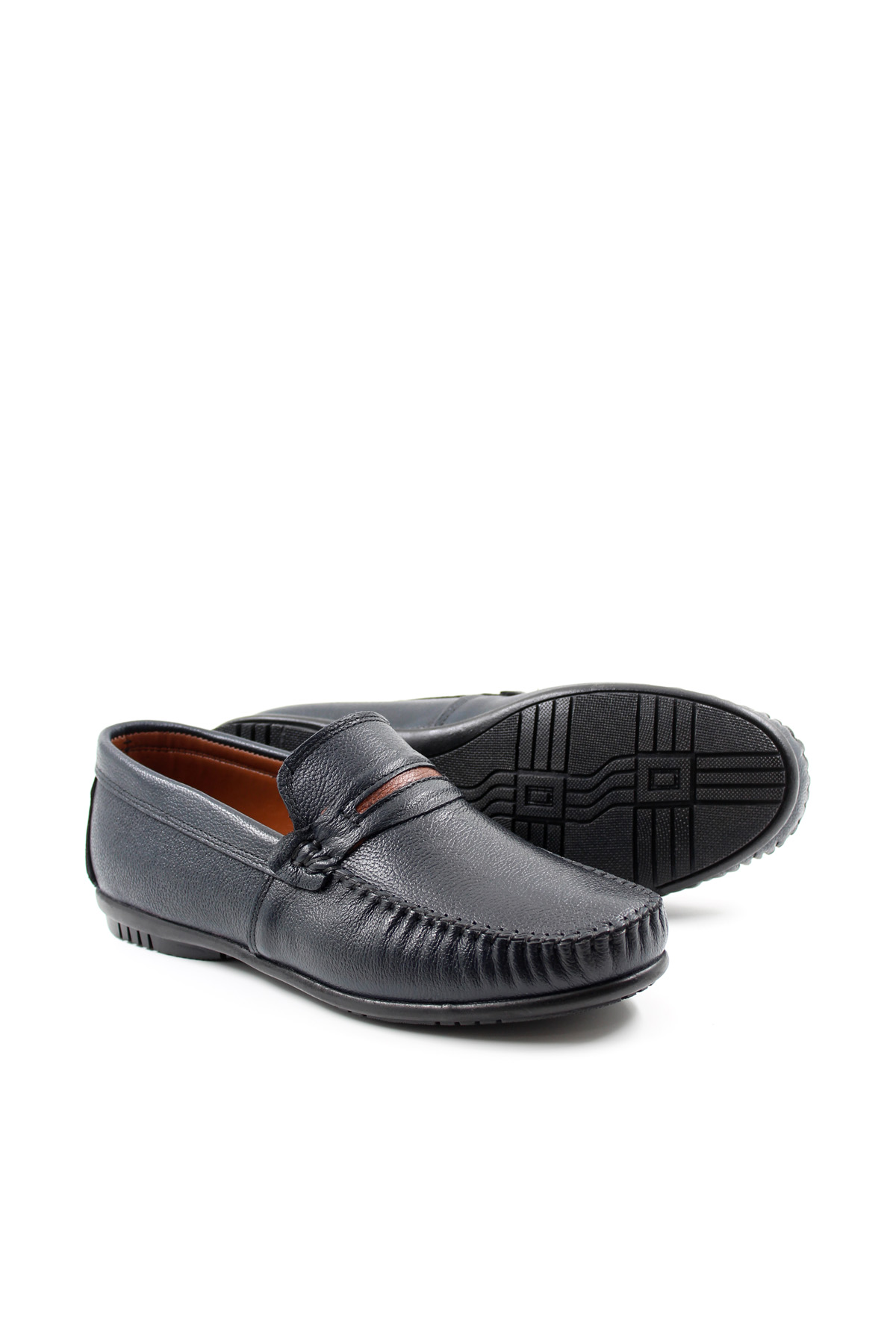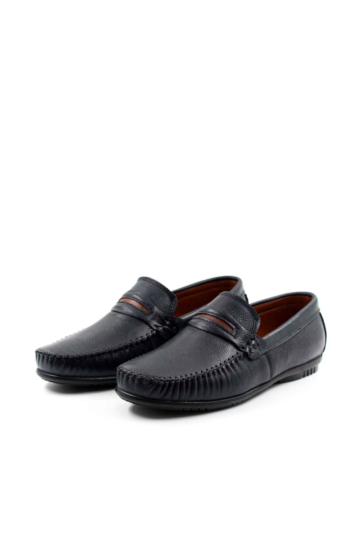 •  MirgeShoes Lacivert Bağcıksız Erkek Loafer Ayakkabı İçi Dışı Hakiki Deri MRG01715131420