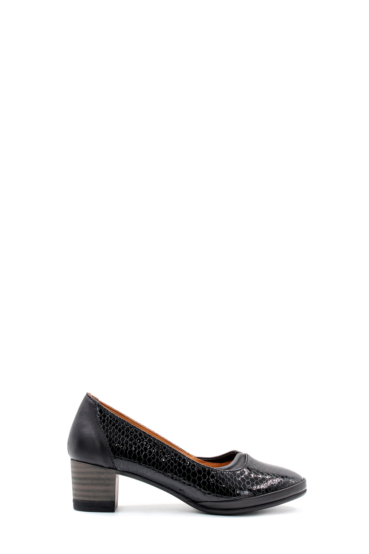MirgeShoes Siyah Kadın Topuklu Ayakkabı İçi Dışı Hakiki Kroko Deri MRG01541261494