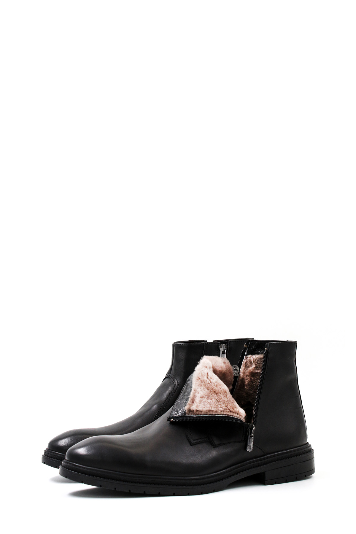 MirgeShoes Siyah Fermuarlı Erkek Klasik Bot Kaymaz Taban Hakiki Deri İçi Kürklü MRG0184111131435