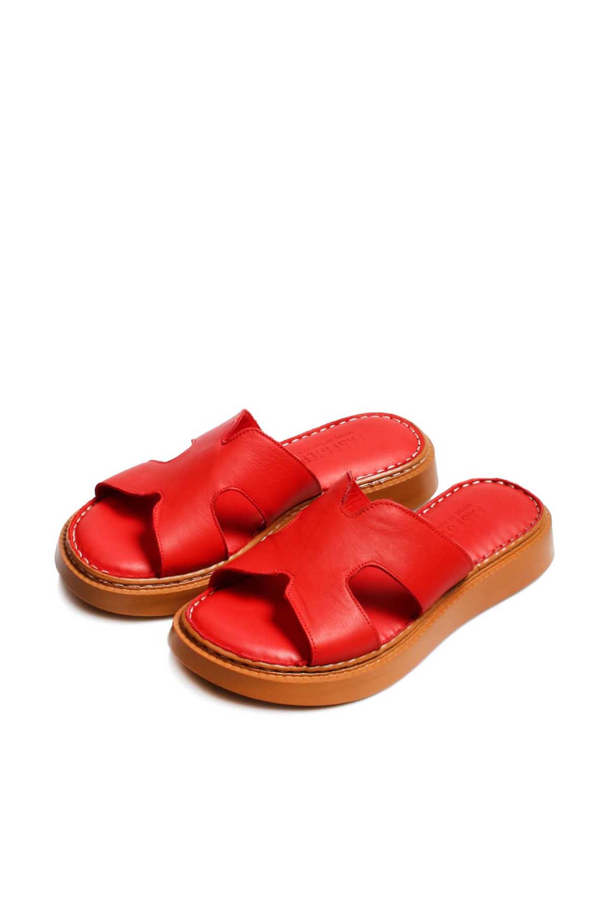 • MirgeShoes Kadın Terlik İçi Dışı Hakiki Deri Kırmızı  MRG017512611075