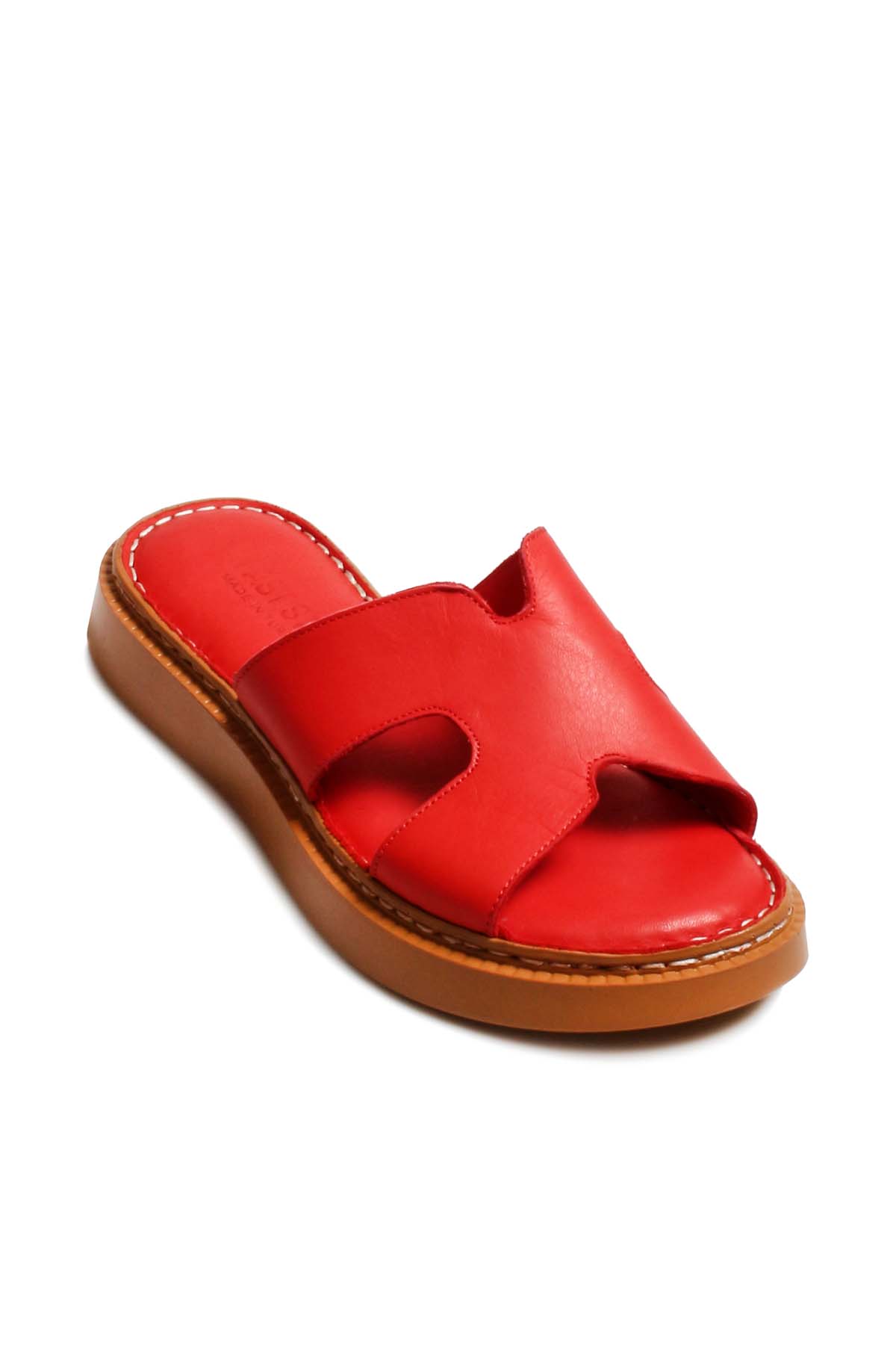 MirgeShoes Kadın Terlik İçi Dışı Hakiki Deri Kırmızı MRG017512611075