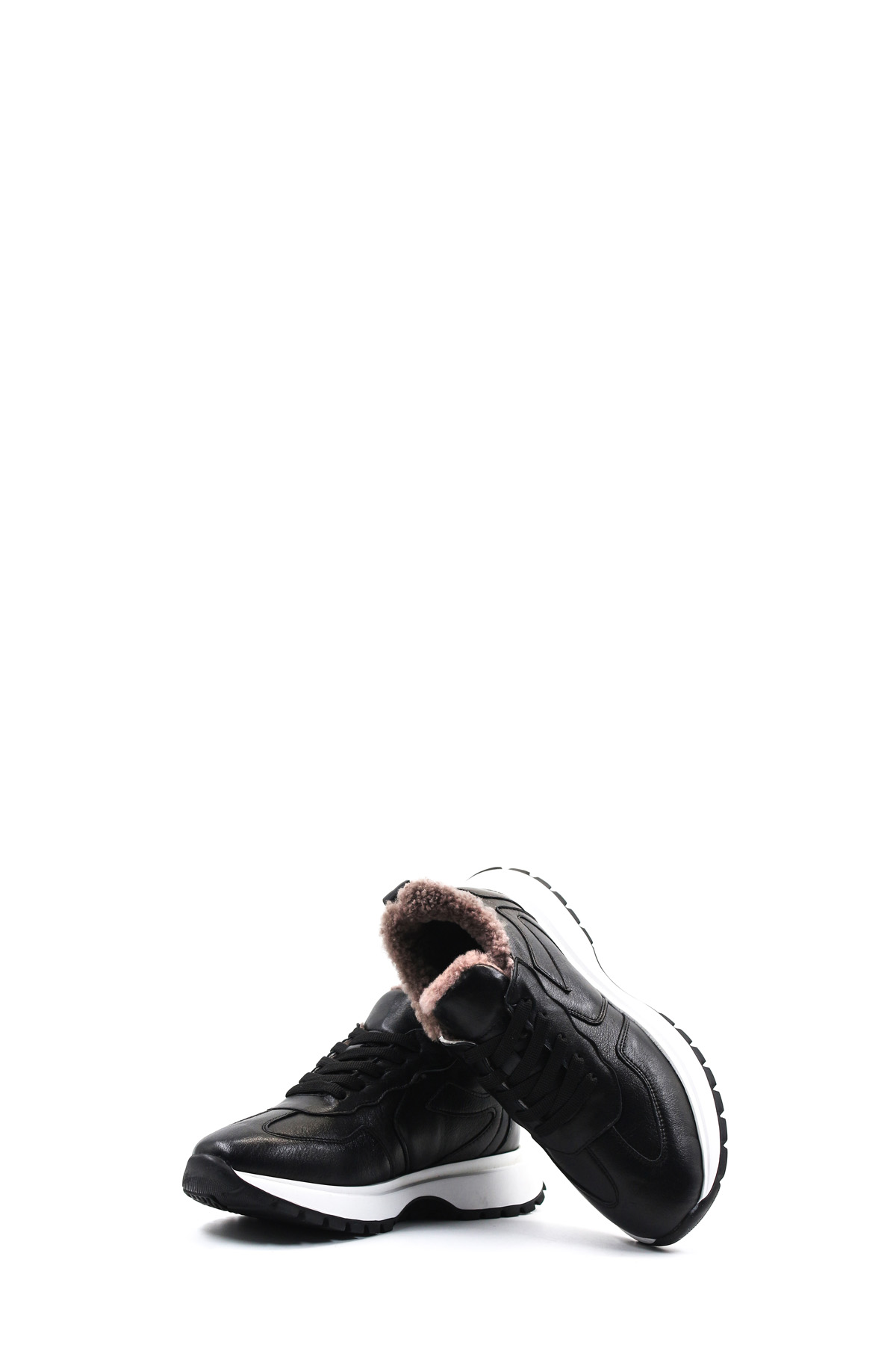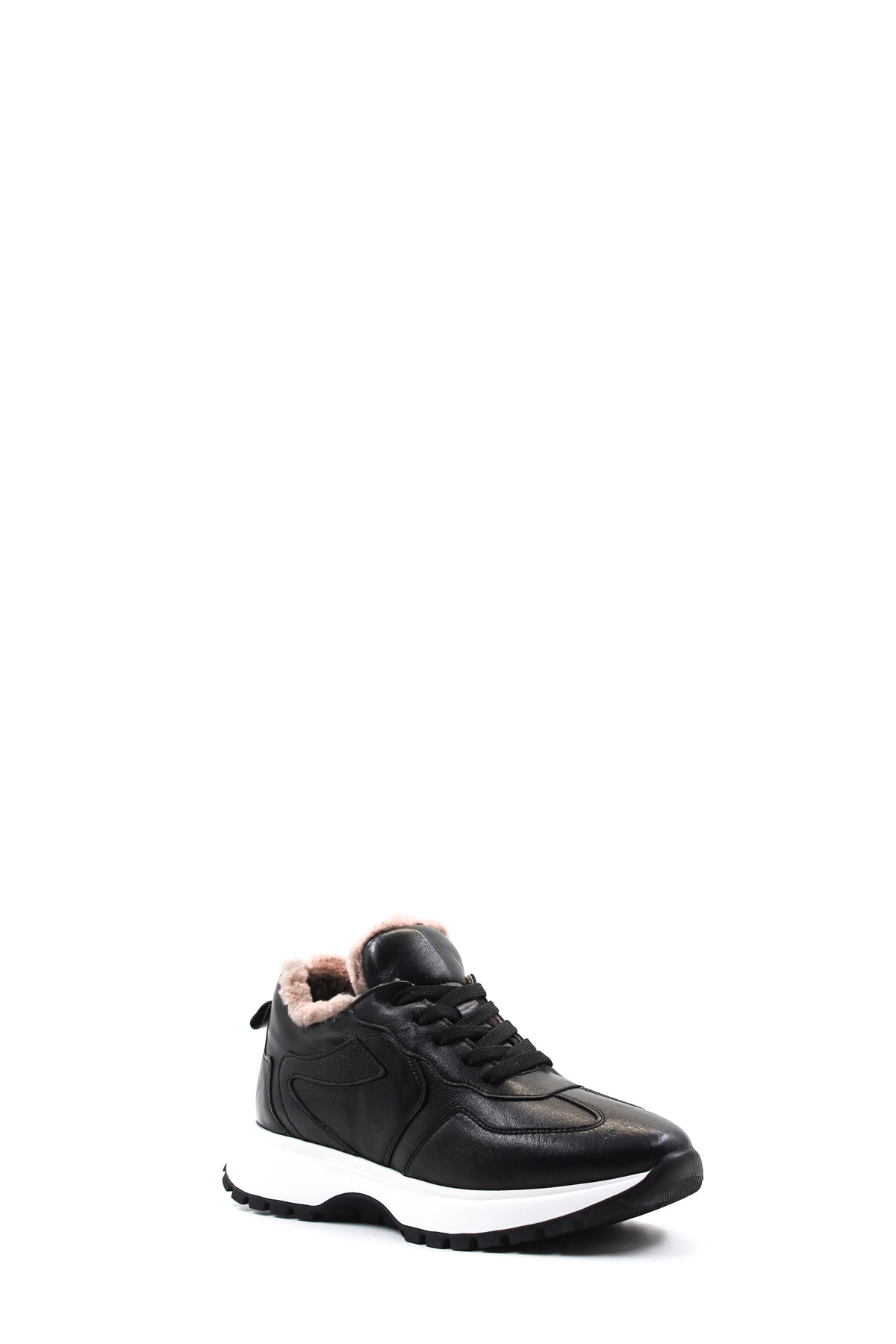 • MirgeShoes Siyah Bağcıklı Kadın Casual Ayakkabı İçi Kürklü Dışı Hakiki Deri MRG01266112615239