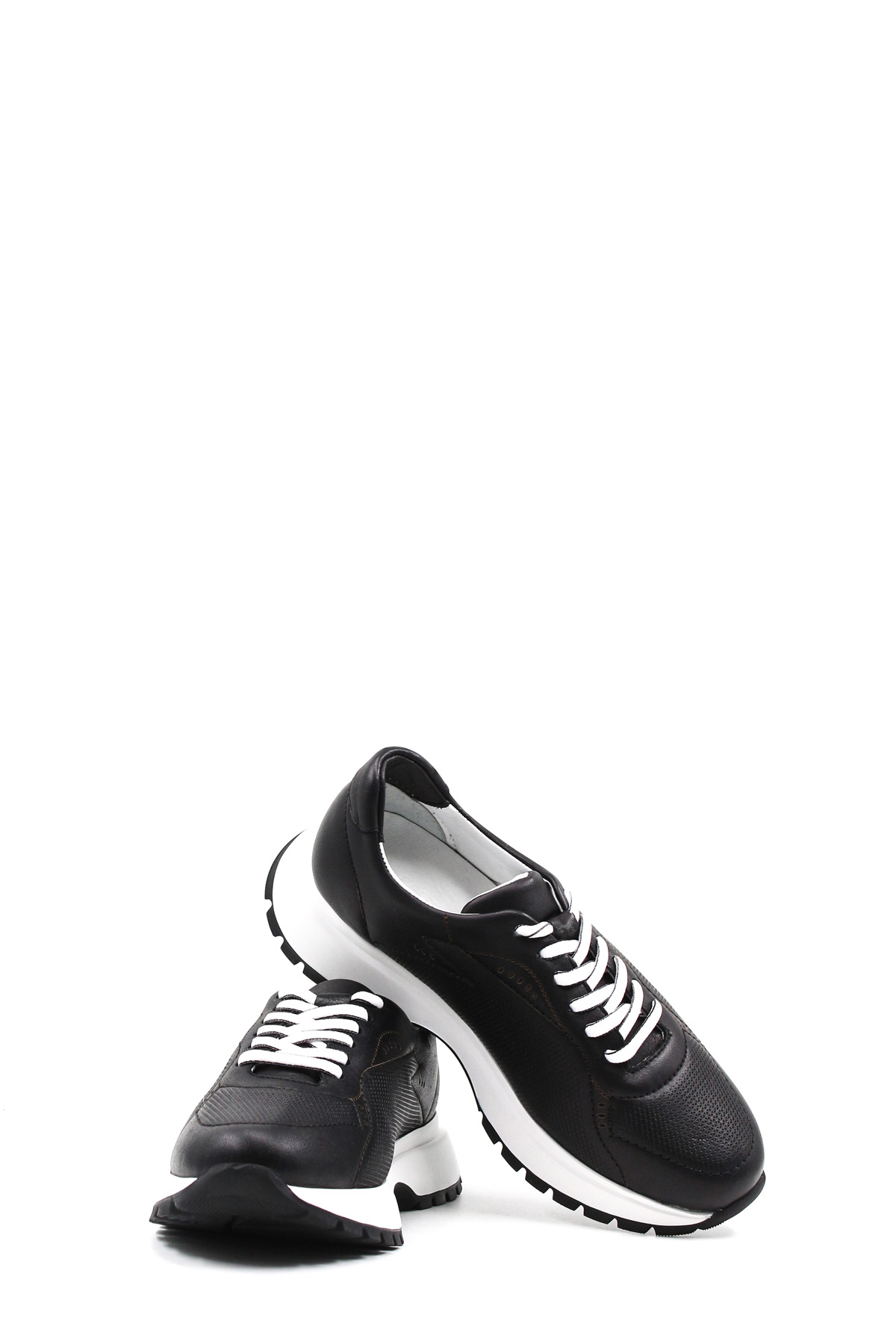 • MirgeShoes Siyah Bağcıklı Kadın Casual Ayakkabı İçi Dışı Hakiki Deri MRG012682611297