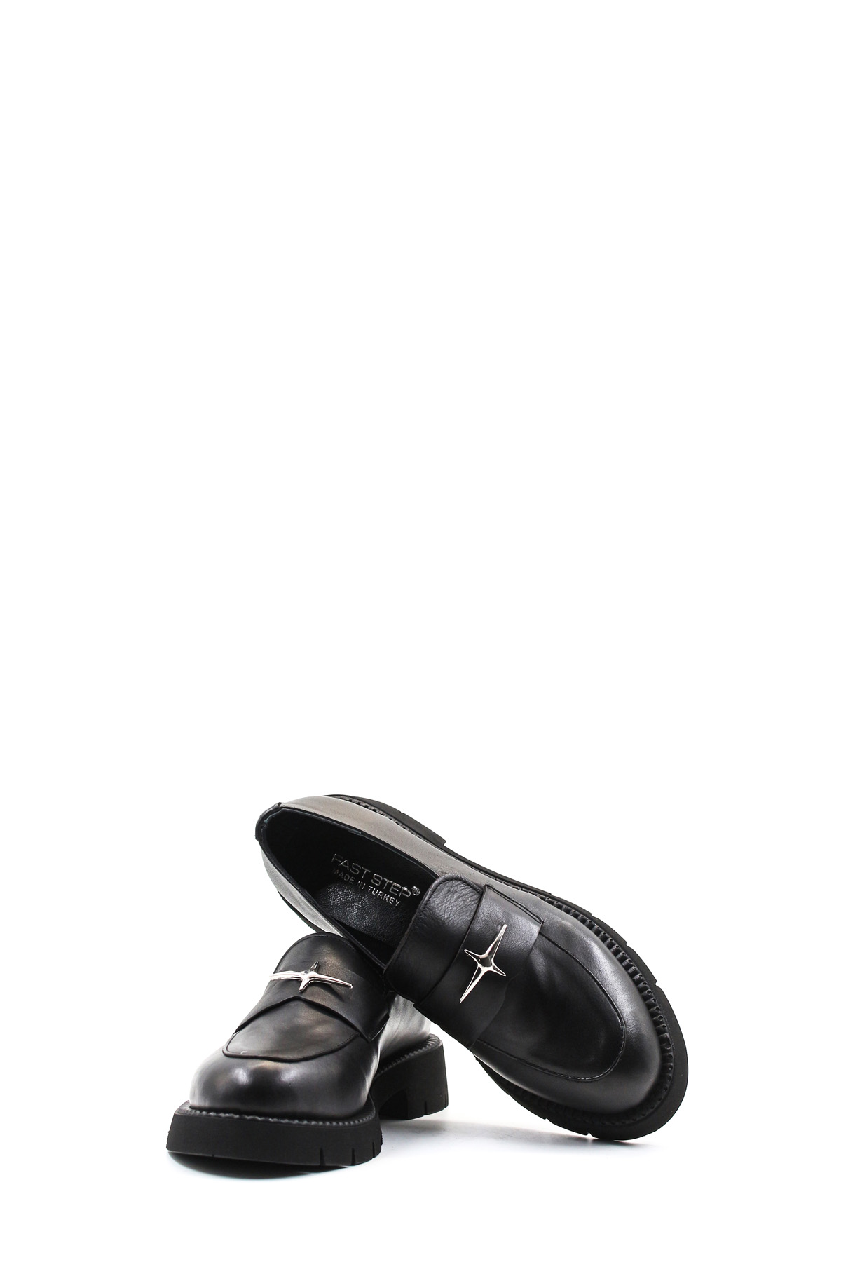 • MirgeShoes Siyah Bağcıksız Kadın Casual Ayakkabı İçi Dışı Hakiki Deri MRG011018261817