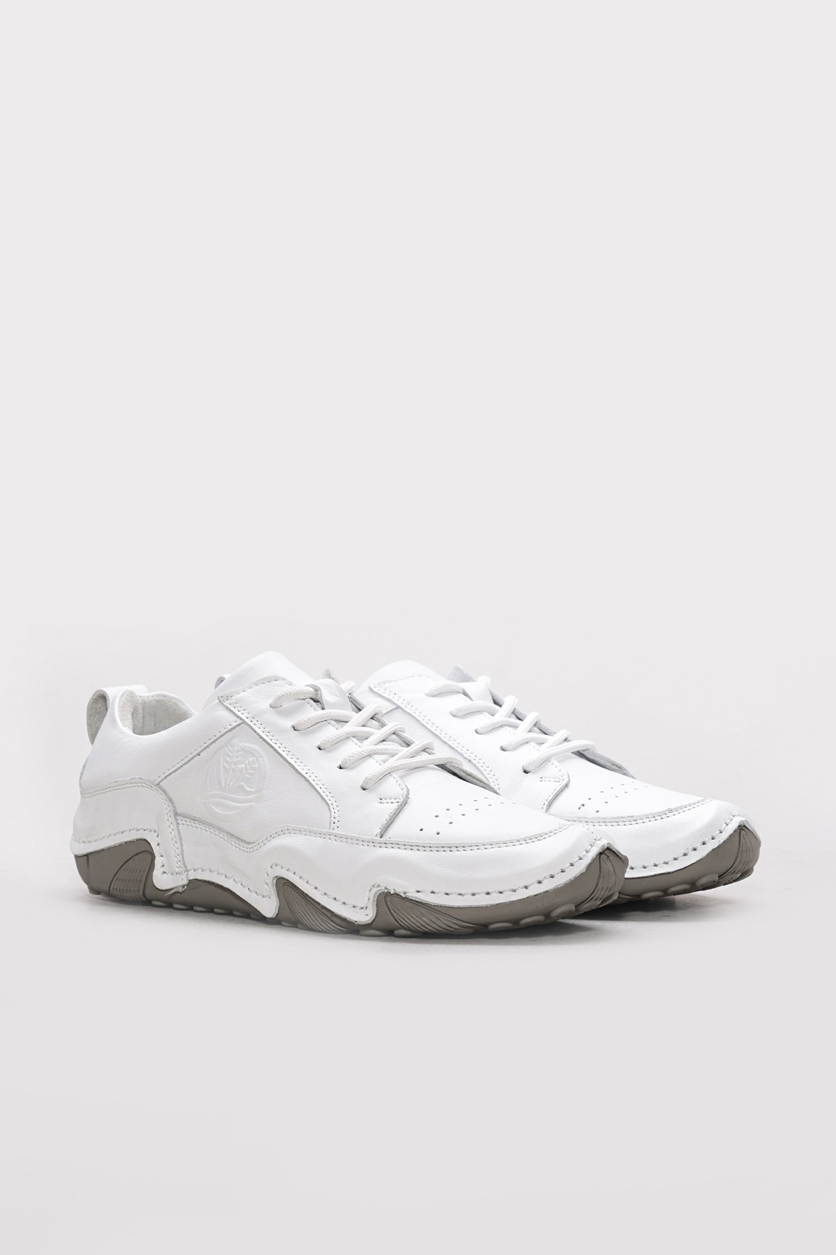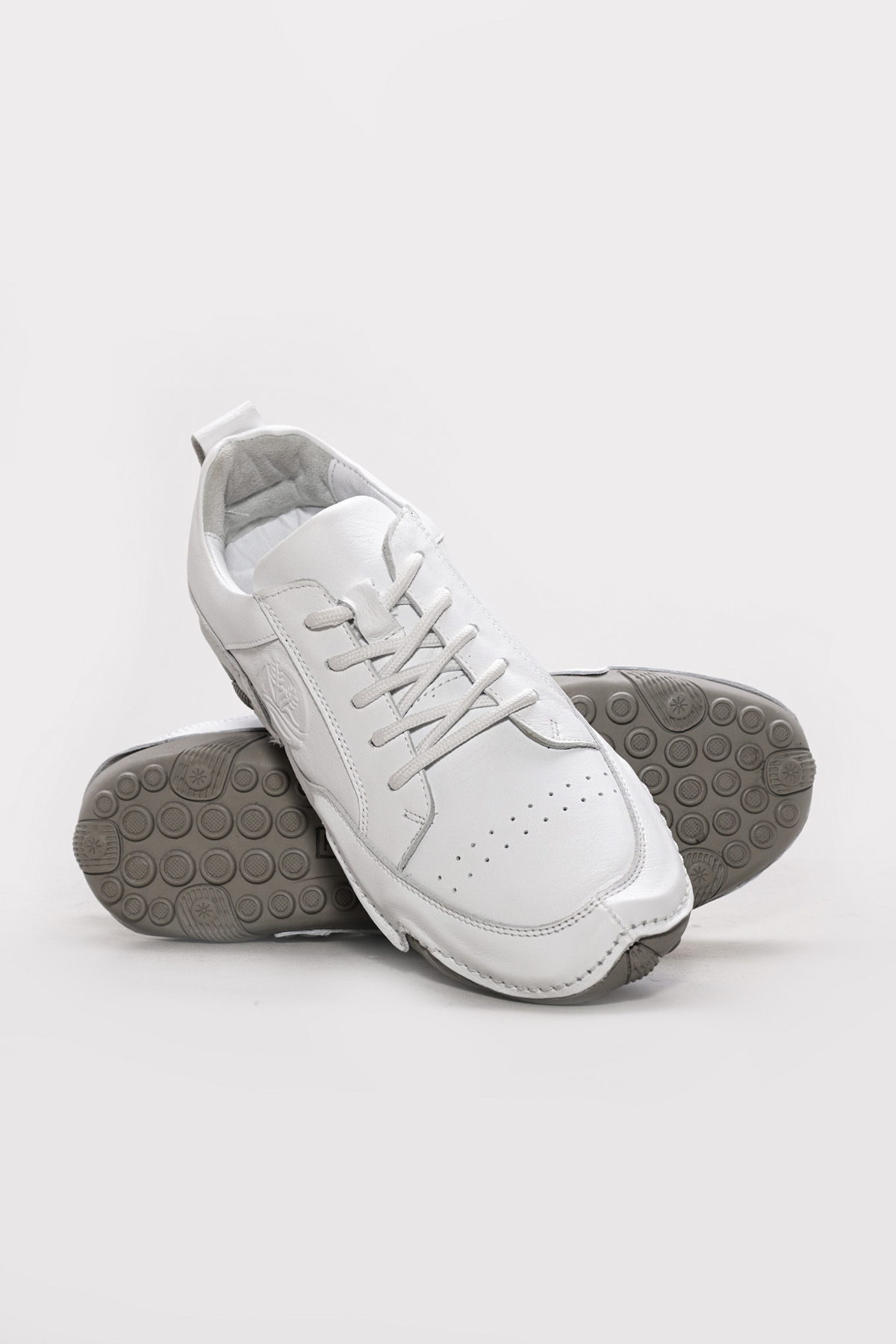 MirgeShoes Beyaz Bağcıklı Erkek Spor Sneaker Ayakkabı İçi Dışı Hakiki Deri MRG0125713132736