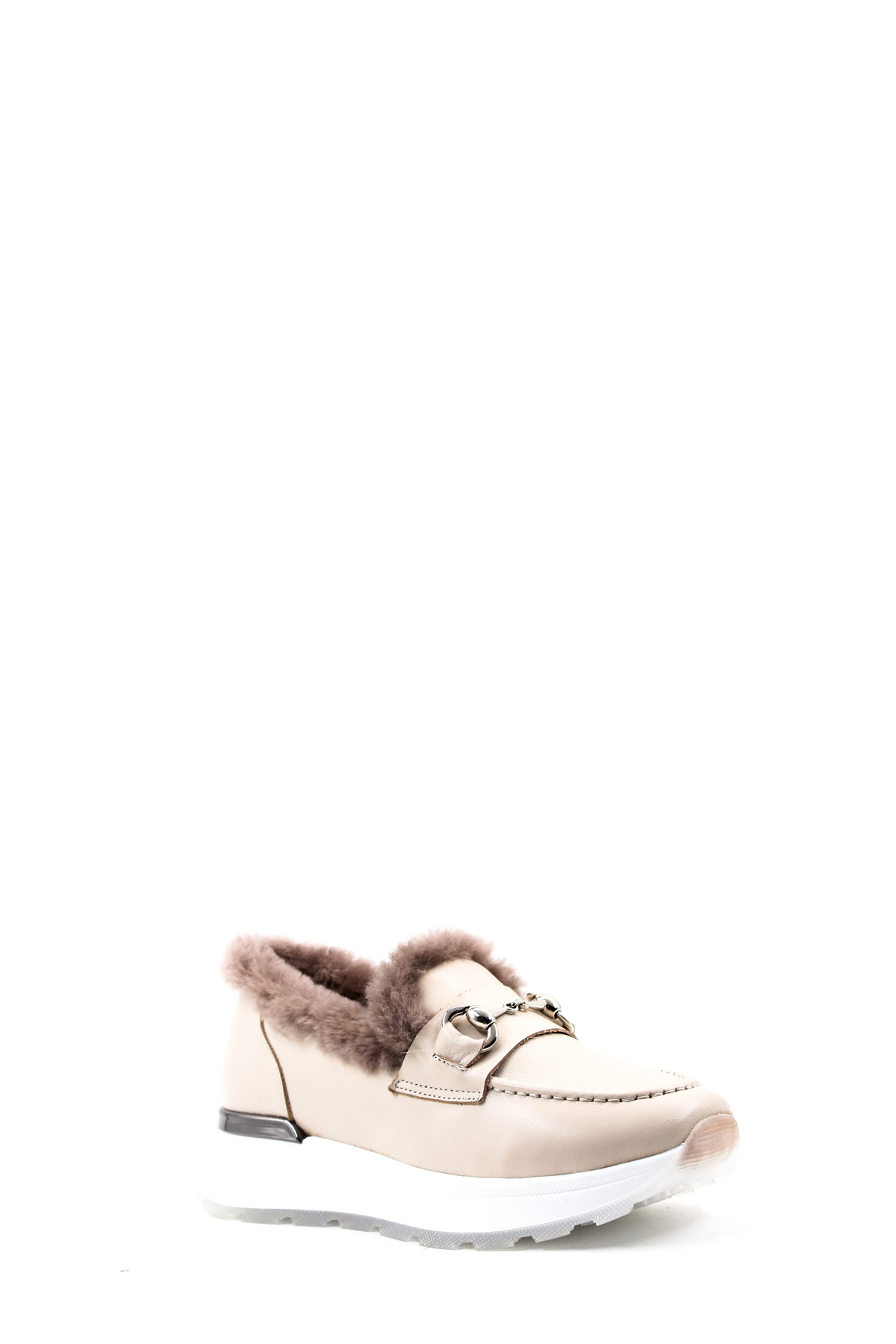 MirgeShoes Bej Bağcıksız Kadın Casual Ayakkabı İçi Kürklü Dışı Hakiki Deri MRG018871126124718