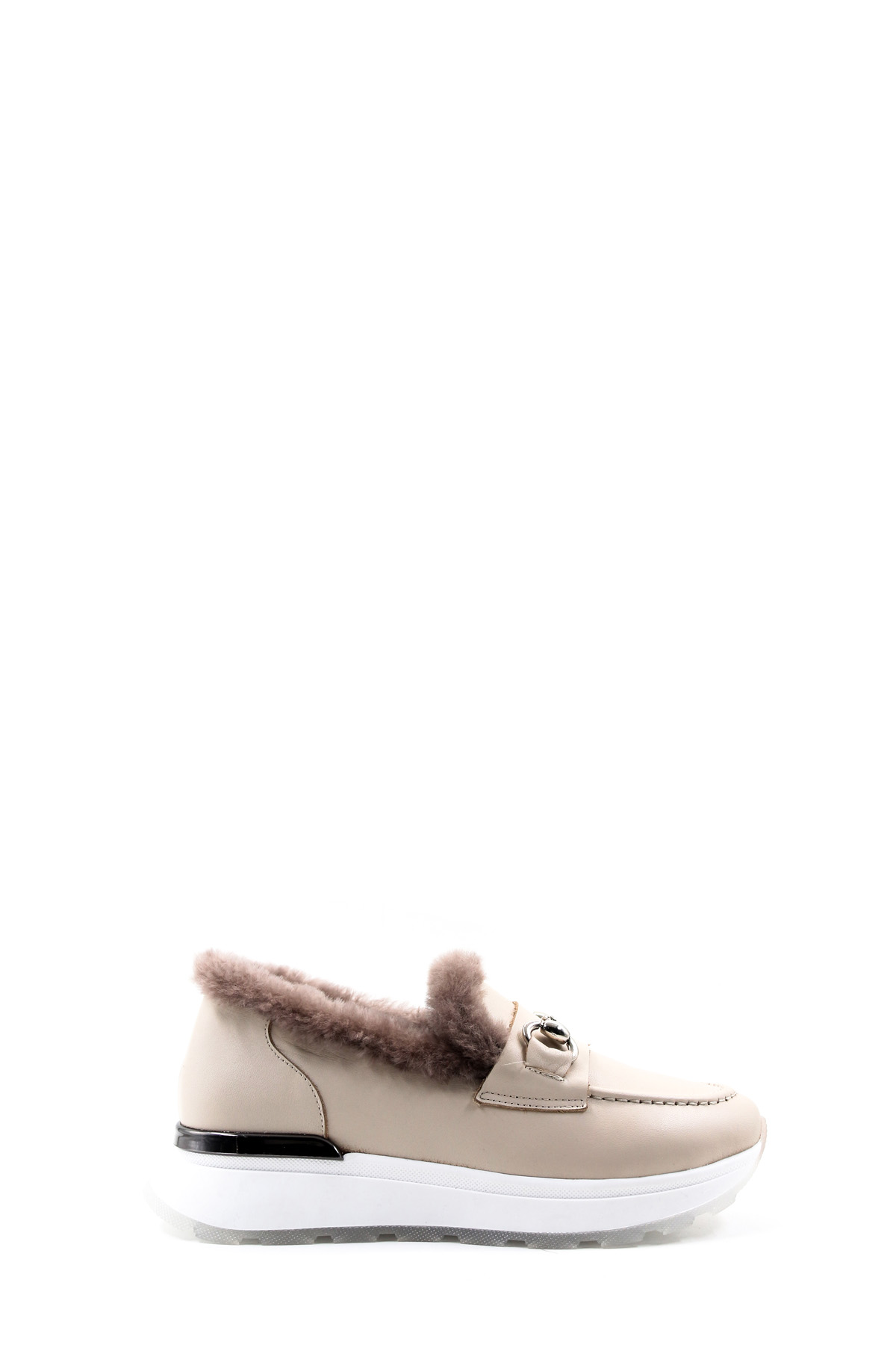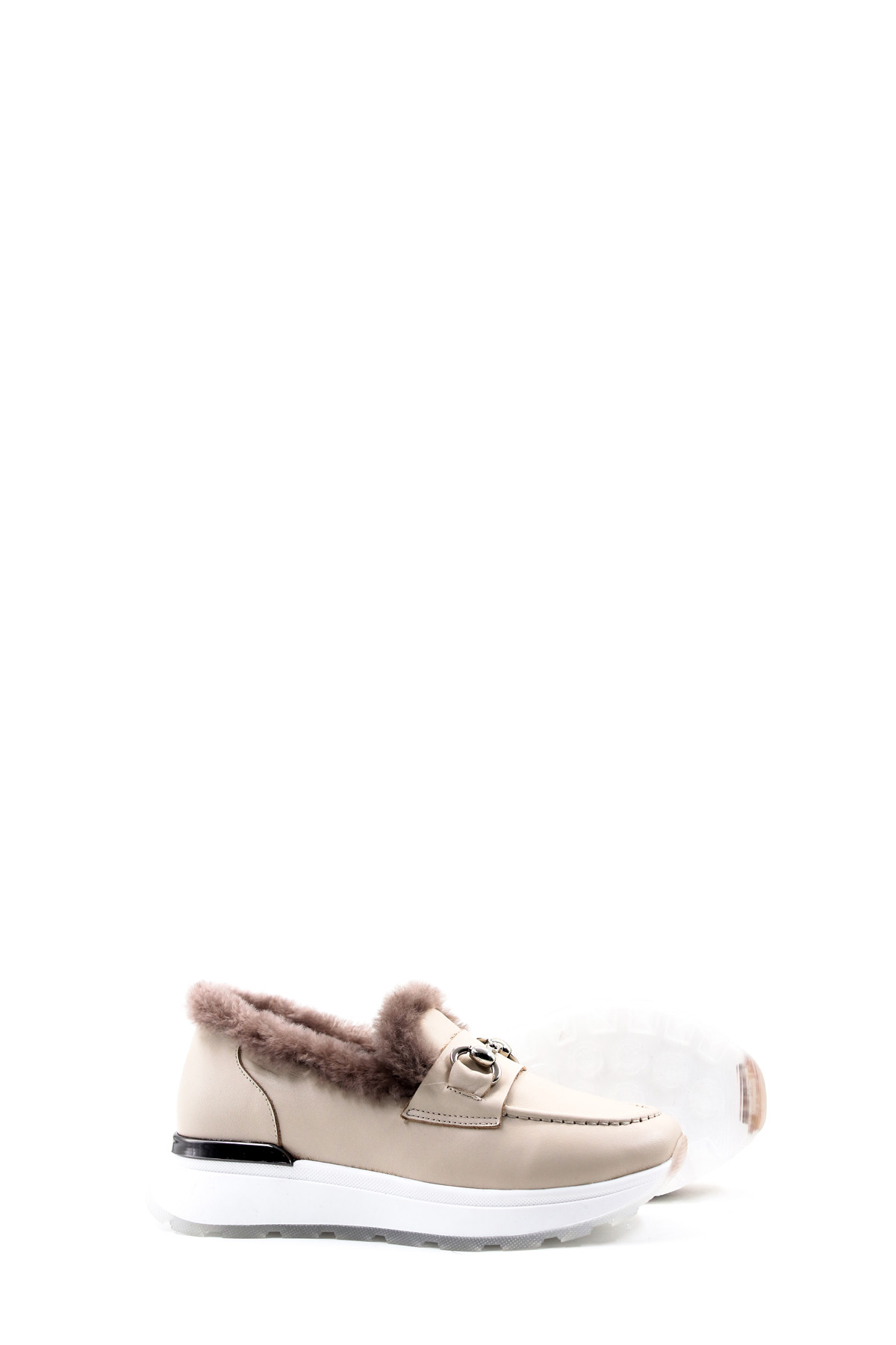 • MirgeShoes Bej Bağcıksız Kadın Casual Ayakkabı İçi Kürklü Dışı Hakiki Deri MRG018871126124718