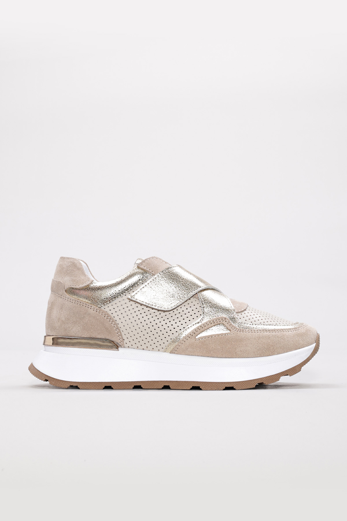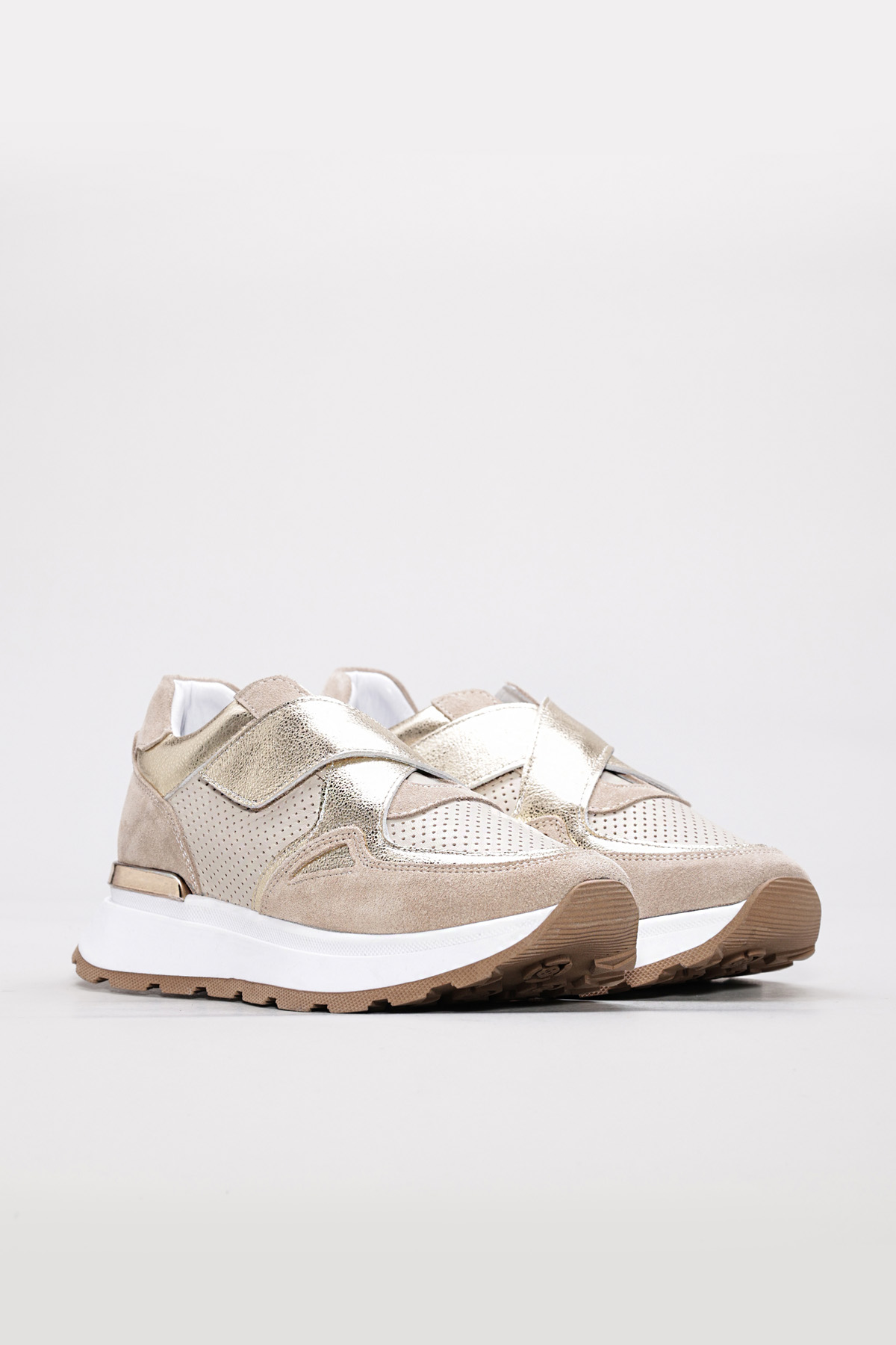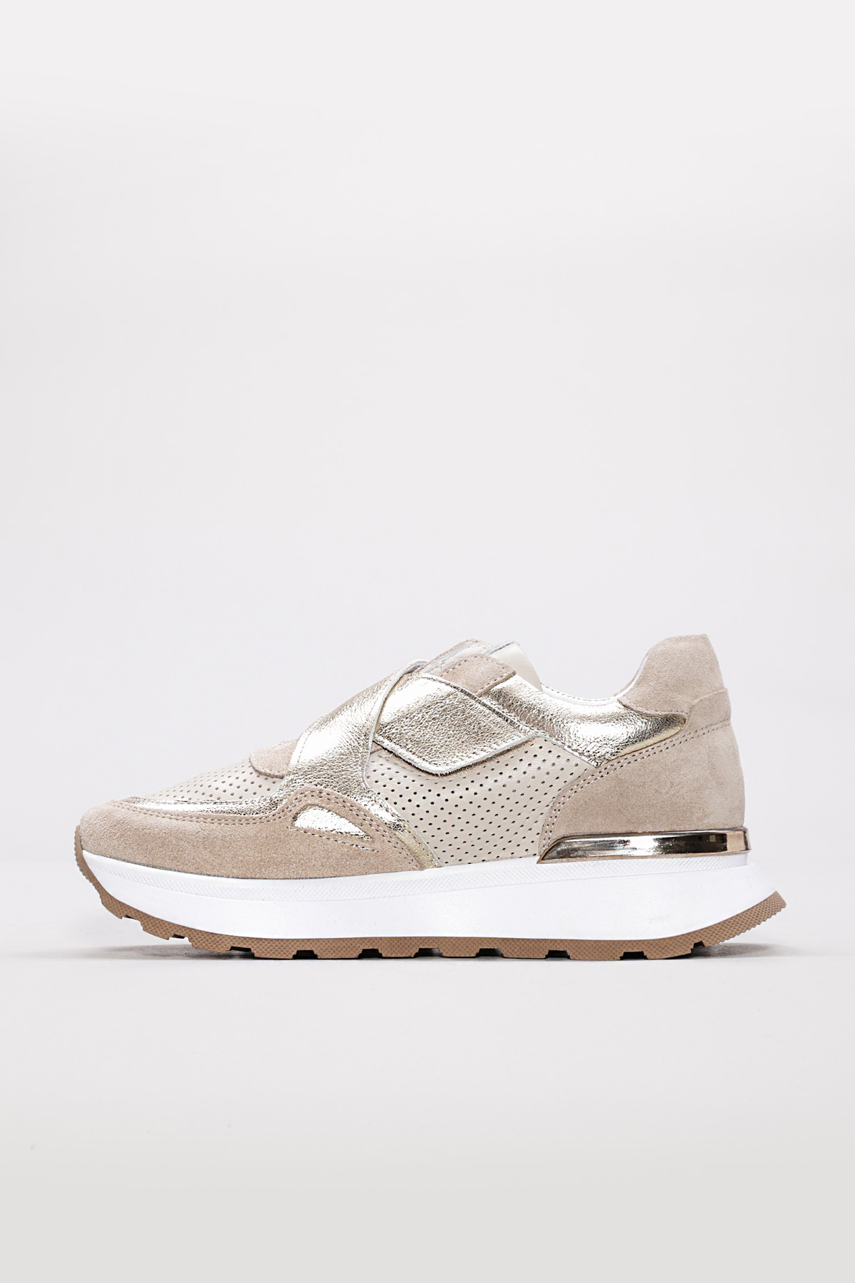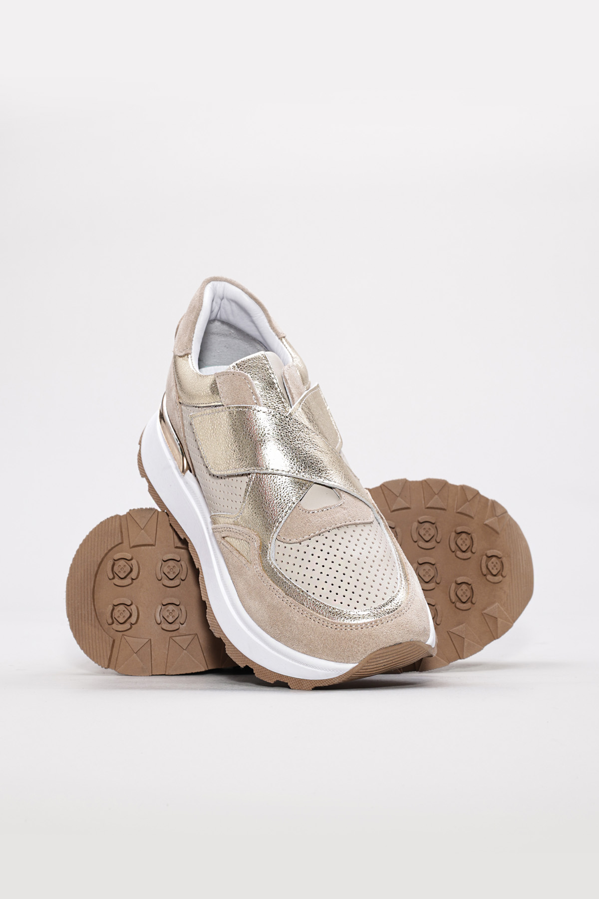 • MirgeShoes Bej Bantlı Kadın Spor Ayakkabı İçi Dışı Hakiki Deri MRG0188726124265