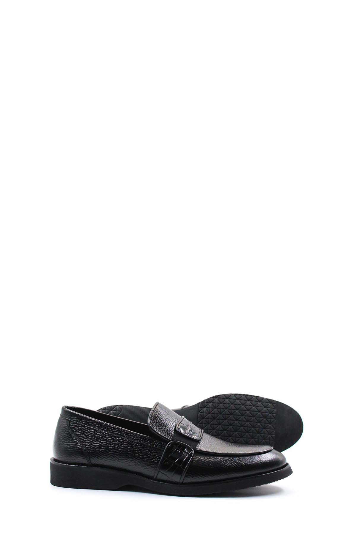 MirgeShoes Siyah Bağcıksız Erkek Klasik Ayakkabı İçi Dışı Hakiki Deri MRG019971314845438