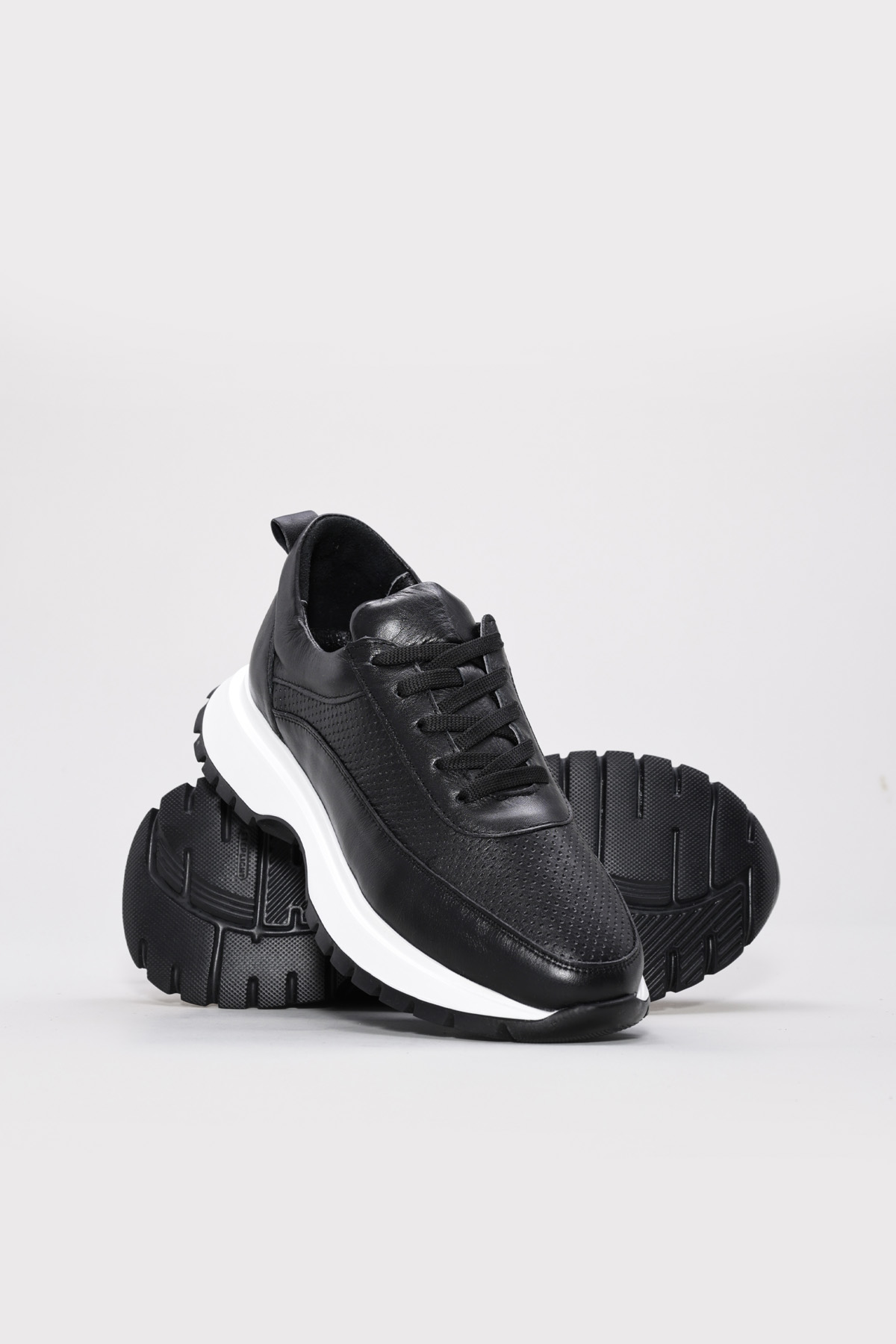 • MirgeShoes Siyah Bağcıklı Kadın Casual Ayakkabı İçi Dışı Hakiki Deri MRG01266261720