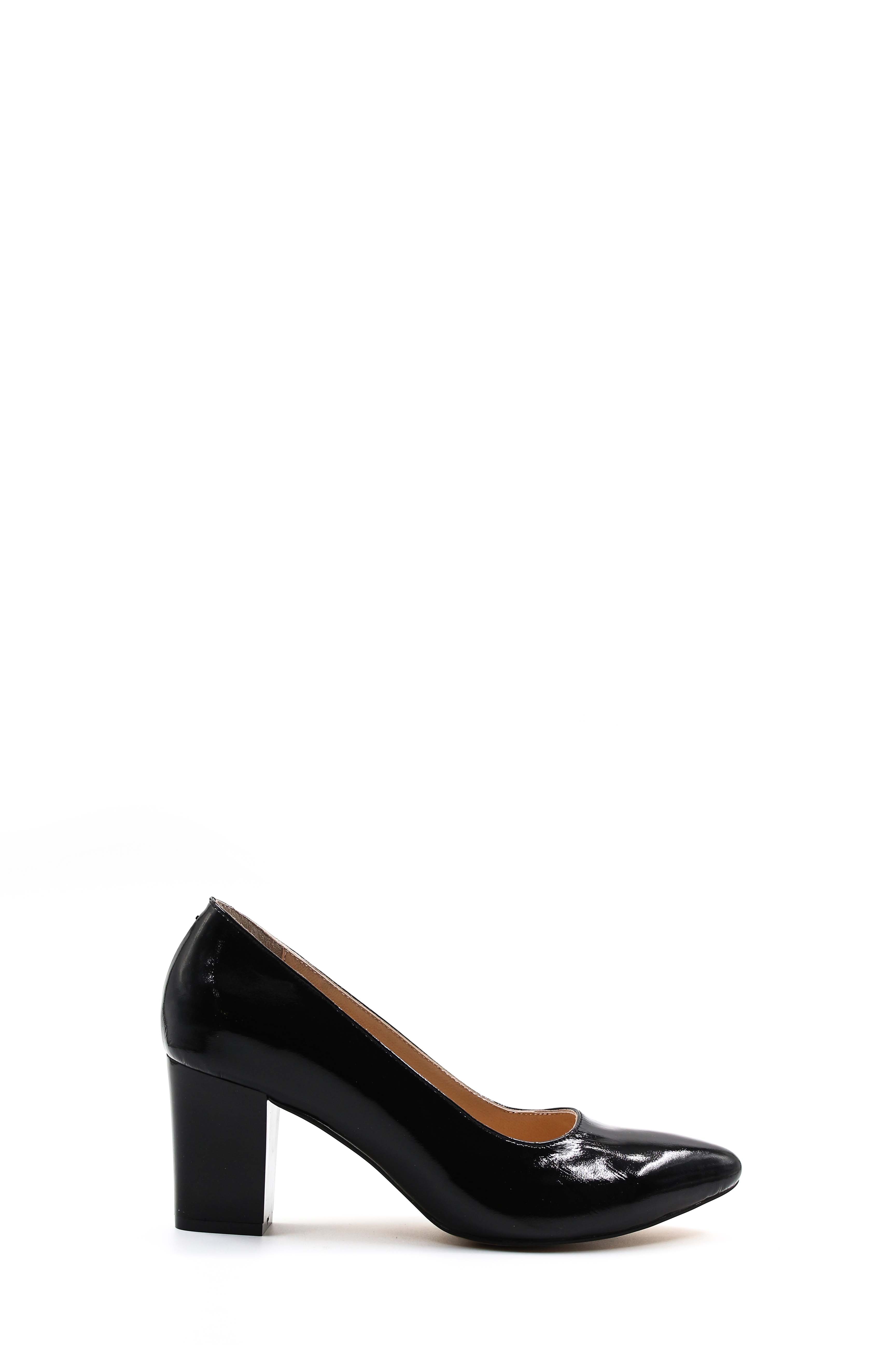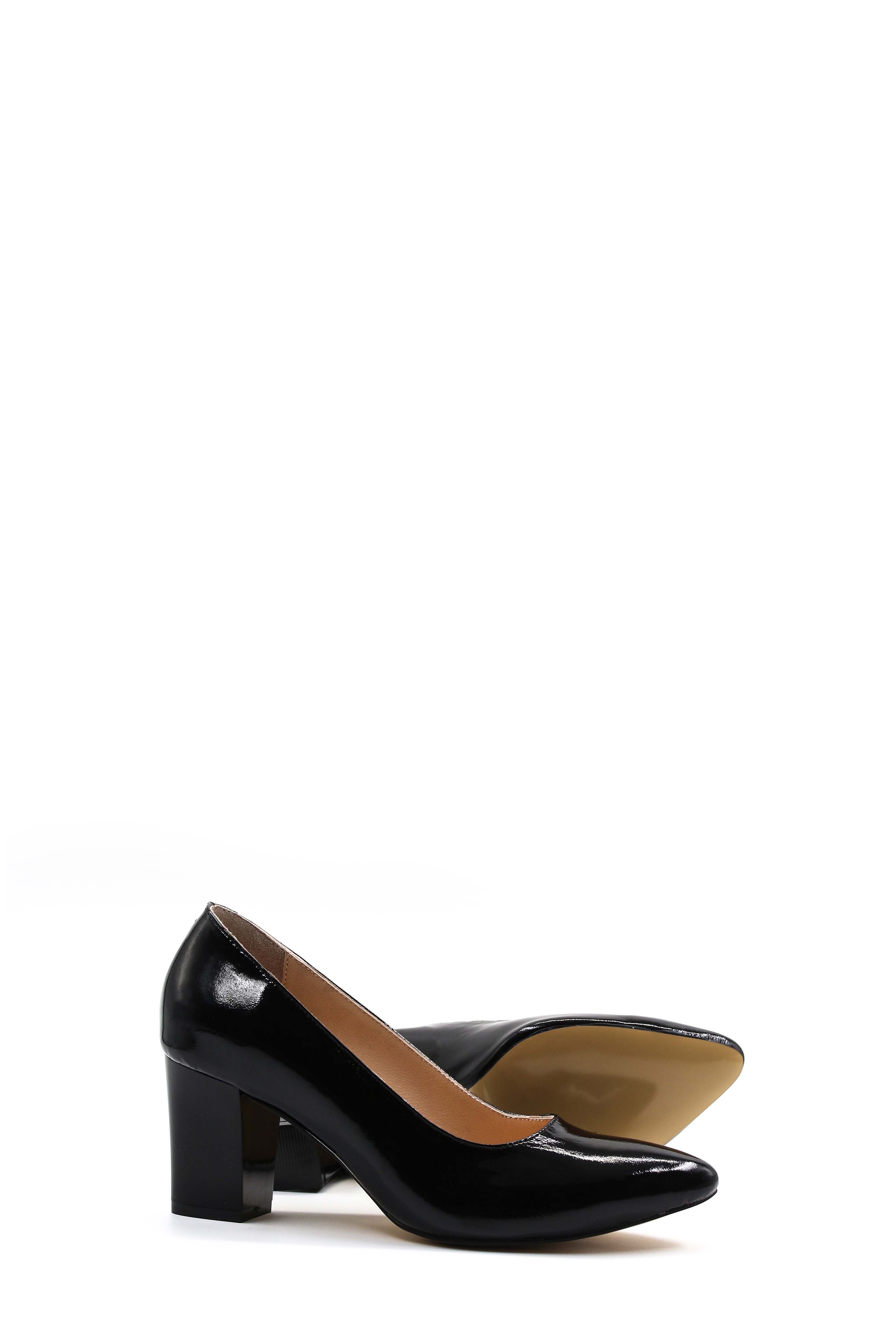 • MirgeShoes Siyah Kadın Kalın Topuklu Rugan Ayakkabı İçi Dışı Hakiki Deri MRG01194261574