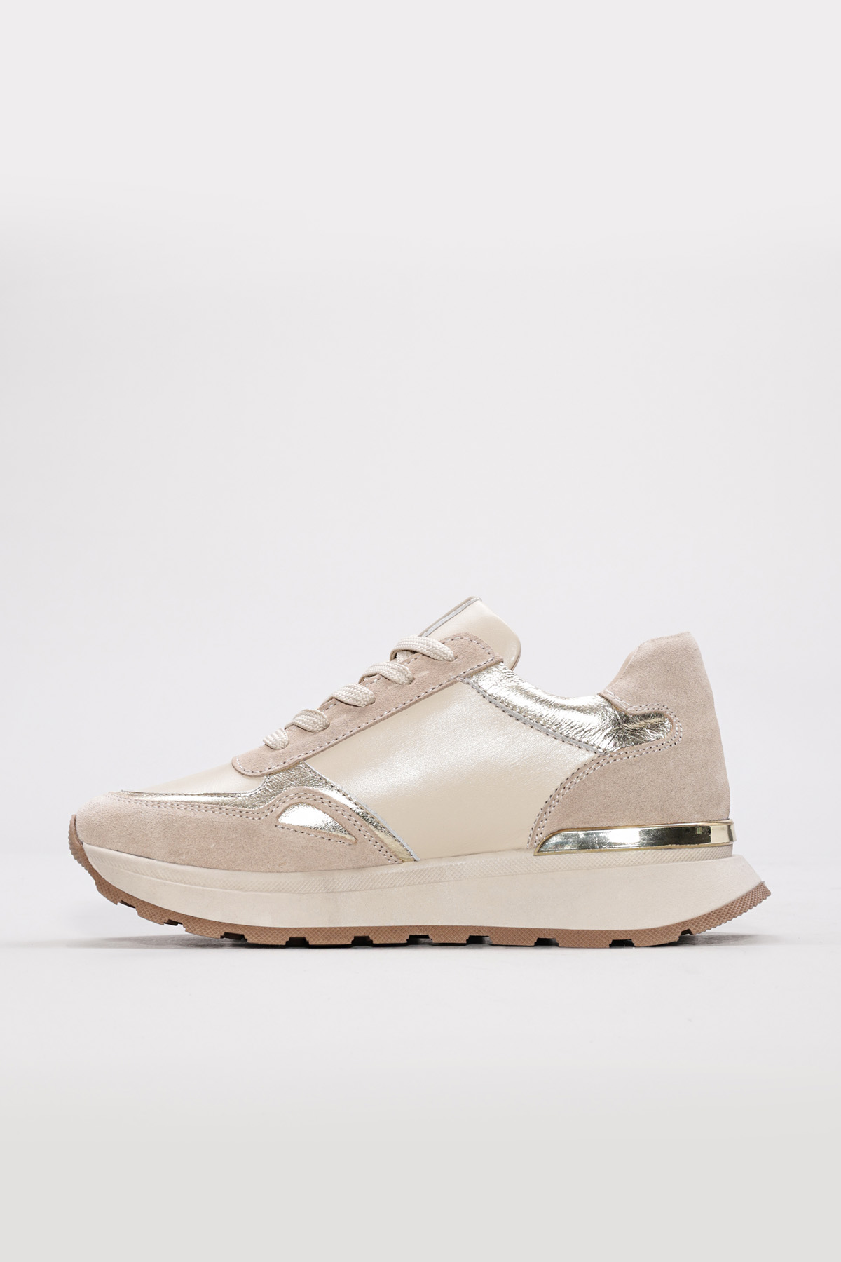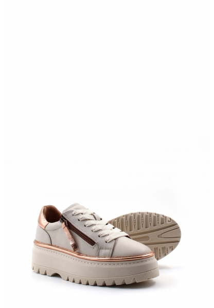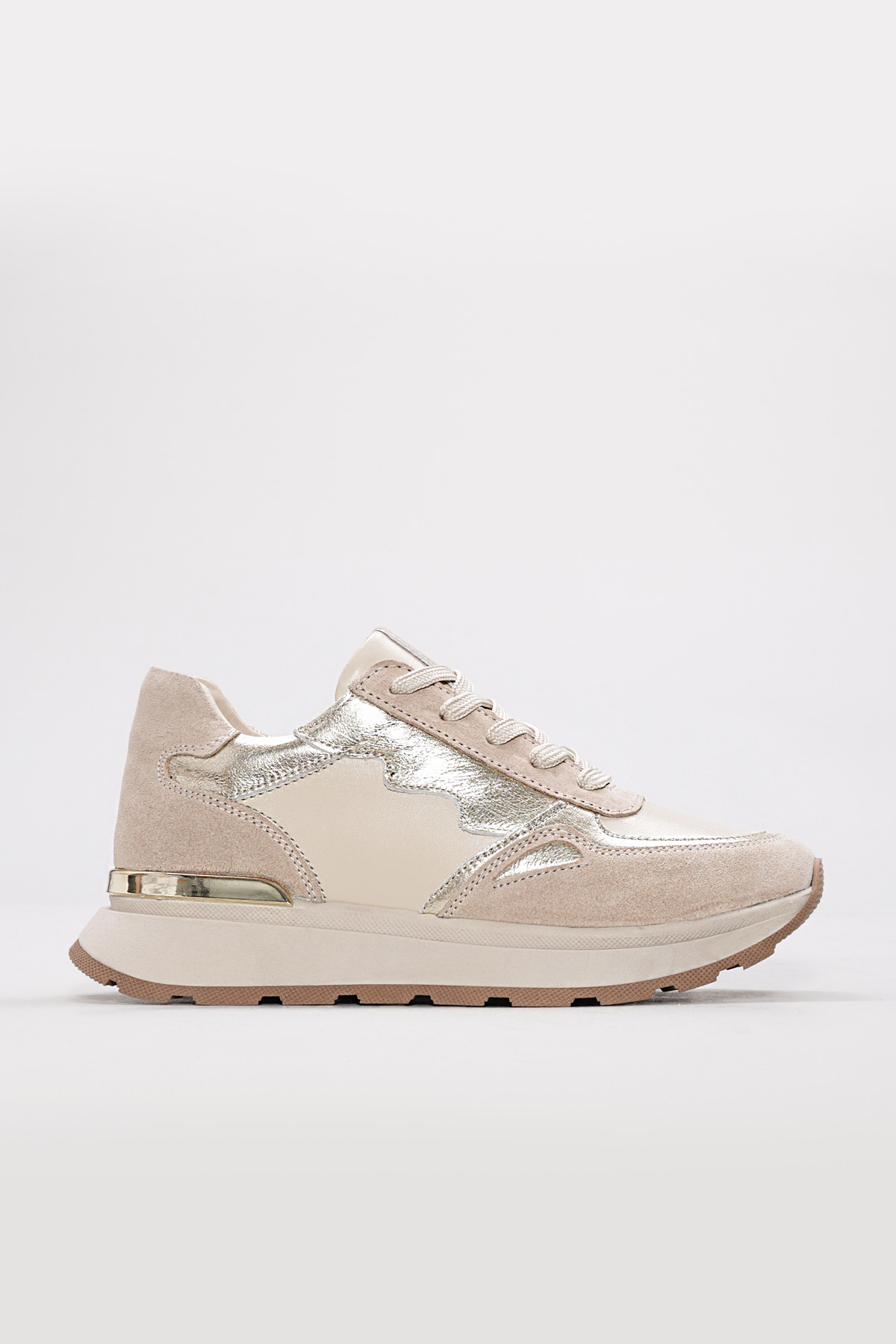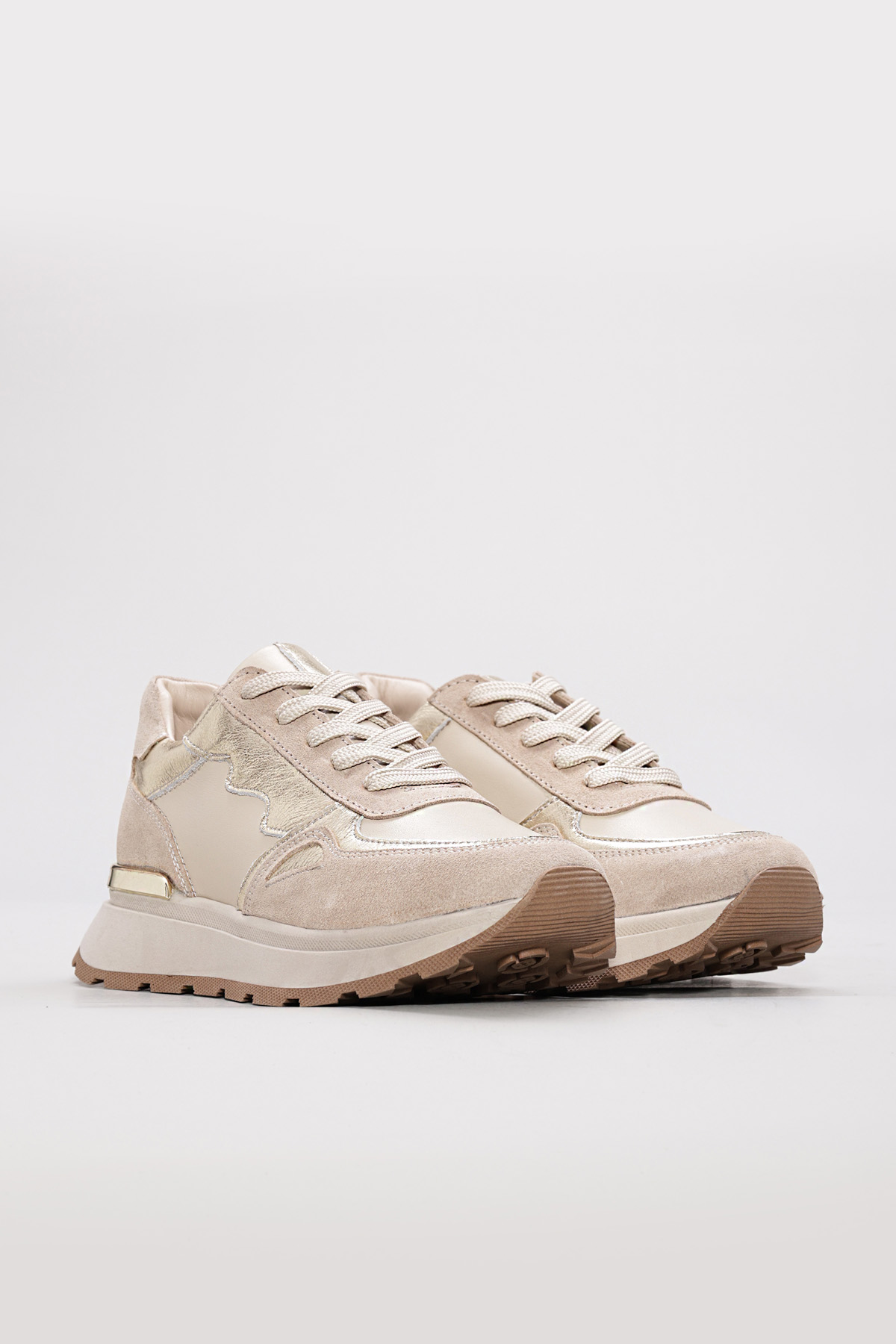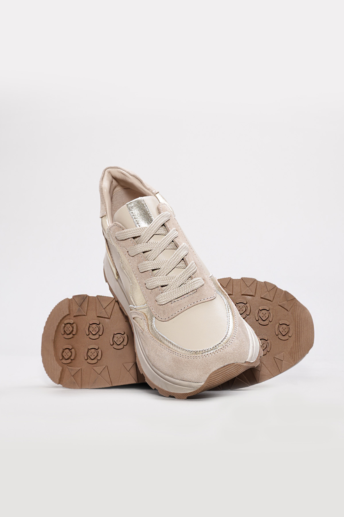 MirgeShoes Bej-Altın Bağcıklı Kadın Spor Ayakkabı İçi Dışı Hakiki Deri MRG0188726124283