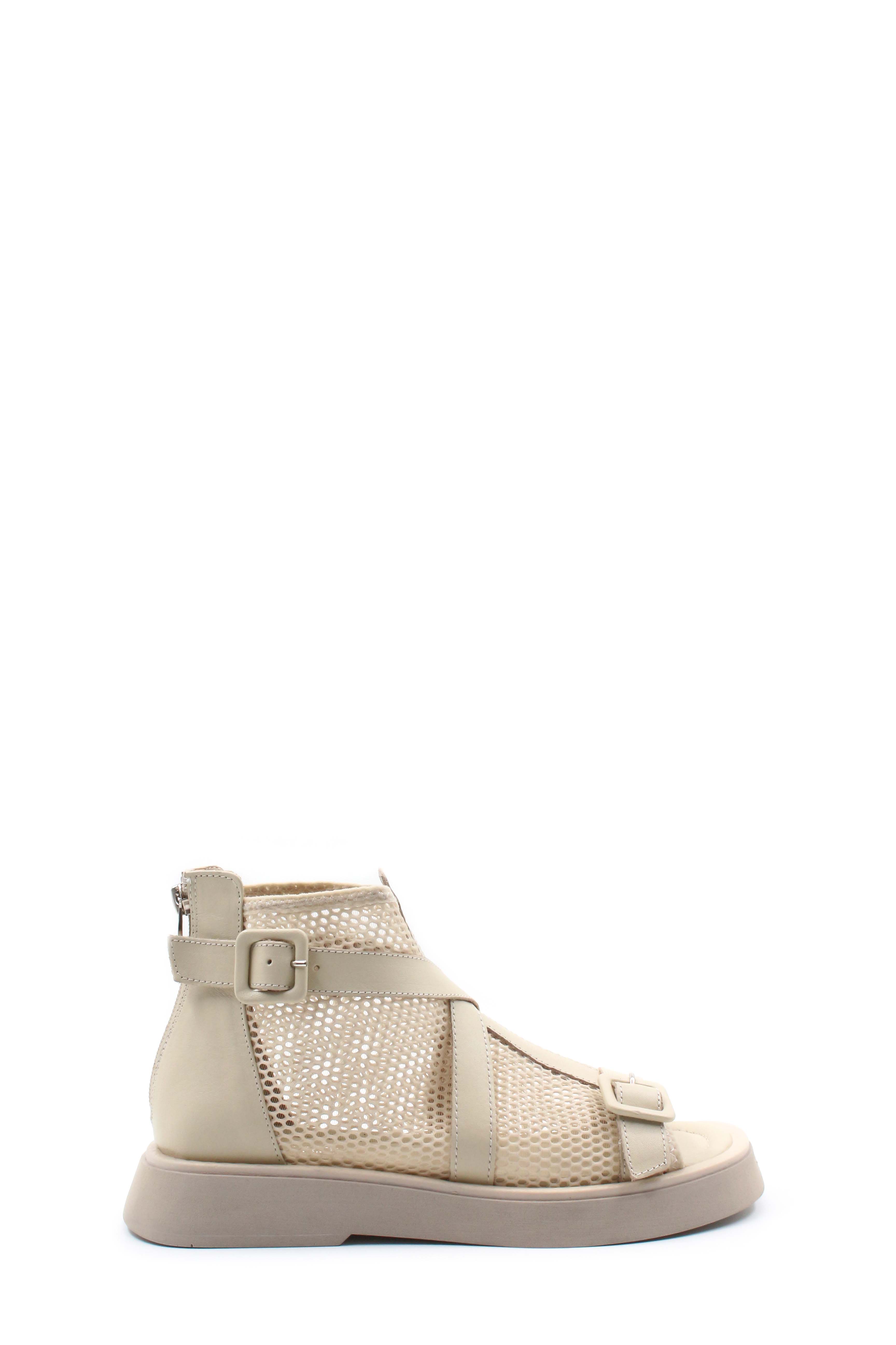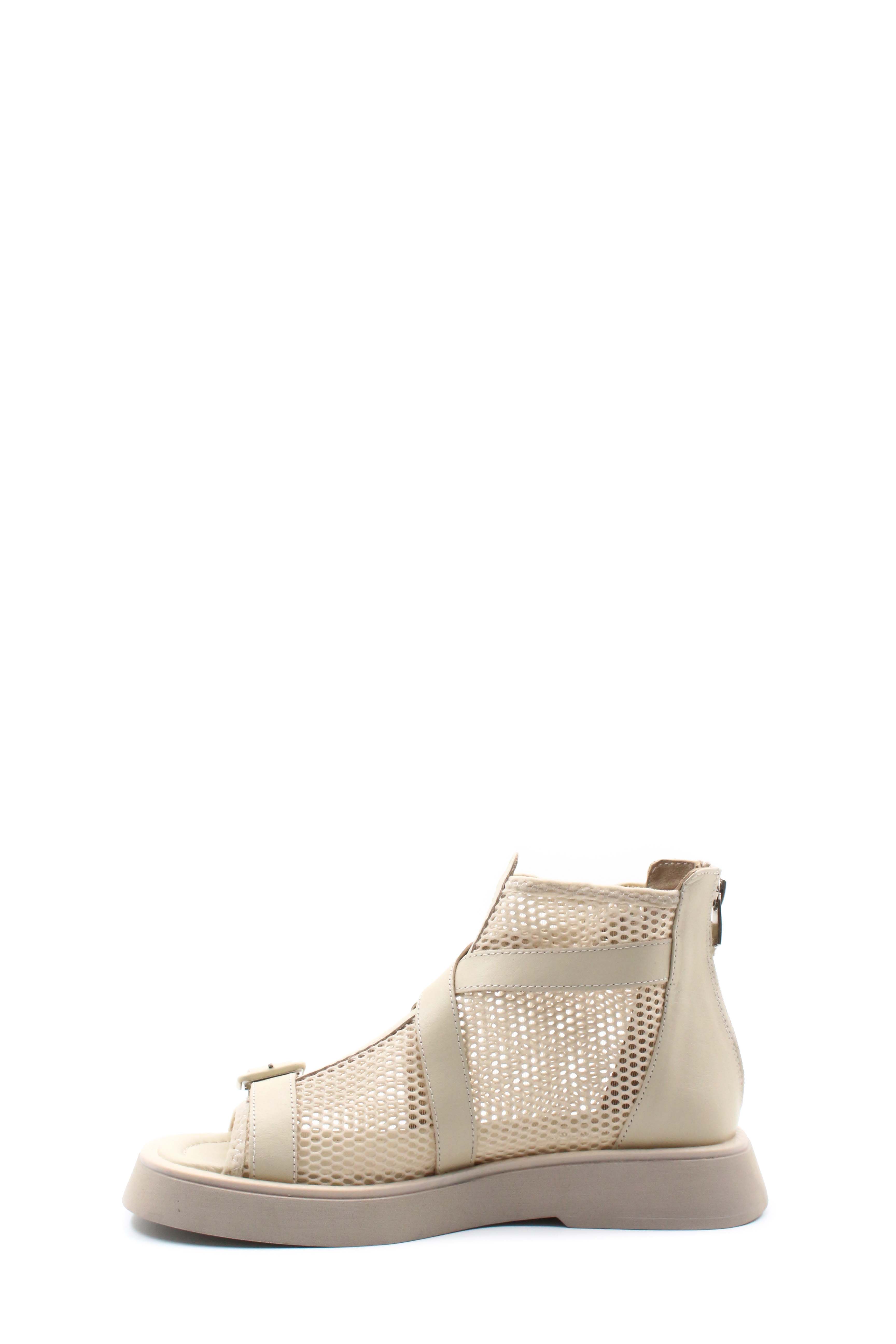 MirgeShoes Kadın Tarz Sandalet İçi Dışı Hakiki Deri Bej MRG0141126120990