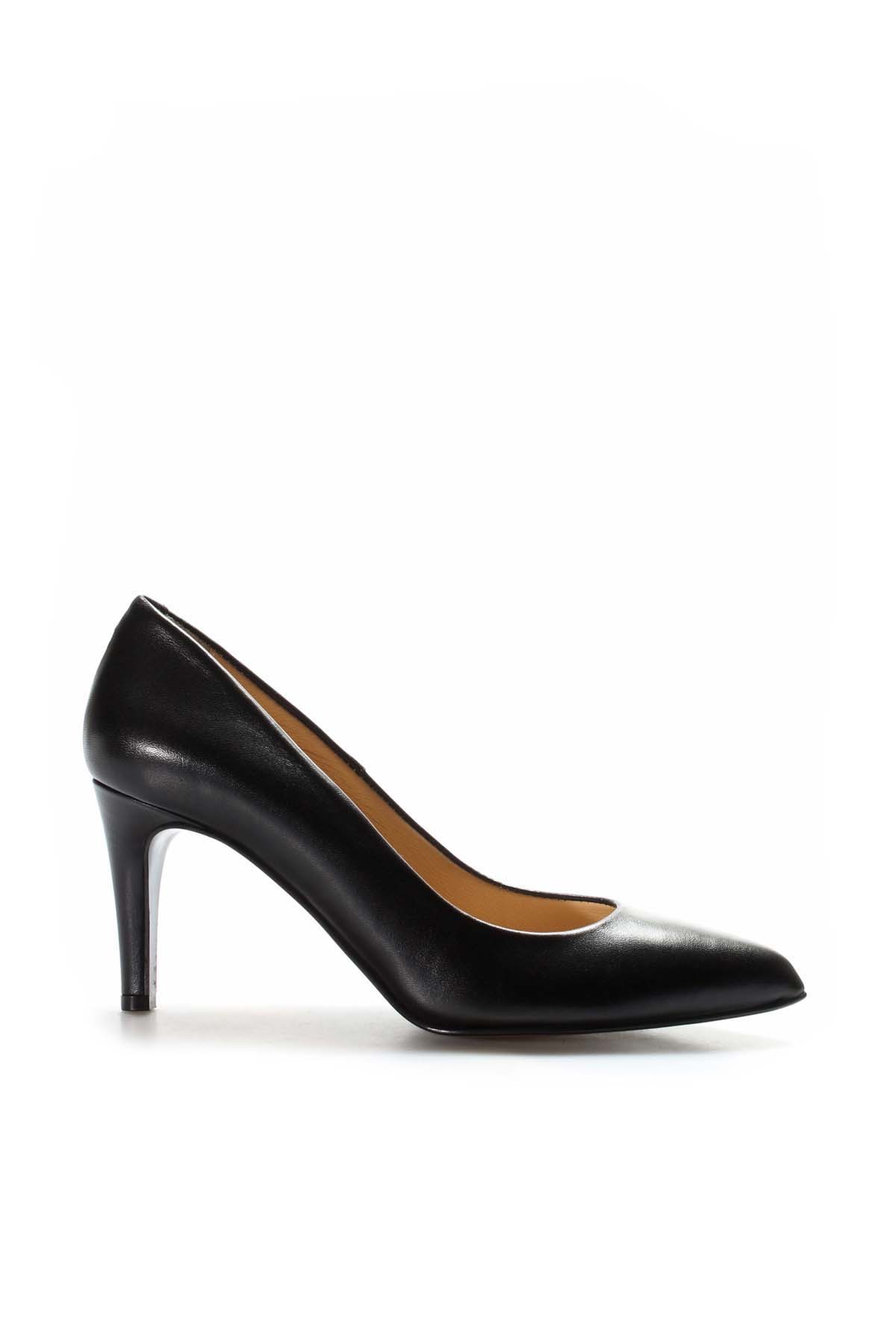 • MirgeShoes Siyah Kadın İnce Topuk Ayakkabı İçi Dışı Hakiki Deri MRG011492619909