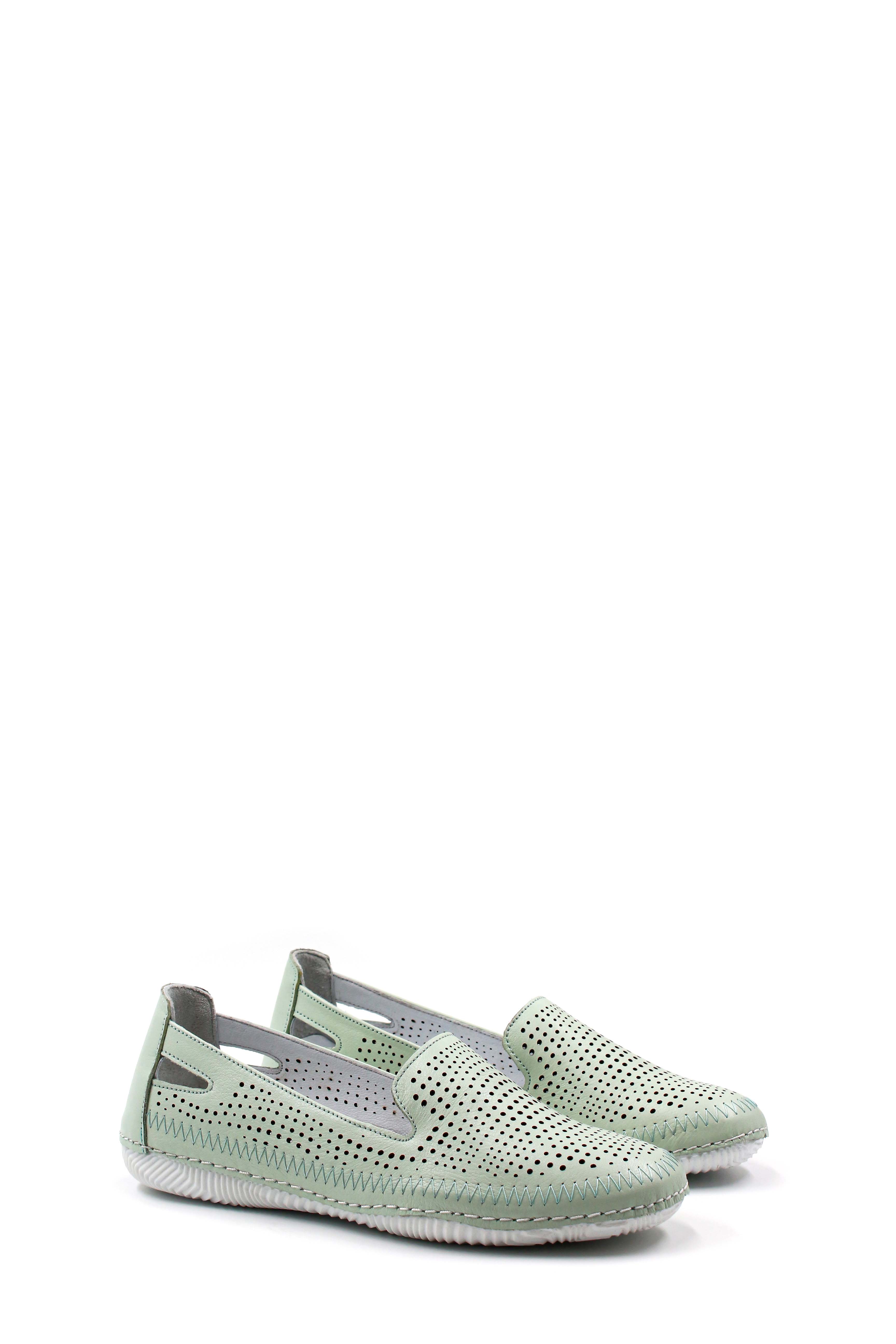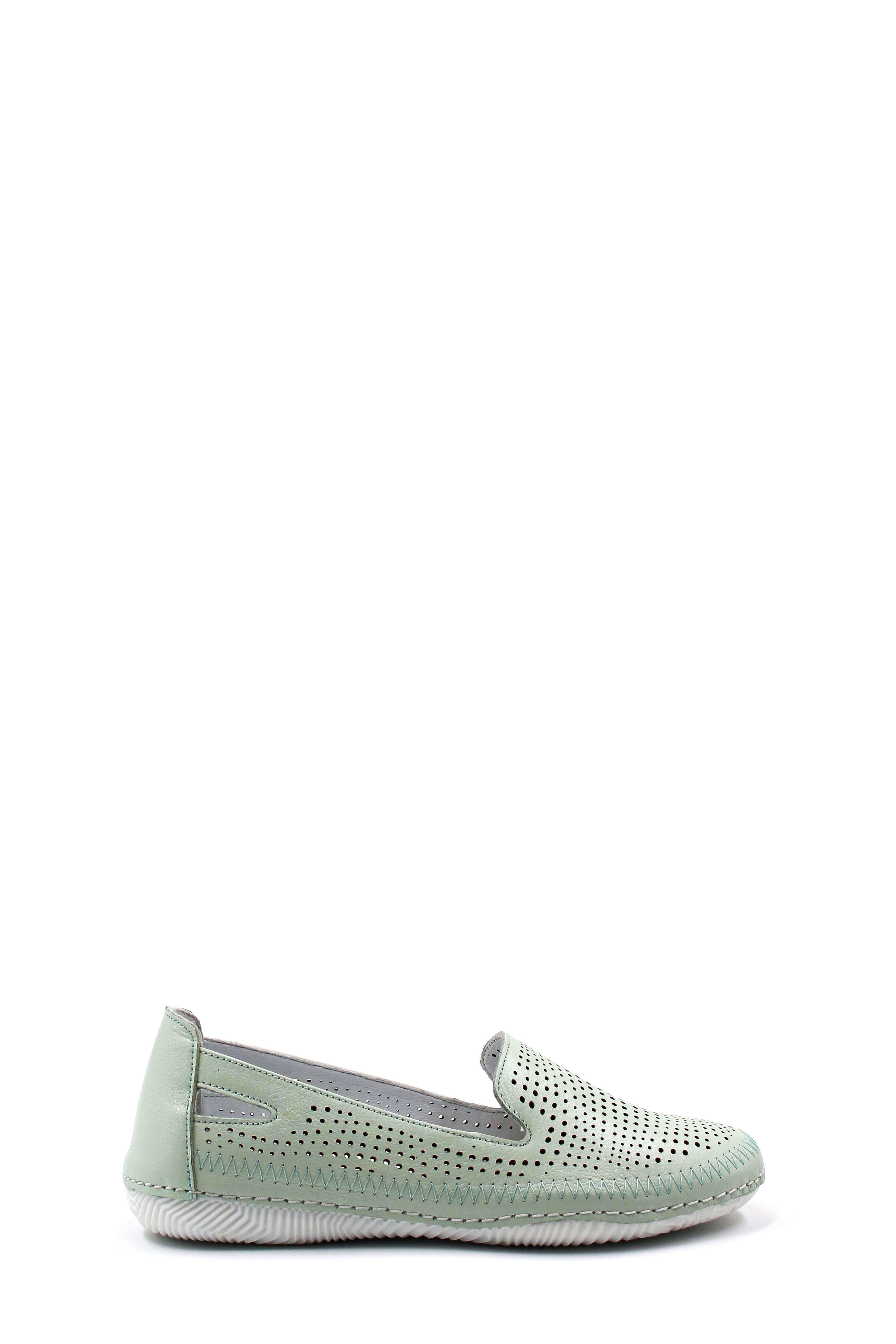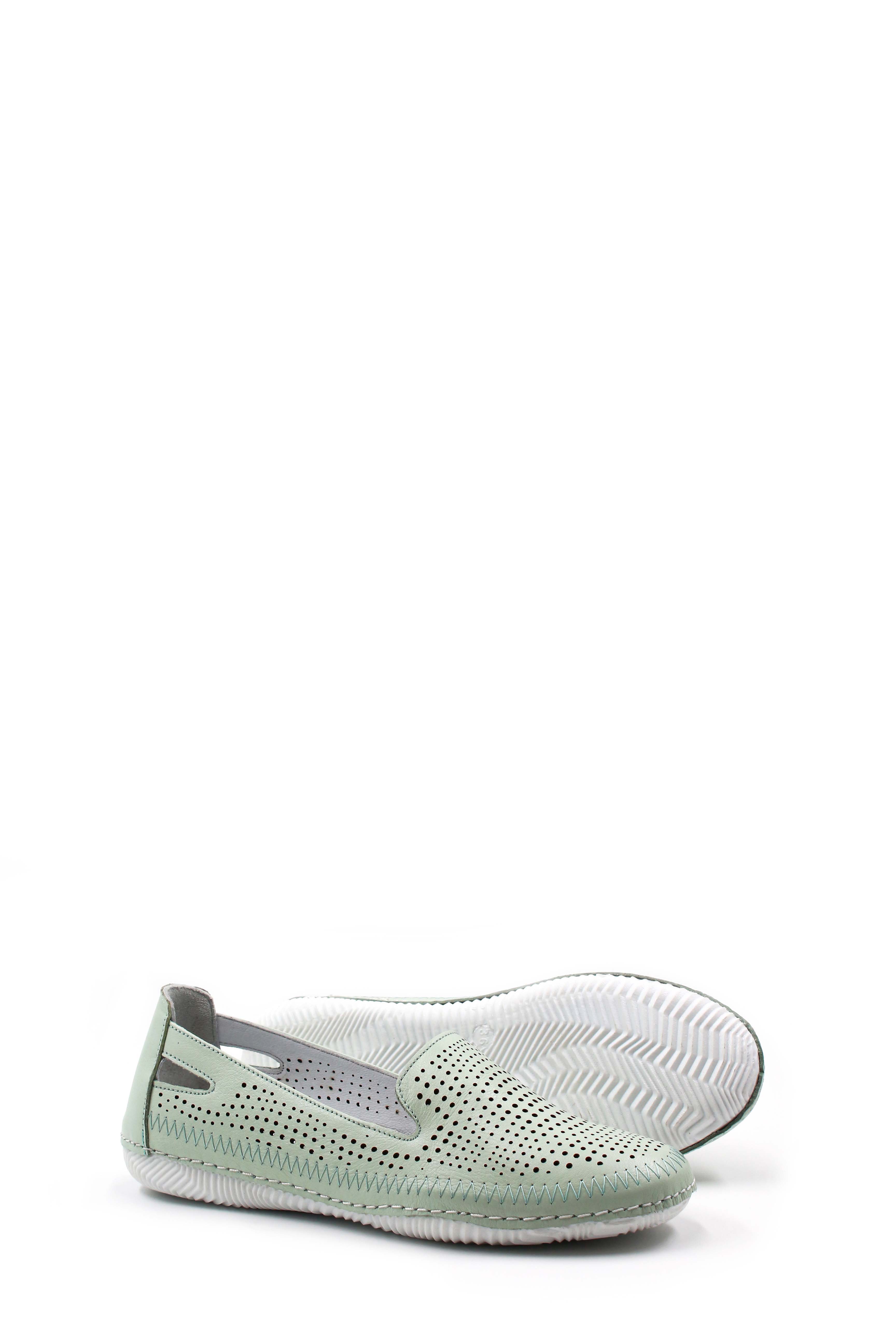 MirgeShoes Su-Yeşili Bağcıksız Kadın Casual Ayakkabı İçi Dışı Hakiki Deri MRG01266261319