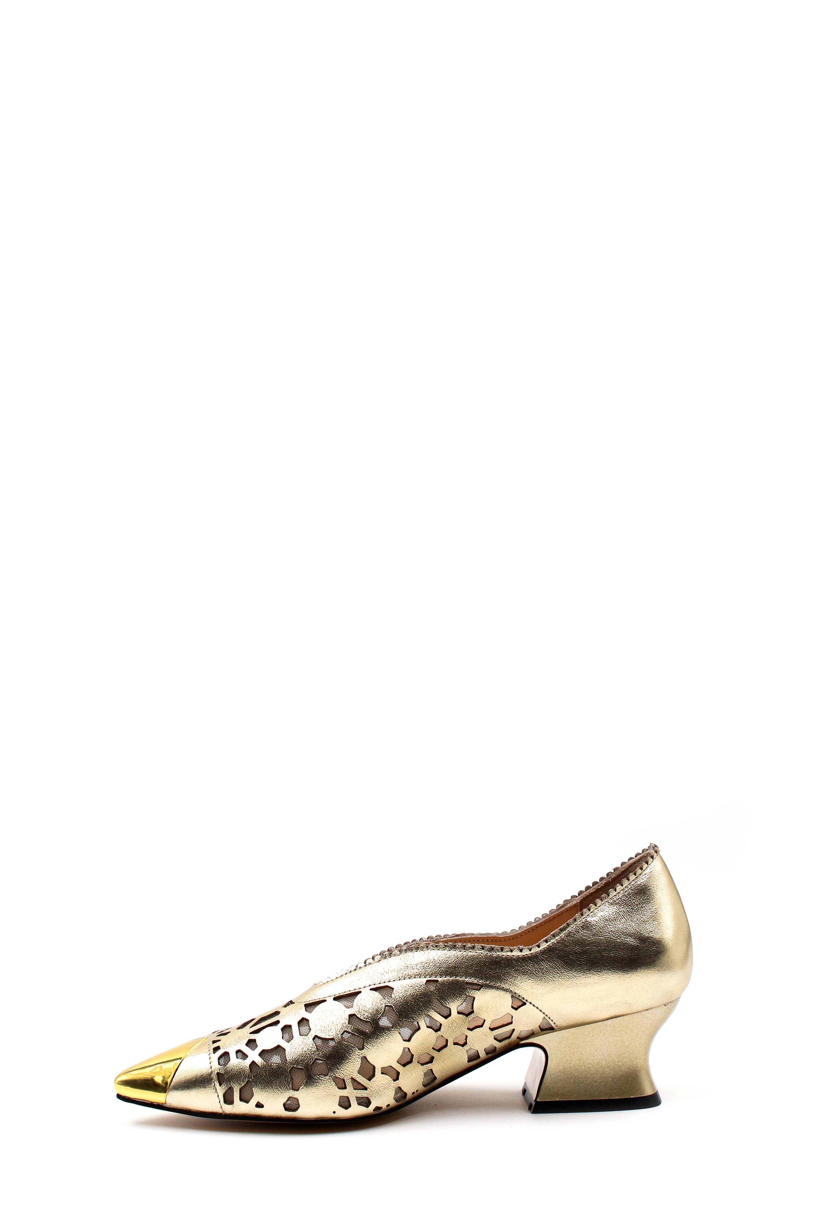 MirgeShoes Altın Kadın Kalın Topuklu Ayakkabı İçi Dışı Hakiki Deri MRG01194261583